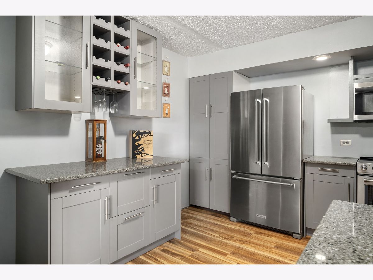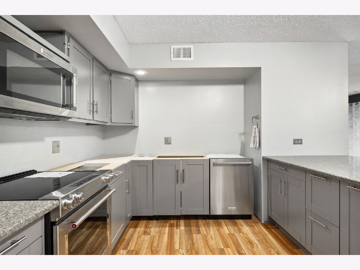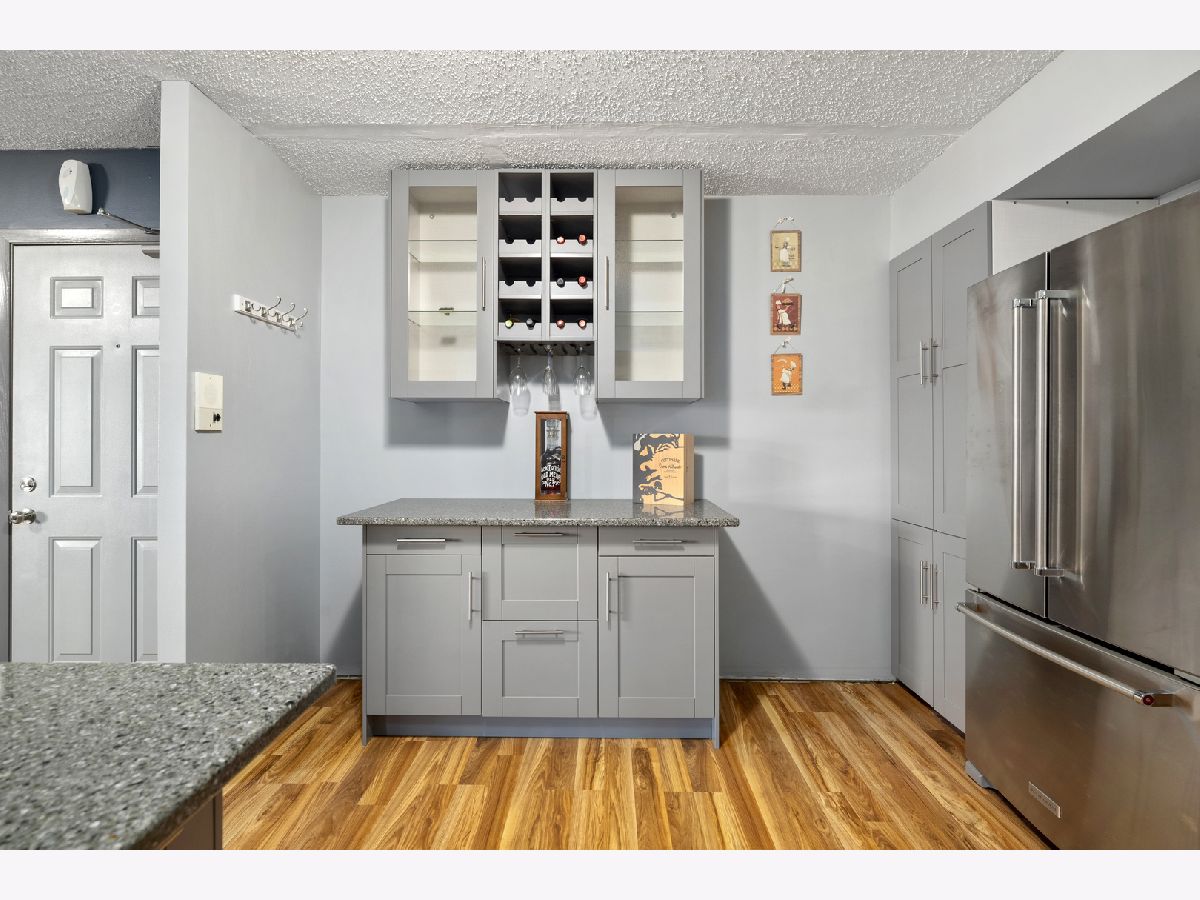 This unit is on its way to being the best unit in the building! Add in the 2 separate garage spaces to the mix and we have hit perfection. 3rd level condo with 2 bedrooms and 2 baths in an all-masonry building is needing its next owner to add in a few finishing touches. Walk in to find real wood laminate flooring running through the kitchen, dining, and family room areas. The kitchen has been nicely updated with newer cabinetry, quartz counters, a wet bar area with glass door cabinetry, and high-end appliances!! Kitchen needs a small piece of quartz, some trim work and the kitchen sink to call it complete. New tile flooring runs the hall from the two bedrooms into the combination laundry/bath where you will find newer washer and dryer with cabinetry above, brand new hot water heater, and an updated sink area as well as a separate walk-in shower. 2nd bath is also updated with newer flooring, toilet, cabinet and sink. Freshly painted. Balcony overlooks the courtyard.
