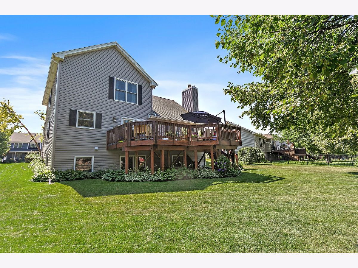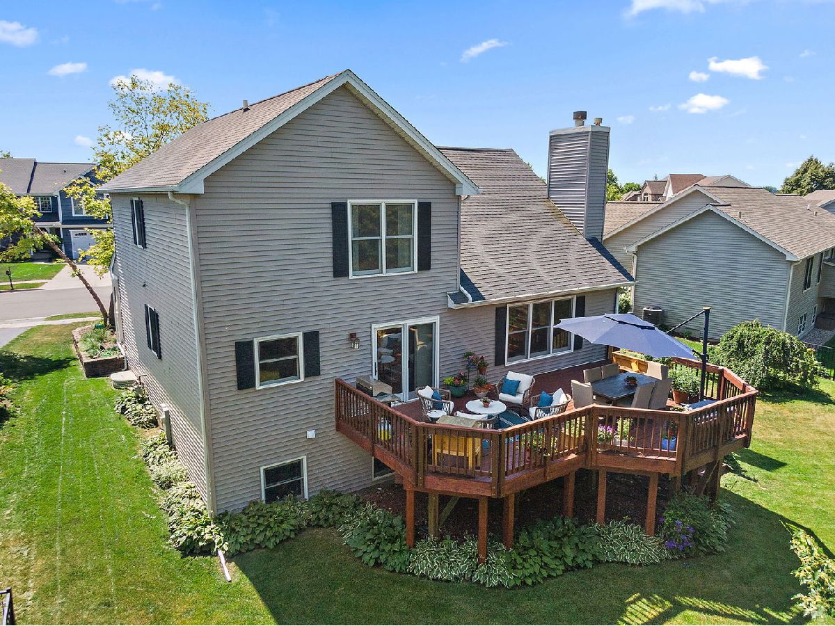 1st time this home is available in this highly sought after subdivision! Step inside this inviting home where thoughtful design meets everyday comfort, starting on the main level. As you enter, a warm and welcoming foyer sets the tone with elegant hardwood floors and an open flow that leads you into the heart of the home. Just off the entry is a versatile flex room-perfect as a private office or extra bedroom-complete with built-in bookshelves and tile flooring, making it ideal for both productivity and relaxation. The bright eating area connects seamlessly to the kitchen, creating a cozy spot for casual dining. In the kitchen, you'll find granite countertops, a gleaming glass tile backsplash, cabinets crowned with classic molding, and stainless steel appliances-all designed to impress and built to last. A spacious pantry and under-mount sink add convenience, while the adjacent laundry room and powder room make daily routines a breeze. At the back of the home, the stunning two-story vaulted family room steals the show with a wood-burning fireplace (complete with gas start) and charming built-in window seating, creating the perfect gathering space year-round. Upstairs, comfort continues in the serene primary suite. The primary bedroom offers a peaceful retreat with stylish flooring, a ceiling fan for added comfort, and a generous walk-in closet. The attached bath boasts durable flooring and a well-designed layout that promotes relaxation and functionality. Two additional bedrooms-one with a calming blue tone and the other in a soft beige palette-offer ample space for rest or play, each with its own ceiling fan. A full hallway bath features a shower/tub combo, making it ideal for guests or family needs, and a wide, light-filled hallway ties it all together with cohesive finishes and thoughtful flow. The finished English basement expands your living space even further. Enjoy movie nights or game day gatherings in the expansive recreation room, complete with a built-in bar area for effortless entertaining. An additional family room offers even more space for relaxation, while another bedroom provides privacy and flexibility for guests or extended stays. The lower level also includes unfinished storage space and a dedicated mechanical room, ensuring that everything has its place. Step outside to enjoy the large deck-perfect for morning coffee, summer grilling, or simply taking in the view. This home offers a harmonious blend of comfort, functionality, and charm across every level. Located near parks, schools, dining, shopping, and more! Roof (2014), Furnace (2016), A/C (2016).