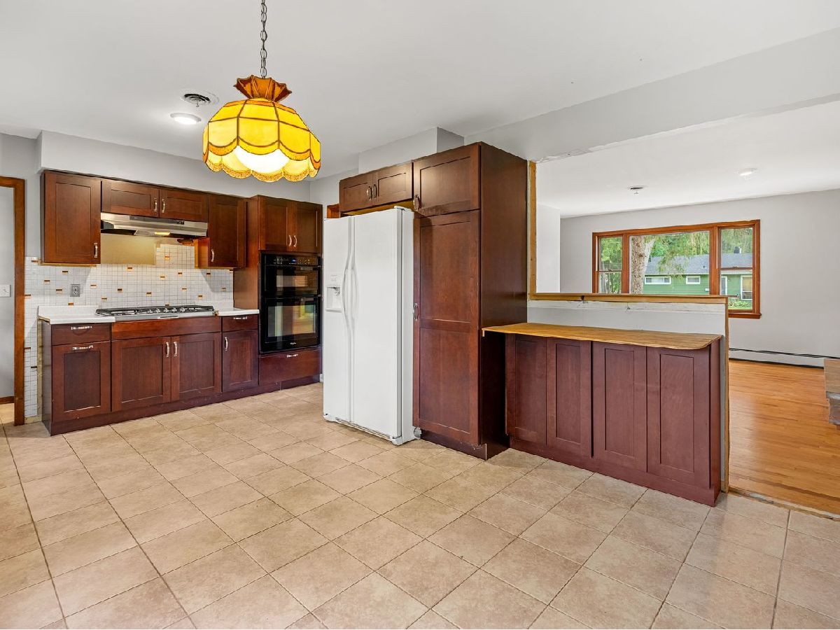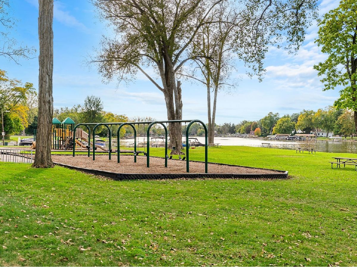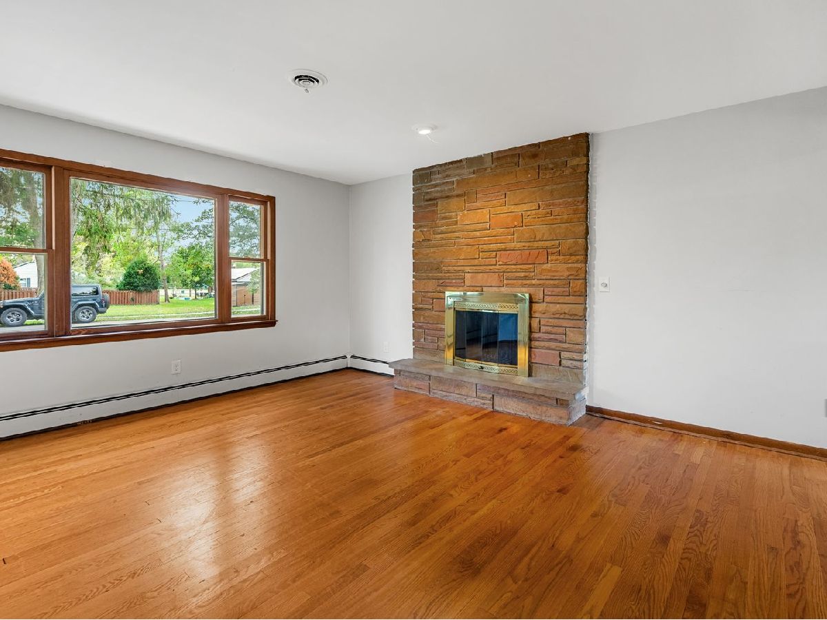 Nestled on a quiet, tree lined street and just around the corner from Lion's Park on the Fox River, this brick ranch sits on over 1/3 of an acre complete with partial water views! The home boasts hardwood flooring, a stone, wood burning fireplace and a generously sized kitchen/eating area. Some kitchen projects have been started giving you a chance to add your own personal touch. The original 3rd bedroom has been opened up into one large primary bedroom with a secondary bedroom down the hall. The full, unfinished basement offers a load of opportunity to add even more living space - the possibilities are endless! Enjoy the close proximity of the Fox River Grove village center, the Metra, parks, schools and dining! Brand new concrete driveway and sidewalk in 2024 and a new roof in 2021. Welcome Home!