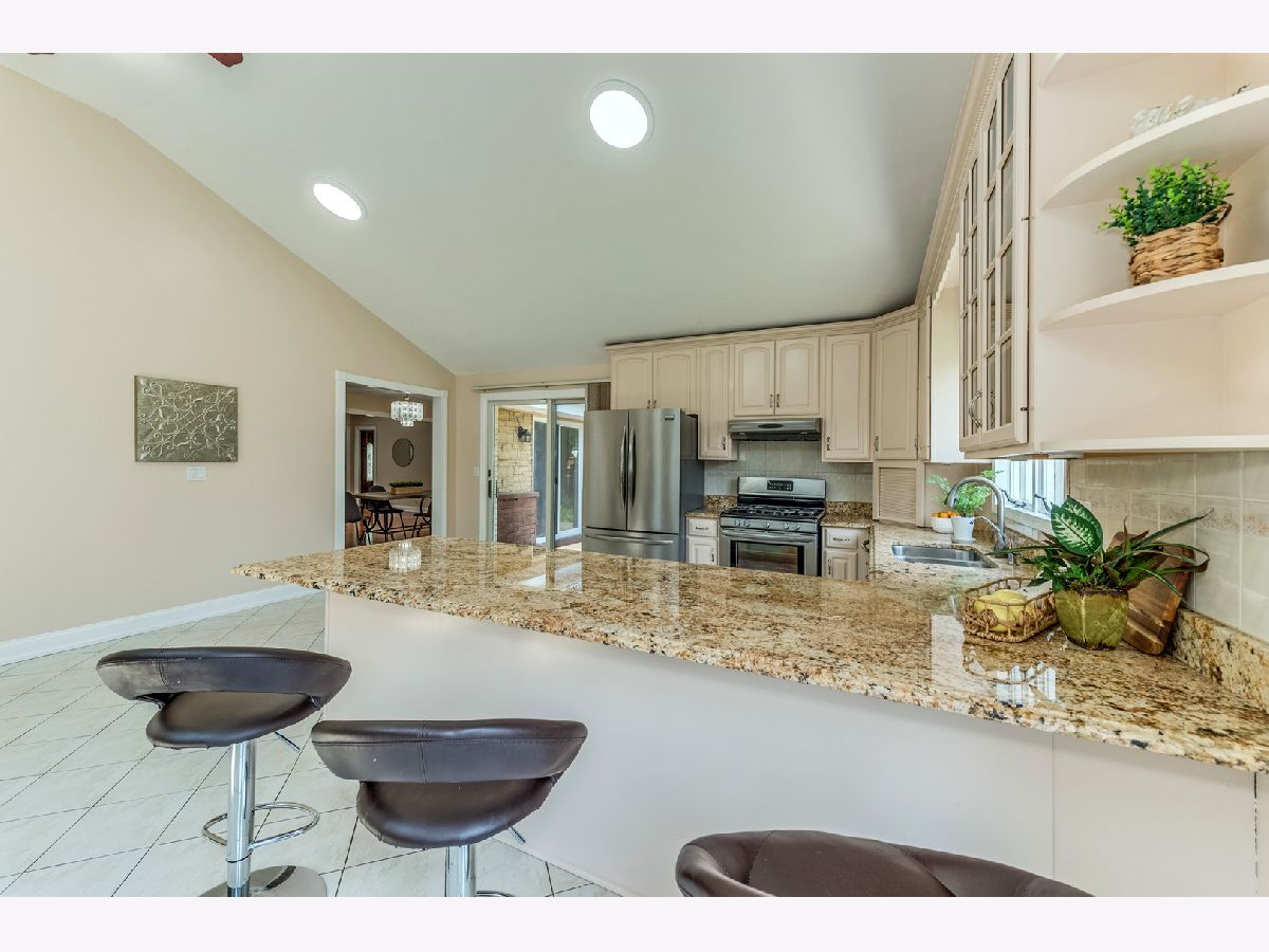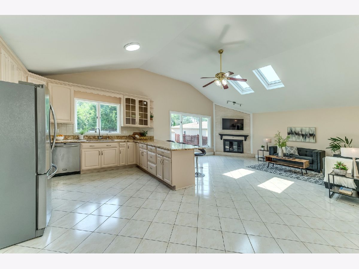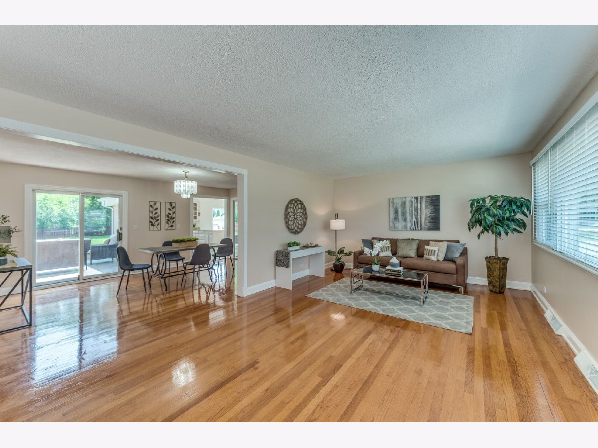 Updated Sprawling Ranch home on 1/2 Acre lot with 2400 SF of living space. Home offers 3 generous size bedrooms with, 2 full baths. Master bedroom with en-suite full bath. Gleaming hardwood floors thorough out the living room and bedrooms. Kitchen with Granite counters and SS appliances. Kitchen is huge, you will never run out of space. Family room has ceramic tiles, gas fireplace, and sky lights that keeps the room full of sun drenched light. Patio door off the family room leads to huge patio and large back yard. Backyard is fenced and offers tons of privacy. Off the family room you have mud room/ laundry which leads to the 2 car garage with new epoxy floors. Utility area is also located in the mud room with new high efficiency furnace and rain-soft water filtration system. Home is on a busy Wolf road .. No Problem, home offers a circular driveway, which makes getting in and out very simple and easy. Nothing to do here folks move right in!