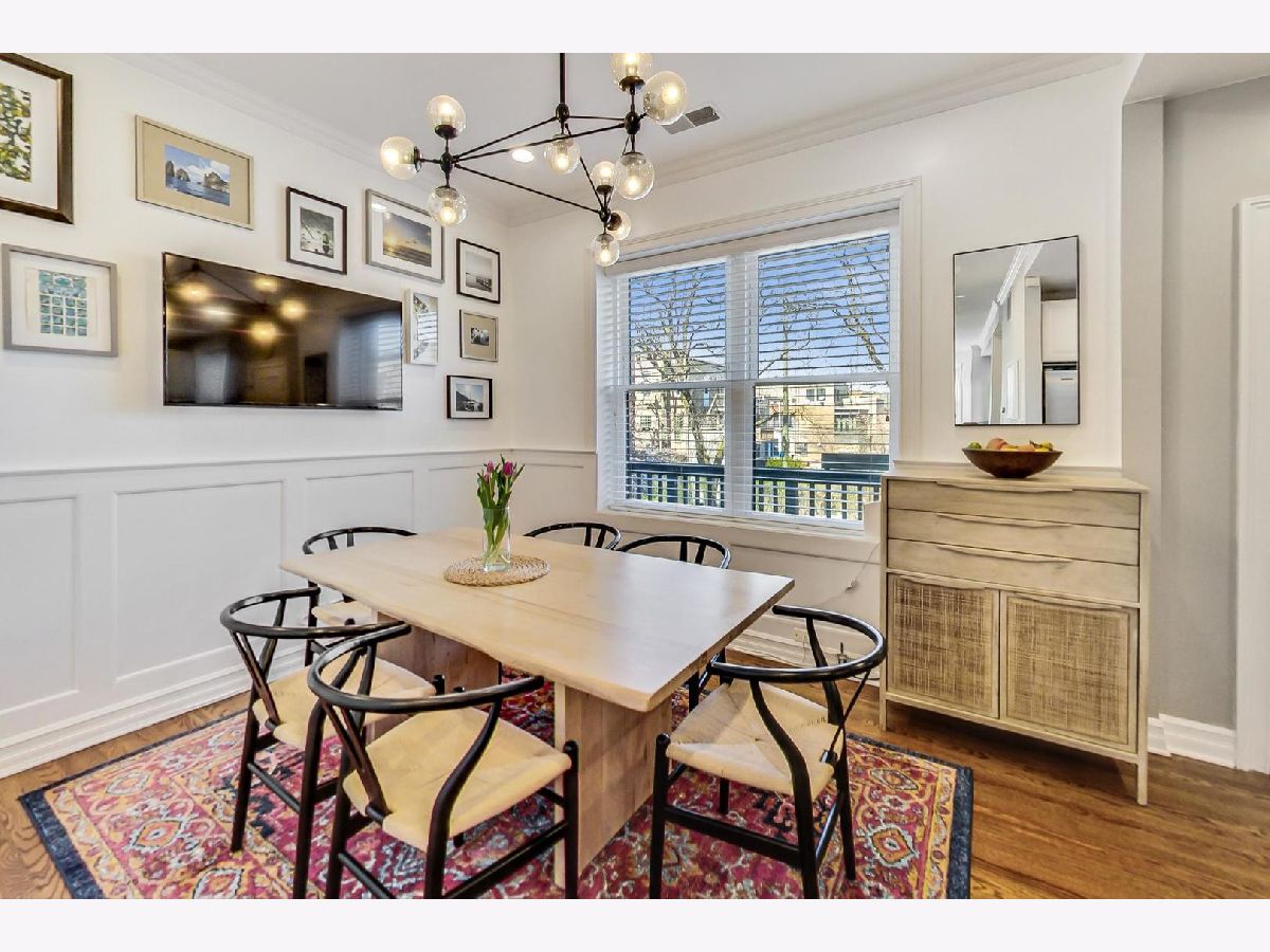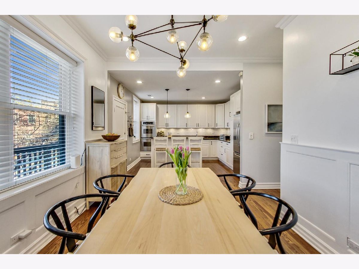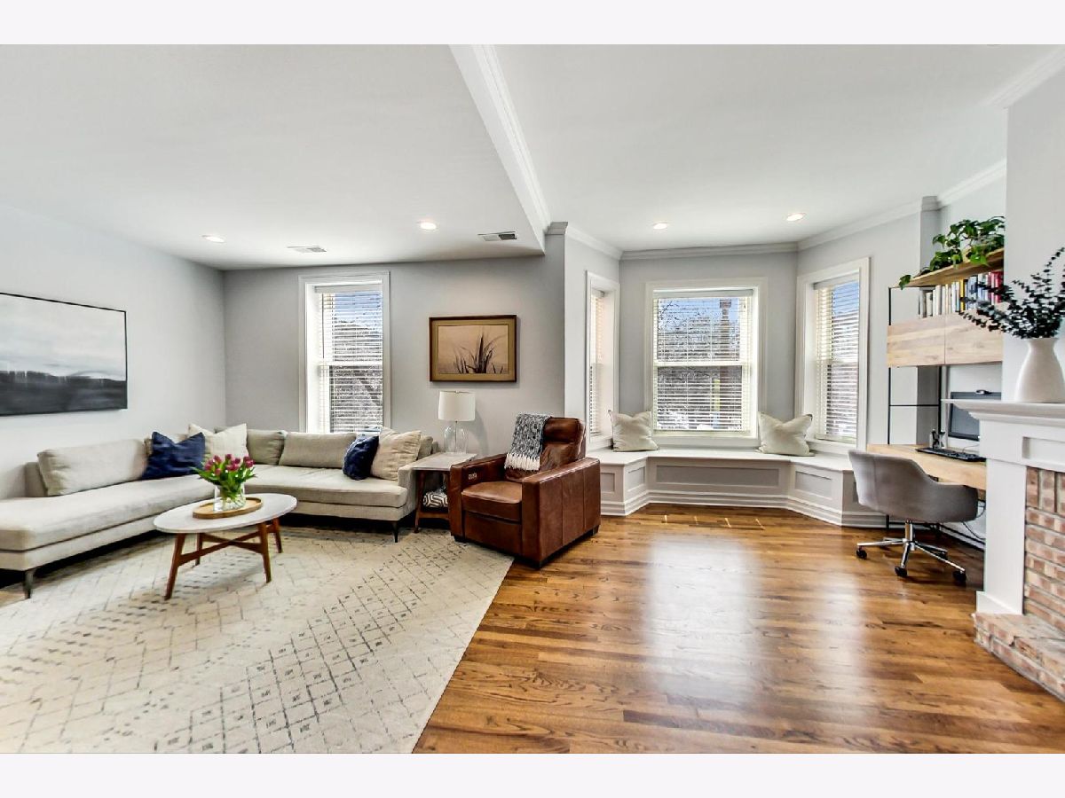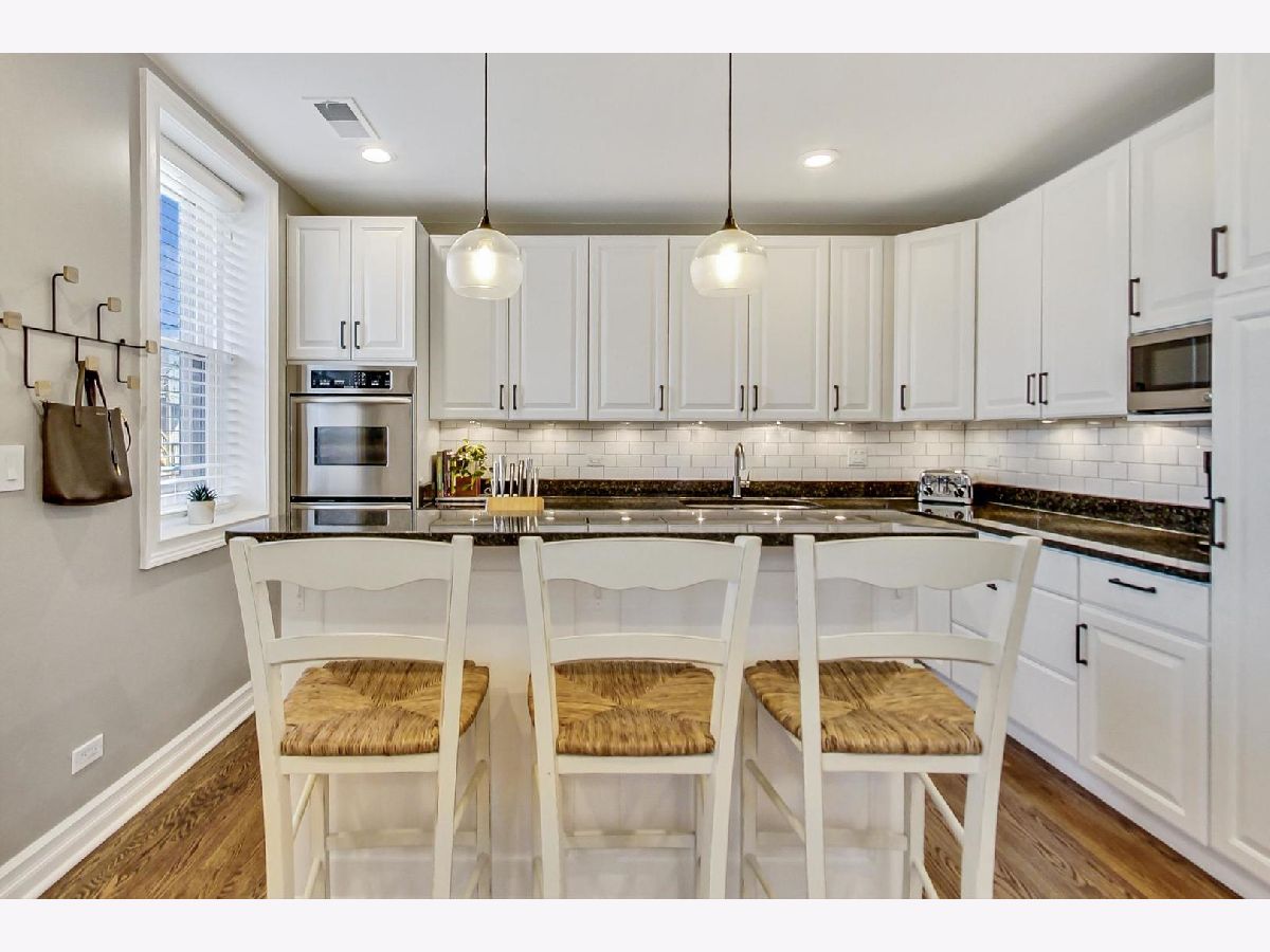 This elegant and stylish duplex up lives like a single family home with all 3 bedrooms on the 2nd floor. Location is everything: 1050 is located in the heart of Lincoln Park on the iconic and historic Armitage corridor in Oscar Mayer attendance area. The large living room is highlighted by a south-facing bay window with bench seating, a brick wood burning fireplace, and three generous closets for ample storage. The main level features beautiful hardwood floors throughout. The clean, all white, eat-in kitchen features timeless granite countertops, a double oven, stainless steel appliances, new dishwasher, and plenty of cabinet space. Additionally, there is a built-in pantry for added convenience. The roomy dining room is prewired for a TV, providing an enjoyable entertainment space. The kitchen opens up to what will be an expansive new catwalk to common outdoor space with grills and seating. The upstairs features all three bedrooms and newer carpet. The primary suite is a luxurious retreat, featuring a walk-in closet with built-in drawers and hamper. The spa-like en-suite bathroom is adorned with marble finishes, HEATED FLOORS, a gorgeous clawfoot tub, separate shower, double sinks, Waterworks hardware, and a spacious linen/storage closet. The additional bedrooms are also sizable and offer great closet space. Brand new washer and dryer located upstairs. New water heater in 2022. The building has four outdoor common areas featuring outside dining tables and common grills. 1 exterior parking space included with lots of common space for activities in the parking lot. Permit parking on side streets with free parking in front of the building. Ideal location just one block from the Armitage brown and purple lines, and in the center of all of the desirable shopping and restaurants that Lincoln Park has to offer!