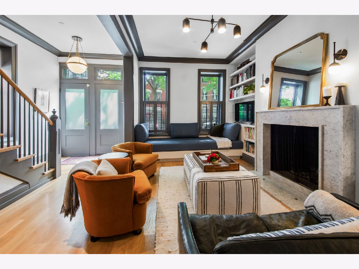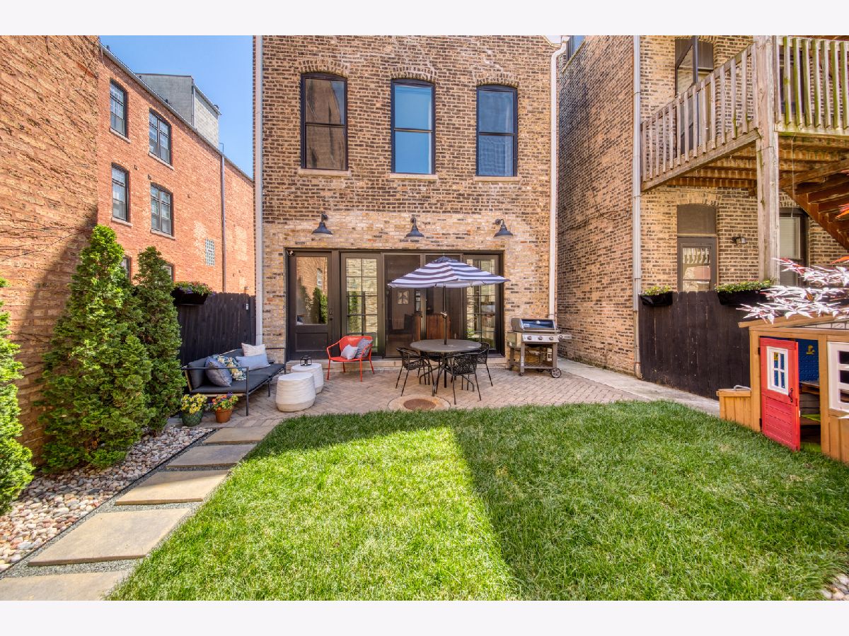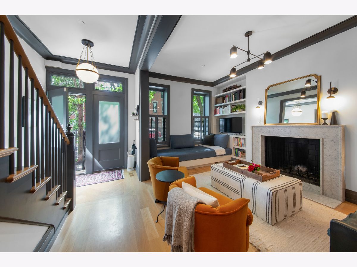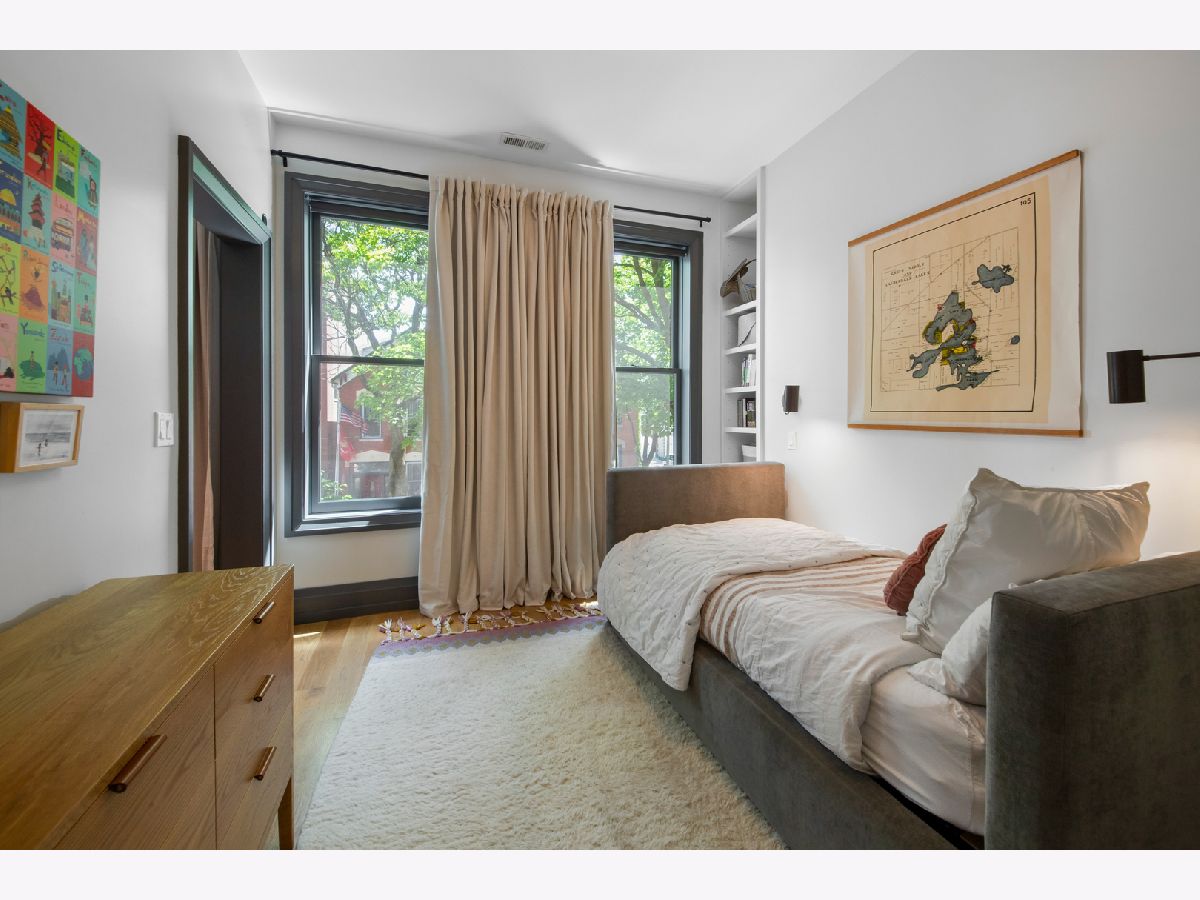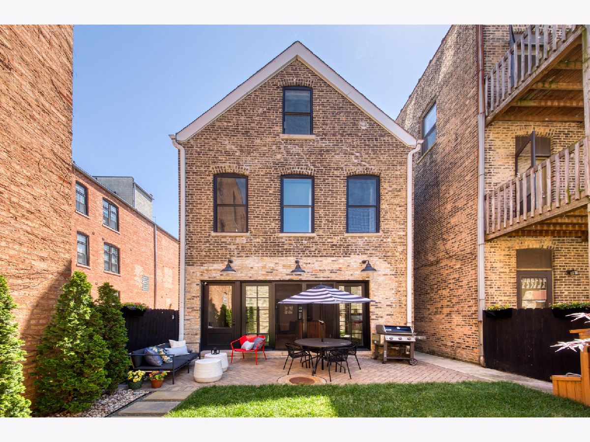 Welcome to 1050 N Wood Street, one of only a few homes landmarked by the city of Chicago in East Village. The exterior of the home is perfectly preserved and improved to reflect the original worker's cottage history from after the Chicago fire. From the charming tree lined Wood street, running centrally through West Town and Wicker Park, enter the all brick home through a set of picture frame frosted glass doors. Immediately feel embraced by good vibes and the warmth of a family friendly home, this entire home is above grade and flows with an open layout amid delicate door casing that create separate spaces. Marvin windows on all four sides of the home bring in natural light and allow privacy to the homeowner at the same time. All wide plank white oak flooring, tasteful crown molding, baseboards, and solid core doors tie in the modern finishes. In the front sitting room find a wood burning fireplace with a marble surround and a custom squared edge. Just under the stairs is a large coat closet and storage with room for the entire family. The formal dining room fits a table for eight. A toy room-built in office, a wet bar with wine fridge and a powder room with Ann Sacks tile separate the formal living space in the front of the house from the cozy and playful open kitchen and family room in the back of the house. Seamless floor to ceiling cabinets, drawers, built in bench and storage suit your heart's delight and line the entire family room and kitchen. A walnut topped island offers seating and high stools for a quick breakfast or light snack. A window over the kitchen sink, stainless subzero appliances and Bertozzini range. A wall of glass doors at the back of the home brings the outdoors indoors. Another built in bench and wet bar at the back entry make it easy to unload belongings after arrival from the garage. Softly landscaped and fenced backyard with pavers, space for grilling and dining take you to the new brick garage (roof deck ready - ask me for plans) equipped to charge electric vehicles and store bikes, tools, and more. Take the stairs to the second floor, white oak runs and delicately painted risers, love the original stair posts and complimentary spindles. Just past the landing is a laundry room with a sink and cabinet and front load washer/dryer and an art room for the kids. Each of the three bedrooms on the second level have ensuite bathrooms (cletile) and closets. Take the armoire lined hall through to the primary suite. Generous sized bedroom with built-in custom walnut side tables to fit a king bed set. Incredible primary bathroom has walnut sliding doors, custom walnut vanity, marble floors and marble and seamless glass tub/shower, stunning tile and hardware. Massive walk-in closet lined with armoires. The third floor has carpet and so much natural light from carefully placed skylights. Find another family room/play room, full bathroom, and two more bedrooms. Designer lighting everywhere: Cedar and Moss, Brendan Revenhill, and Park Studio LA lighting. Featured in Crain's, Parachute Home, Lonny and En Masse architecture. OPENHOUSE CANCELLED JULY 14. OFFER ACCEPTED.