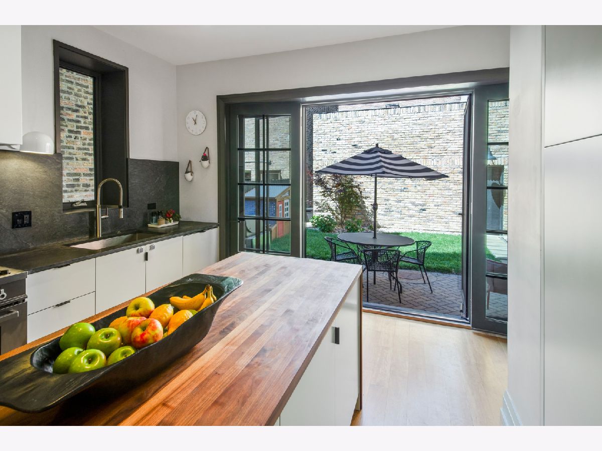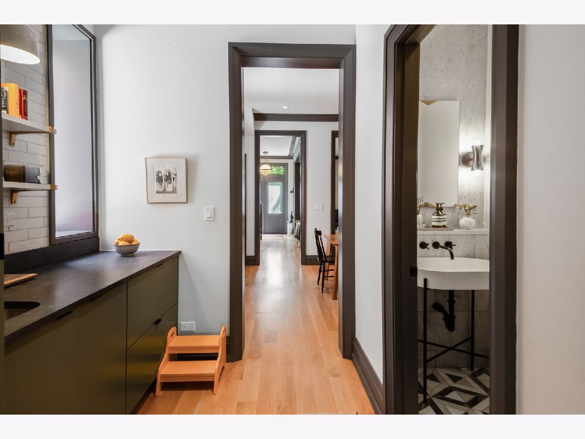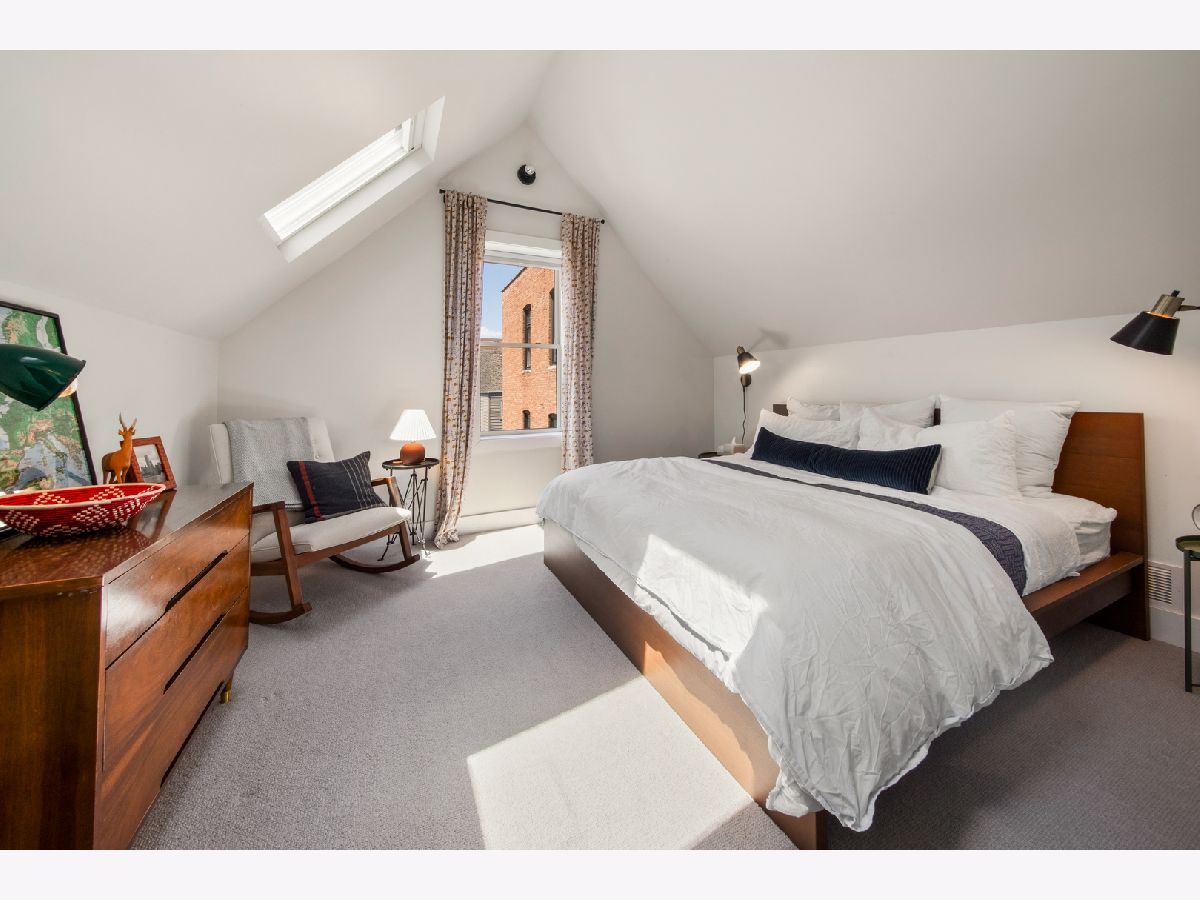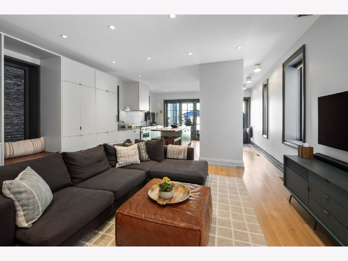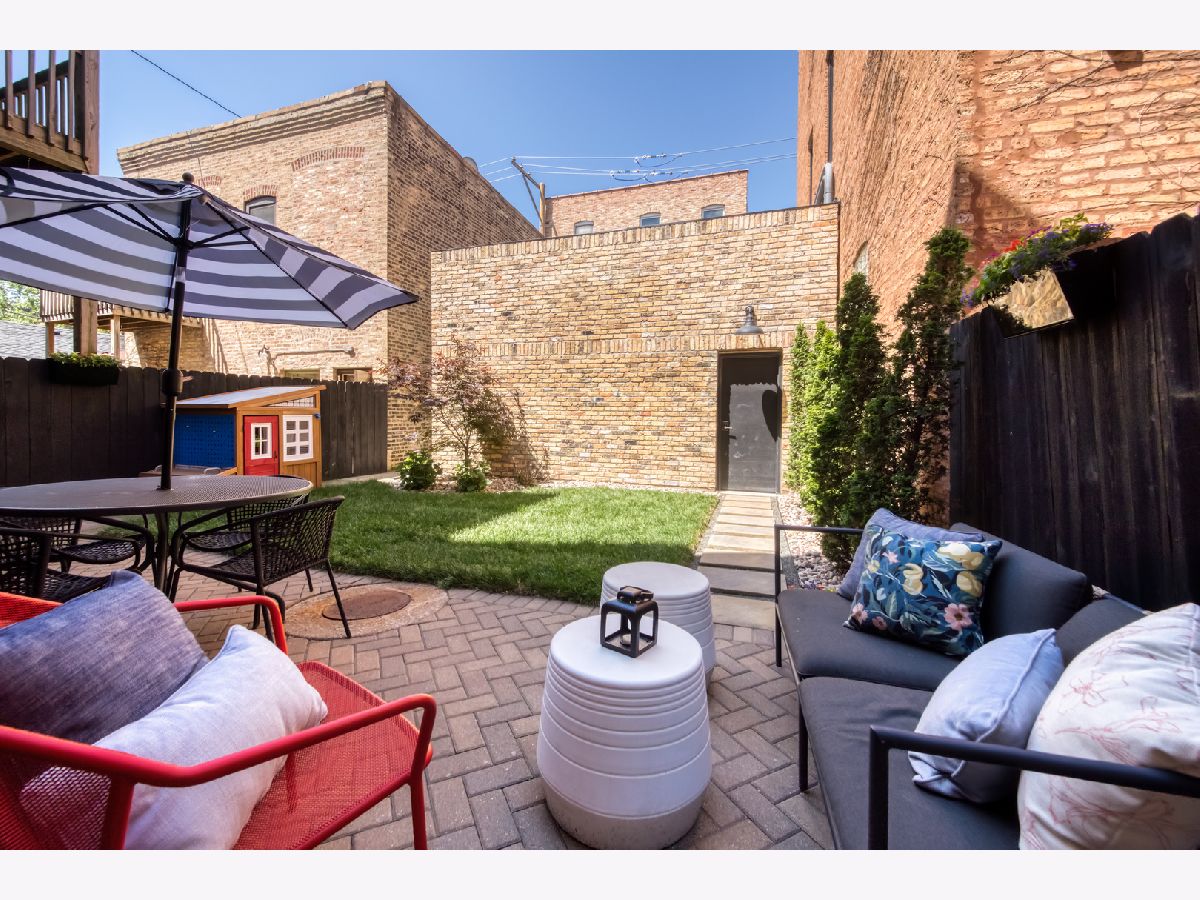 Welcome to 1050 N Wood Street, one of only a few homes landmarked by the city of Chicago in East Village. The exterior of the home is perfectly preserved and improved to reflect the original worker's cottage history from after the Chicago fire. From the charming tree lined Wood street, running centrally through West Town and Wicker Park, enter the all brick home through a set of picture frame frosted glass doors. Immediately feel embraced by good vibes and the warmth of a family friendly home, this entire home is above grade and flows with an open layout amid delicate door casing that create separate spaces. Marvin windows on all four sides of the home bring in natural light and allow privacy to the homeowner at the same time. All wide plank white oak flooring, tasteful crown molding, baseboards, and solid core doors tie in the modern finishes. In the front sitting room find a wood burning fireplace with a marble surround and a custom squared edge. Just under the stairs is a large coat closet and storage with room for the entire family. The formal dining room fits a table for eight. A toy room-built in office, a wet bar with wine fridge and a powder room with Ann Sacks tile separate the formal living space in the front of the house from the cozy and playful open kitchen and family room in the back of the house. Seamless floor to ceiling cabinets, drawers, built in bench and storage suit your heart's delight and line the entire family room and kitchen. A walnut topped island offers seating and high stools for a quick breakfast or light snack. A window over the kitchen sink, stainless subzero appliances and Bertozzini range. A wall of glass doors at the back of the home brings the outdoors indoors. Another built in bench and wet bar at the back entry make it easy to unload belongings after arrival from the garage. Softly landscaped and fenced backyard with pavers, space for grilling and dining take you to the new brick garage (roof deck ready - ask me for plans) equipped to charge electric vehicles and store bikes, tools, and more. Take the stairs to the second floor, white oak runs and delicately painted risers, love the original stair posts and complimentary spindles. Just past the landing is a laundry room with a sink and cabinet and front load washer/dryer and an art room for the kids. Each of the three bedrooms on the second level have ensuite bathrooms (cletile) and closets. Take the armoire lined hall through to the primary suite. Generous sized bedroom with built-in custom walnut side tables to fit a king bed set. Incredible primary bathroom has walnut sliding doors, custom walnut vanity, marble floors and marble and seamless glass tub/shower, stunning tile and hardware. Massive walk-in closet lined with armoires. The third floor has carpet and so much natural light from carefully placed skylights. Find another family room/play room, full bathroom, and two more bedrooms. Designer lighting everywhere: Cedar and Moss, Brendan Revenhill, and Park Studio LA lighting. Featured in Crain's, Parachute Home, Lonny and En Masse architecture. OPENHOUSE CANCELLED JULY 14. OFFER ACCEPTED.