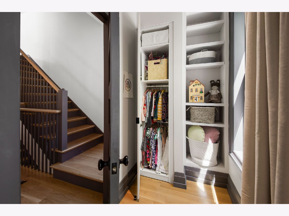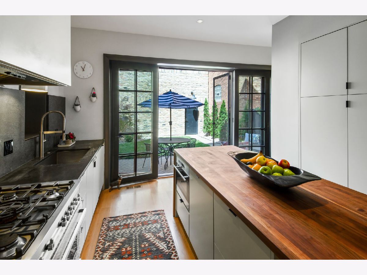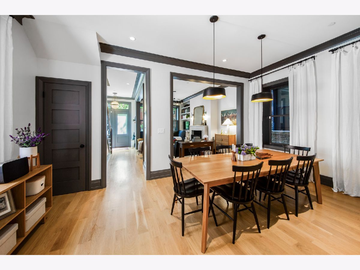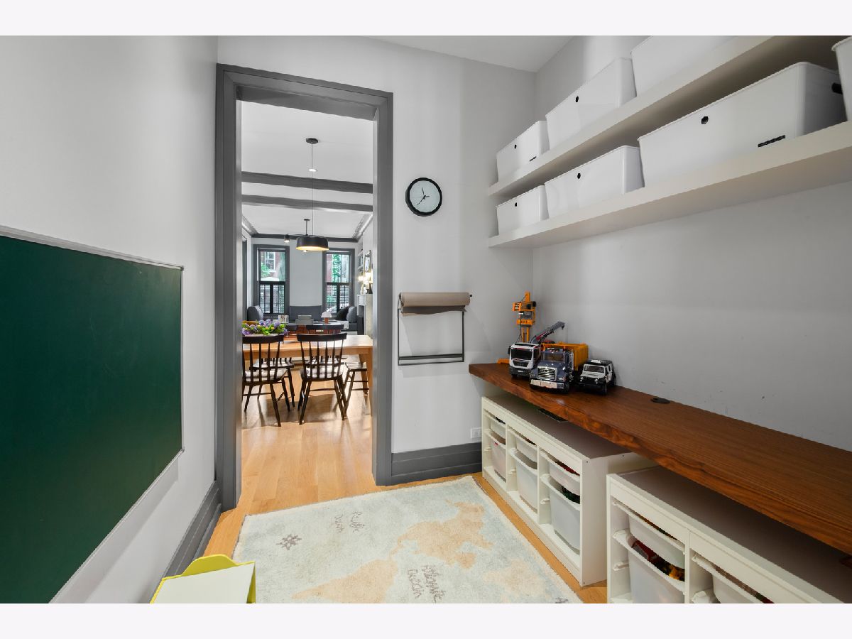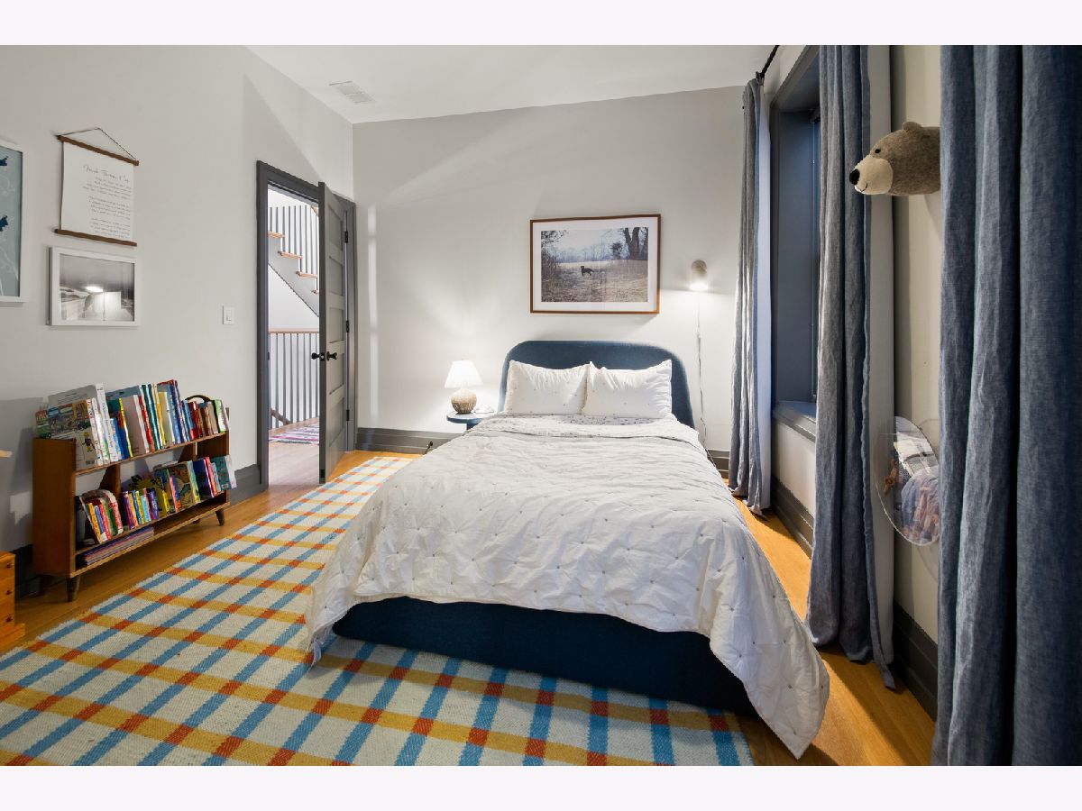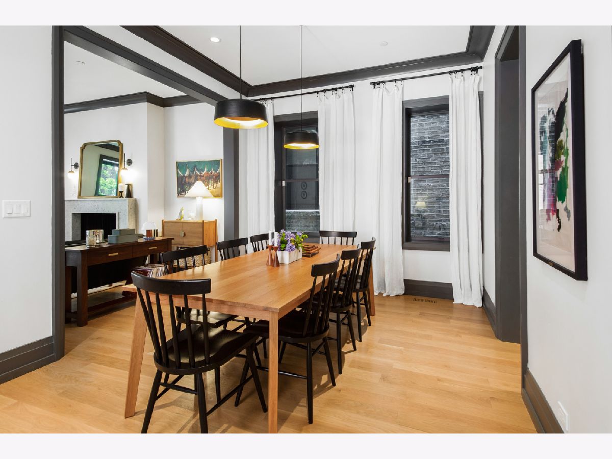 Welcome to 1050 N Wood Street, one of only a few homes landmarked by the city of Chicago in East Village. The exterior of the home is perfectly preserved and improved to reflect the original worker's cottage history from after the Chicago fire. From the charming tree lined Wood street, running centrally through West Town and Wicker Park, enter the all brick home through a set of picture frame frosted glass doors. Immediately feel embraced by good vibes and the warmth of a family friendly home, this entire home is above grade and flows with an open layout amid delicate door casing that create separate spaces. Marvin windows on all four sides of the home bring in natural light and allow privacy to the homeowner at the same time. All wide plank white oak flooring, tasteful crown molding, baseboards, and solid core doors tie in the modern finishes. In the front sitting room find a wood burning fireplace with a marble surround and a custom squared edge. Just under the stairs is a large coat closet and storage with room for the entire family. The formal dining room fits a table for eight. A toy room-built in office, a wet bar with wine fridge and a powder room with Ann Sacks tile separate the formal living space in the front of the house from the cozy and playful open kitchen and family room in the back of the house. Seamless floor to ceiling cabinets, drawers, built in bench and storage suit your heart's delight and line the entire family room and kitchen. A walnut topped island offers seating and high stools for a quick breakfast or light snack. A window over the kitchen sink, stainless subzero appliances and Bertozzini range. A wall of glass doors at the back of the home brings the outdoors indoors. Another built in bench and wet bar at the back entry make it easy to unload belongings after arrival from the garage. Softly landscaped and fenced backyard with pavers, space for grilling and dining take you to the new brick garage (roof deck ready - ask me for plans) equipped to charge electric vehicles and store bikes, tools, and more. Take the stairs to the second floor, white oak runs and delicately painted risers, love the original stair posts and complimentary spindles. Just past the landing is a laundry room with a sink and cabinet and front load washer/dryer and an art room for the kids. Each of the three bedrooms on the second level have ensuite bathrooms (cletile) and closets. Take the armoire lined hall through to the primary suite. Generous sized bedroom with built-in custom walnut side tables to fit a king bed set. Incredible primary bathroom has walnut sliding doors, custom walnut vanity, marble floors and marble and seamless glass tub/shower, stunning tile and hardware. Massive walk-in closet lined with armoires. The third floor has carpet and so much natural light from carefully placed skylights. Find another family room/play room, full bathroom, and two more bedrooms. Designer lighting everywhere: Cedar and Moss, Brendan Revenhill, and Park Studio LA lighting. Featured in Crain's, Parachute Home, Lonny and En Masse architecture. OPENHOUSE CANCELLED JULY 14. OFFER ACCEPTED.
