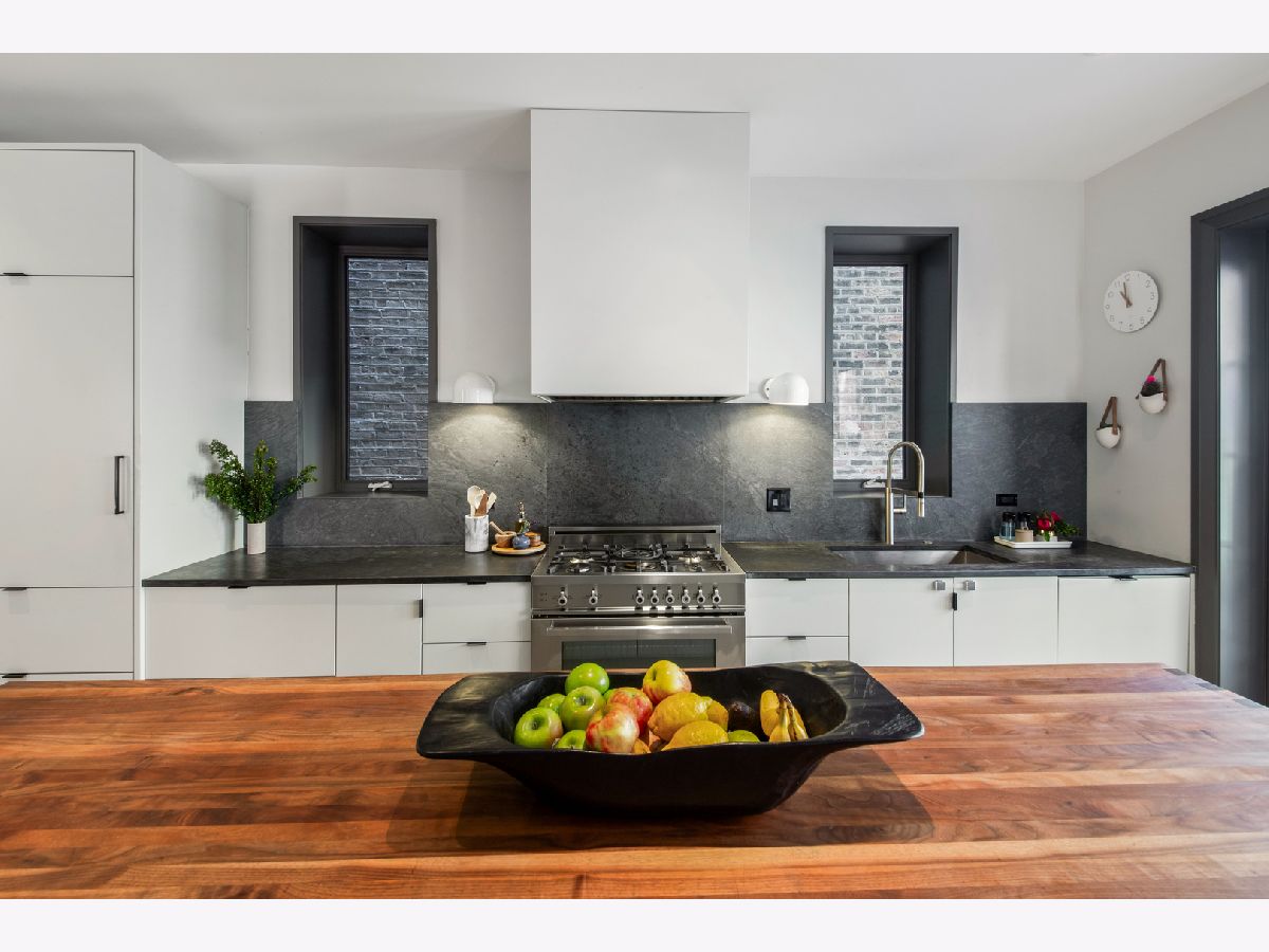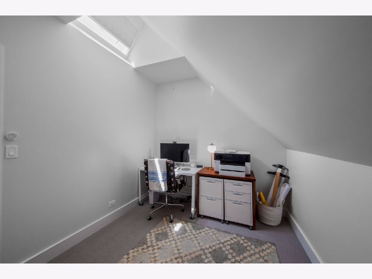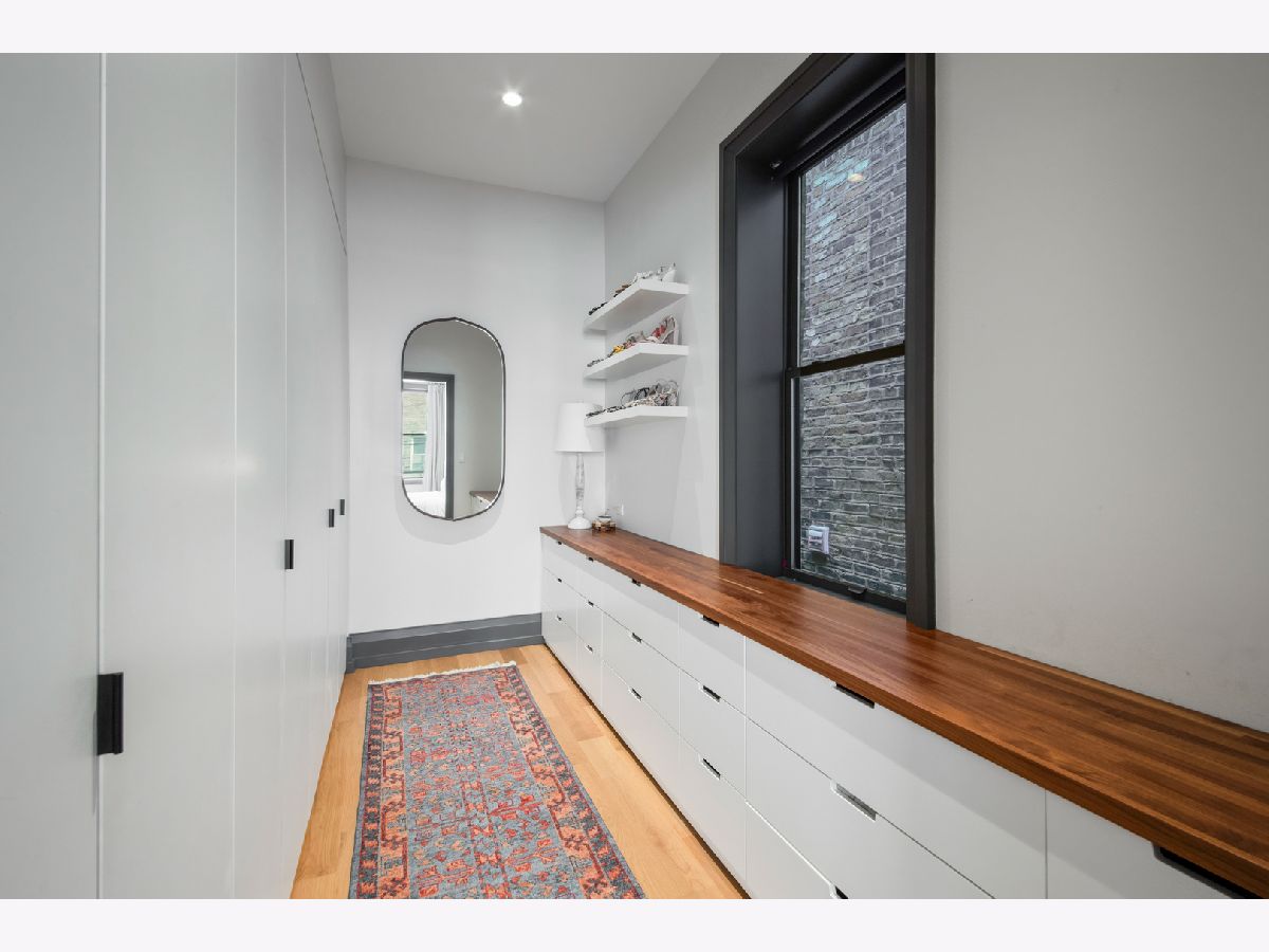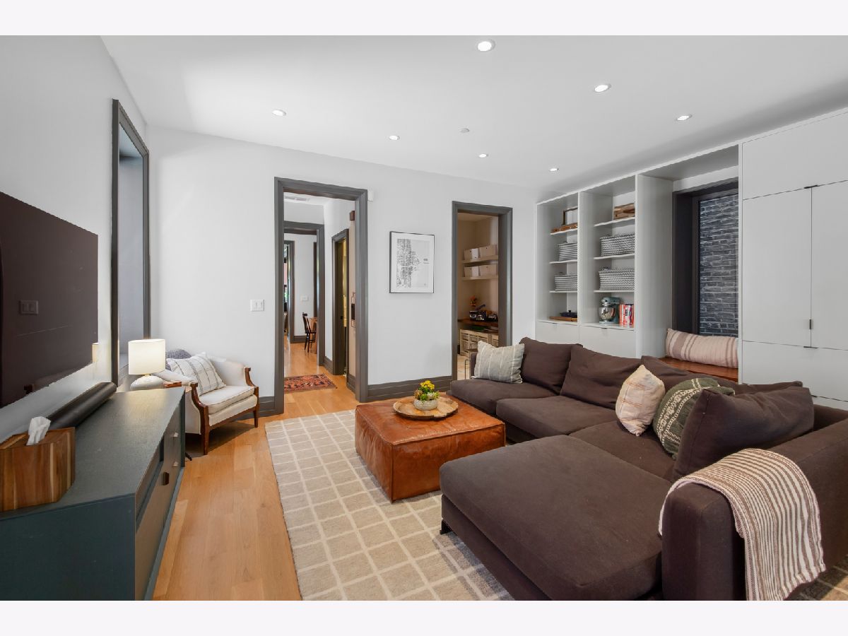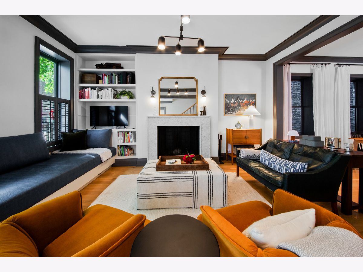 Welcome to 1050 N Wood Street, one of only a few homes landmarked by the city of Chicago in East Village. The exterior of the home is perfectly preserved and improved to reflect the original worker's cottage history from after the Chicago fire. From the charming tree lined Wood street, running centrally through West Town and Wicker Park, enter the all brick home through a set of picture frame frosted glass doors. Immediately feel embraced by good vibes and the warmth of a family friendly home, this entire home is above grade and flows with an open layout amid delicate door casing that create separate spaces. Marvin windows on all four sides of the home bring in natural light and allow privacy to the homeowner at the same time. All wide plank white oak flooring, tasteful crown molding, baseboards, and solid core doors tie in the modern finishes. In the front sitting room find a wood burning fireplace with a marble surround and a custom squared edge. Just under the stairs is a large coat closet and storage with room for the entire family. The formal dining room fits a table for eight. A toy room-built in office, a wet bar with wine fridge and a powder room with Ann Sacks tile separate the formal living space in the front of the house from the cozy and playful open kitchen and family room in the back of the house. Seamless floor to ceiling cabinets, drawers, built in bench and storage suit your heart's delight and line the entire family room and kitchen. A walnut topped island offers seating and high stools for a quick breakfast or light snack. A window over the kitchen sink, stainless subzero appliances and Bertozzini range. A wall of glass doors at the back of the home brings the outdoors indoors. Another built in bench and wet bar at the back entry make it easy to unload belongings after arrival from the garage. Softly landscaped and fenced backyard with pavers, space for grilling and dining take you to the new brick garage (roof deck ready - ask me for plans) equipped to charge electric vehicles and store bikes, tools, and more. Take the stairs to the second floor, white oak runs and delicately painted risers, love the original stair posts and complimentary spindles. Just past the landing is a laundry room with a sink and cabinet and front load washer/dryer and an art room for the kids. Each of the three bedrooms on the second level have ensuite bathrooms (cletile) and closets. Take the armoire lined hall through to the primary suite. Generous sized bedroom with built-in custom walnut side tables to fit a king bed set. Incredible primary bathroom has walnut sliding doors, custom walnut vanity, marble floors and marble and seamless glass tub/shower, stunning tile and hardware. Massive walk-in closet lined with armoires. The third floor has carpet and so much natural light from carefully placed skylights. Find another family room/play room, full bathroom, and two more bedrooms. Designer lighting everywhere: Cedar and Moss, Brendan Revenhill, and Park Studio LA lighting. Featured in Crain's, Parachute Home, Lonny and En Masse architecture. OPENHOUSE CANCELLED JULY 14. OFFER ACCEPTED.