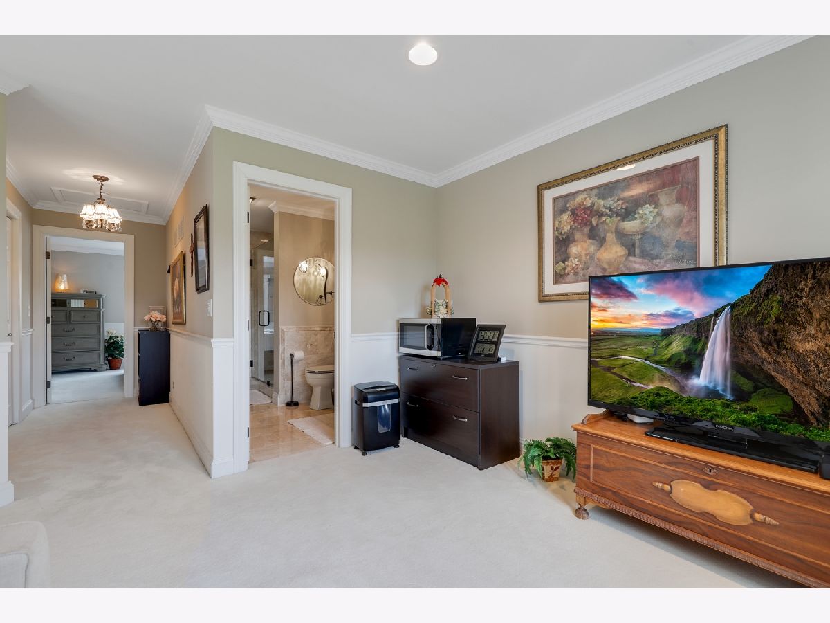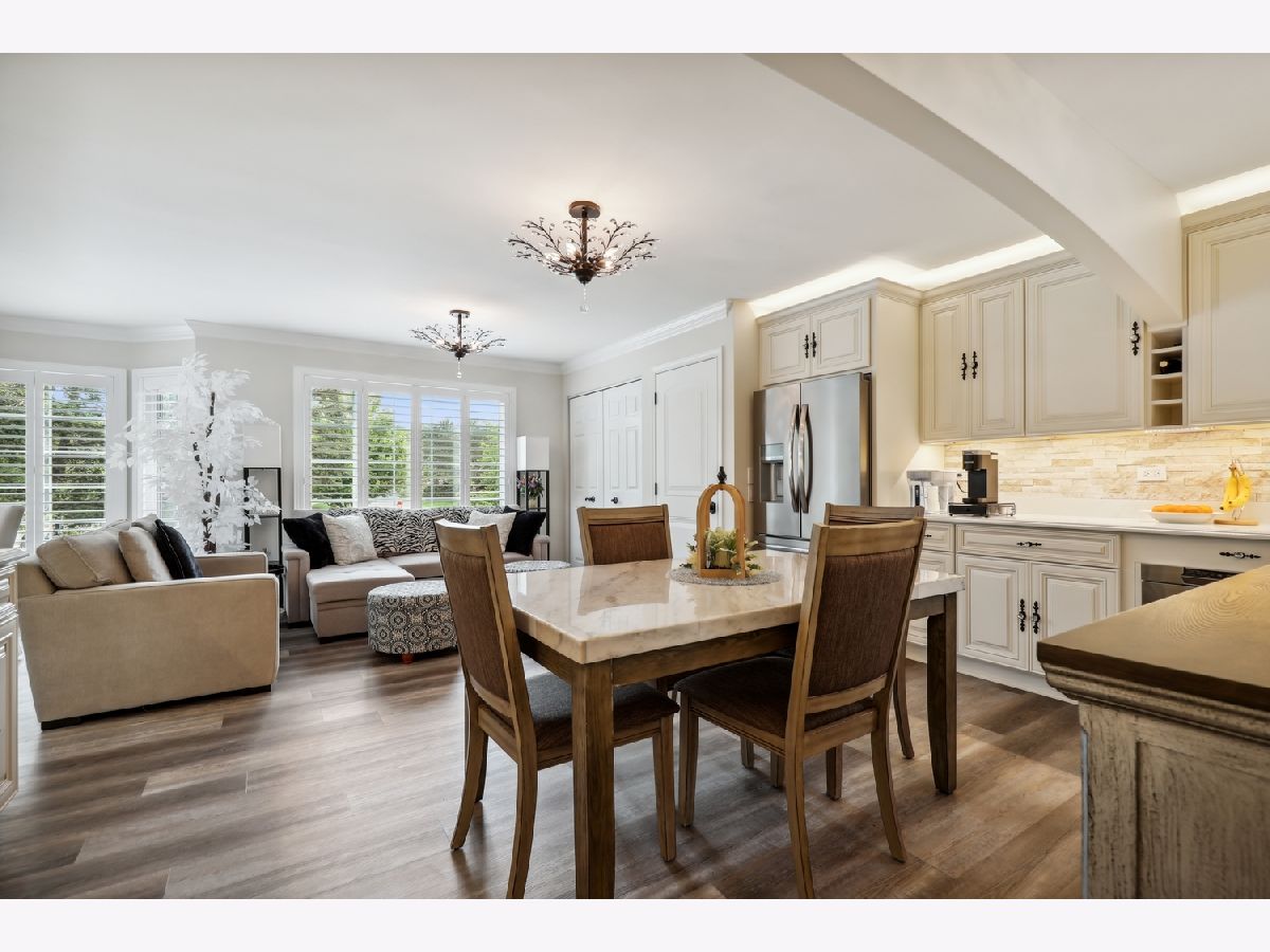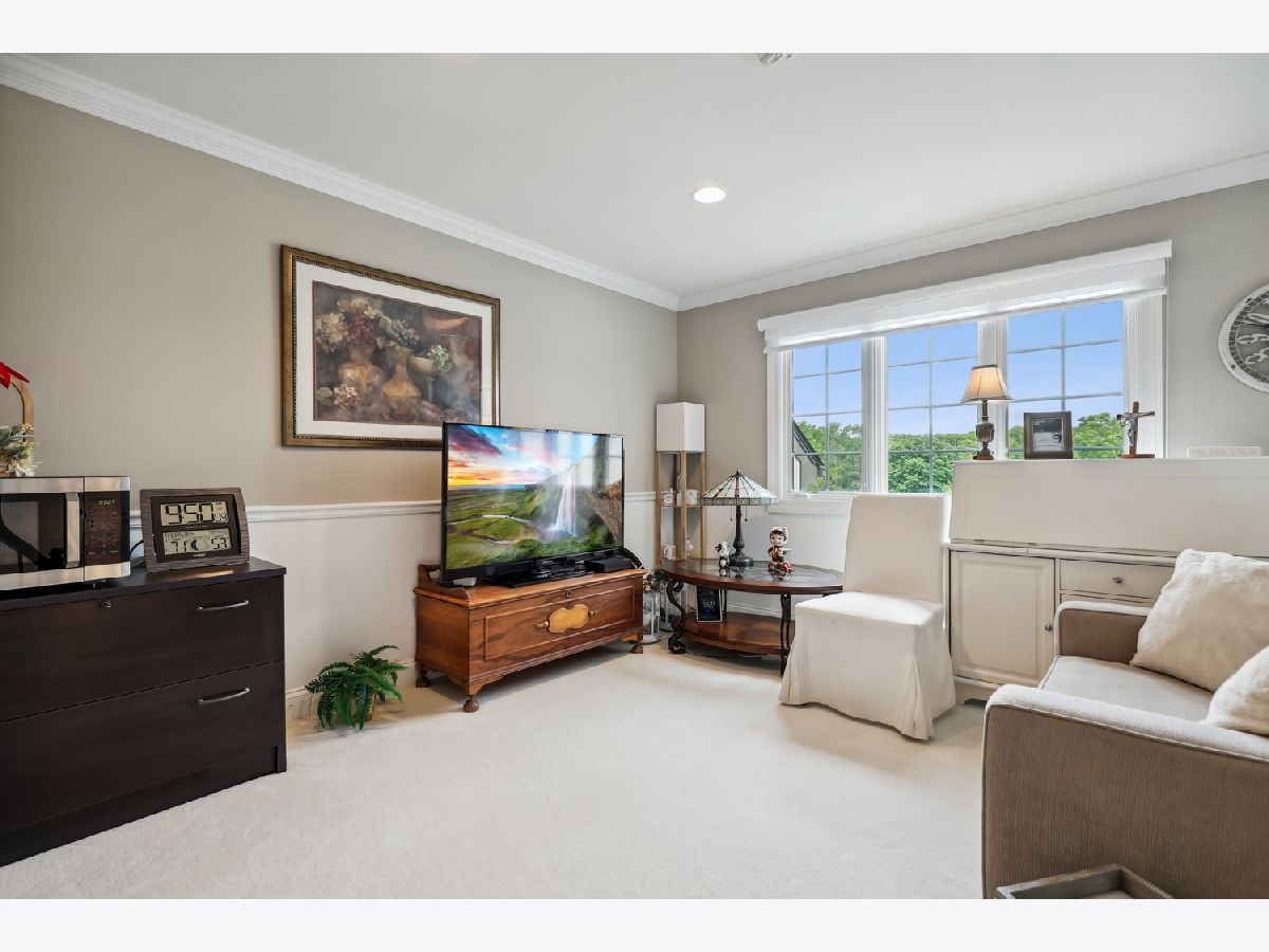 Welcome to this exquisite 2-bedroom, 2.5-bath townhome in one of Orland Park's most prestigious gated communities Crystal Tree Country Club, offering a serene golf course, 2 clubhouses, and pond views. Views from every window in the home! Superb location end unit with open lawns on one side for extra privacy. The main floor was fully renovated in 2024, and the home showcases thoughtful updates throughout, blending timeless elegance with modern convenience. Step inside to discover a beautifully appointed main level featuring luxury vinyl plank flooring, soaring ceilings, and custom architectural details including plantation shutters, crown molding, wainscoting, and warm designer lighting. The inviting living room boasts a cozy renovated fireplace and charming bay window, creating a bright, relaxing space for everyday living. A formal dining room flows into the brand-new, high-end eat-in kitchen, complete with granite countertops, stainless steel appliances, and ample cabinetry-perfect for entertaining in style. Retreat to the spacious main-floor primary suite, large enough for a king-sized bed, and indulge in a spa-inspired marble bathroom featuring a soaking tub, double vanity, and separate shower. An elegant powder room completes the main floor. Upstairs, you'll find a versatile loft space, a beautifully renovated full bath, and a generous second bedroom with a massive walk-in closet-ideal for guests, a home office, or additional living space. Notable updates include new garage doors and openers, extra-wide gutters and downspouts, and a newly painted exterior (2024). The home also features premium Marvin windows installed in 2020. Additional highlights include a full unfinished basement ready for your vision, an attached 2-car garage, and access to the tranquil lifestyle this gated community provides. This rare offering combines luxury, privacy, and breathtaking surroundings-schedule your private showing today!