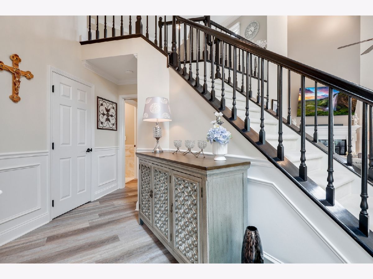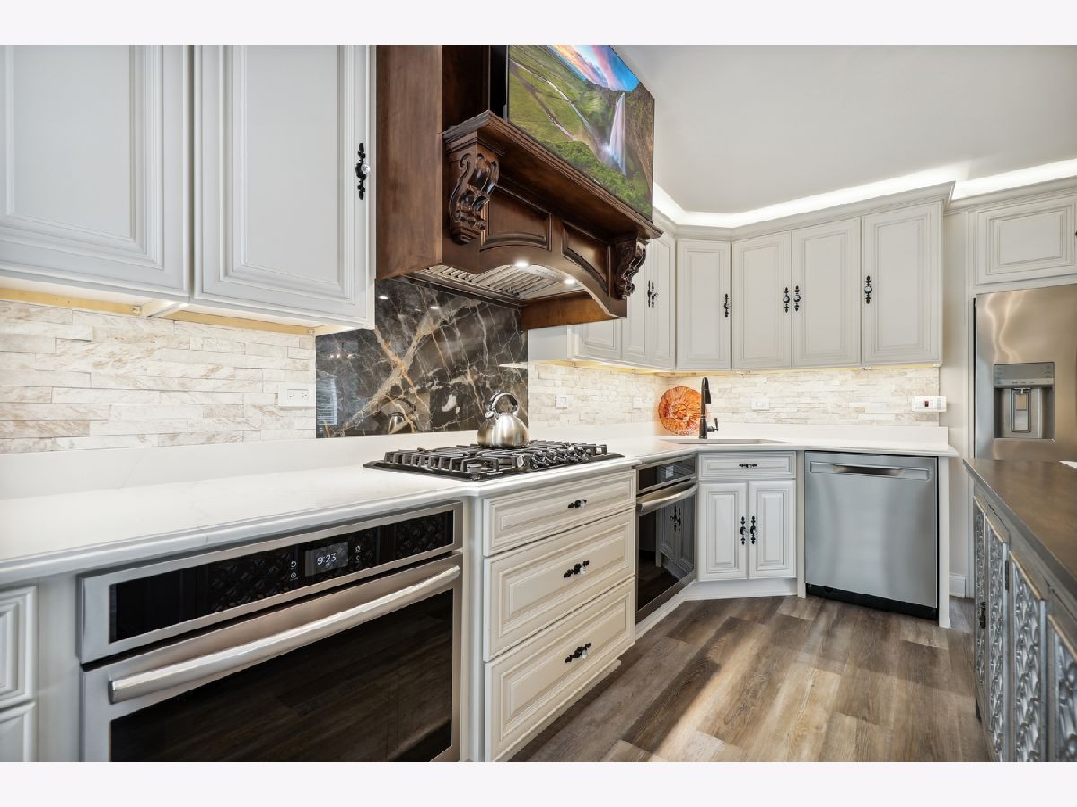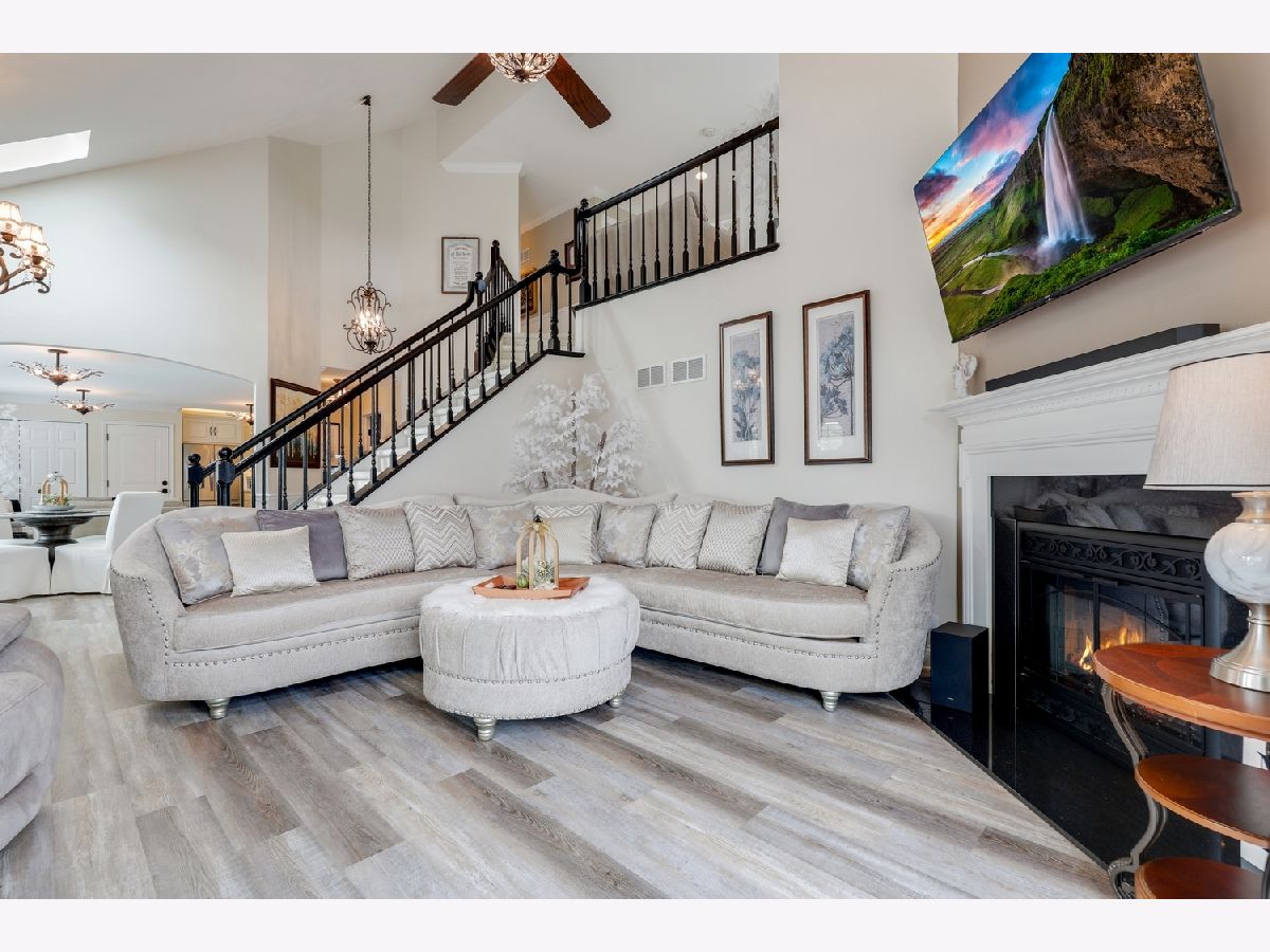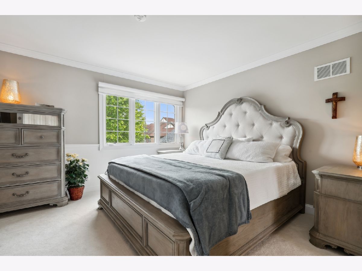 Welcome to this exquisite 2-bedroom, 2.5-bath townhome in one of Orland Park's most prestigious gated communities Crystal Tree Country Club, offering a serene golf course, 2 clubhouses, and pond views. Views from every window in the home! Superb location end unit with open lawns on one side for extra privacy. The main floor was fully renovated in 2024, and the home showcases thoughtful updates throughout, blending timeless elegance with modern convenience. Step inside to discover a beautifully appointed main level featuring luxury vinyl plank flooring, soaring ceilings, and custom architectural details including plantation shutters, crown molding, wainscoting, and warm designer lighting. The inviting living room boasts a cozy renovated fireplace and charming bay window, creating a bright, relaxing space for everyday living. A formal dining room flows into the brand-new, high-end eat-in kitchen, complete with granite countertops, stainless steel appliances, and ample cabinetry-perfect for entertaining in style. Retreat to the spacious main-floor primary suite, large enough for a king-sized bed, and indulge in a spa-inspired marble bathroom featuring a soaking tub, double vanity, and separate shower. An elegant powder room completes the main floor. Upstairs, you'll find a versatile loft space, a beautifully renovated full bath, and a generous second bedroom with a massive walk-in closet-ideal for guests, a home office, or additional living space. Notable updates include new garage doors and openers, extra-wide gutters and downspouts, and a newly painted exterior (2024). The home also features premium Marvin windows installed in 2020. Additional highlights include a full unfinished basement ready for your vision, an attached 2-car garage, and access to the tranquil lifestyle this gated community provides. This rare offering combines luxury, privacy, and breathtaking surroundings-schedule your private showing today!