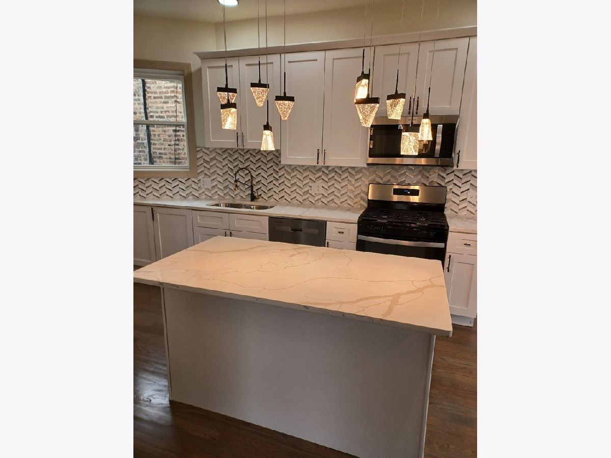 First class gut rehab by Chicago Hope Homes. Both units are suitable for owner's unit with open kitchens and Master baths in each unit. Property duplexed down to finished basement (3Br, 3 Bath!!) and 2nd level unit has 3 BR and 2 full baths!!. Both kitchens with ample quartz counter and open to family living areas. Deck off top floor master suite. 1st class quality rehab. All systems, windows, garage 100% new. Easy to show