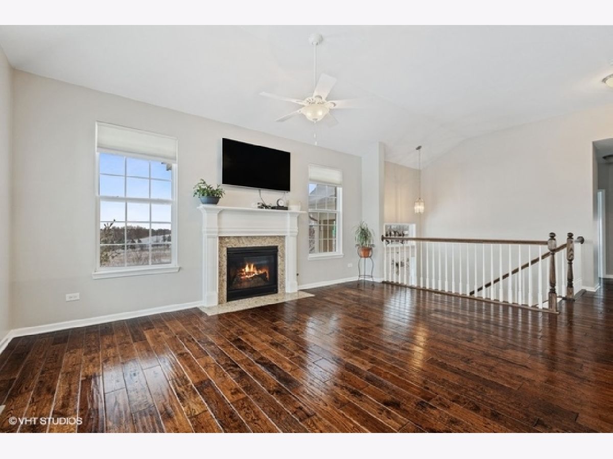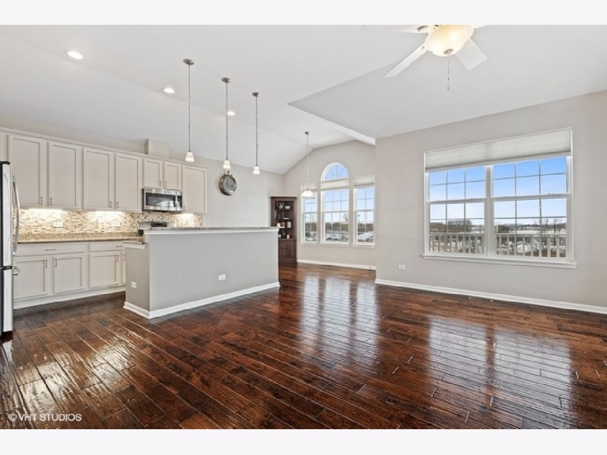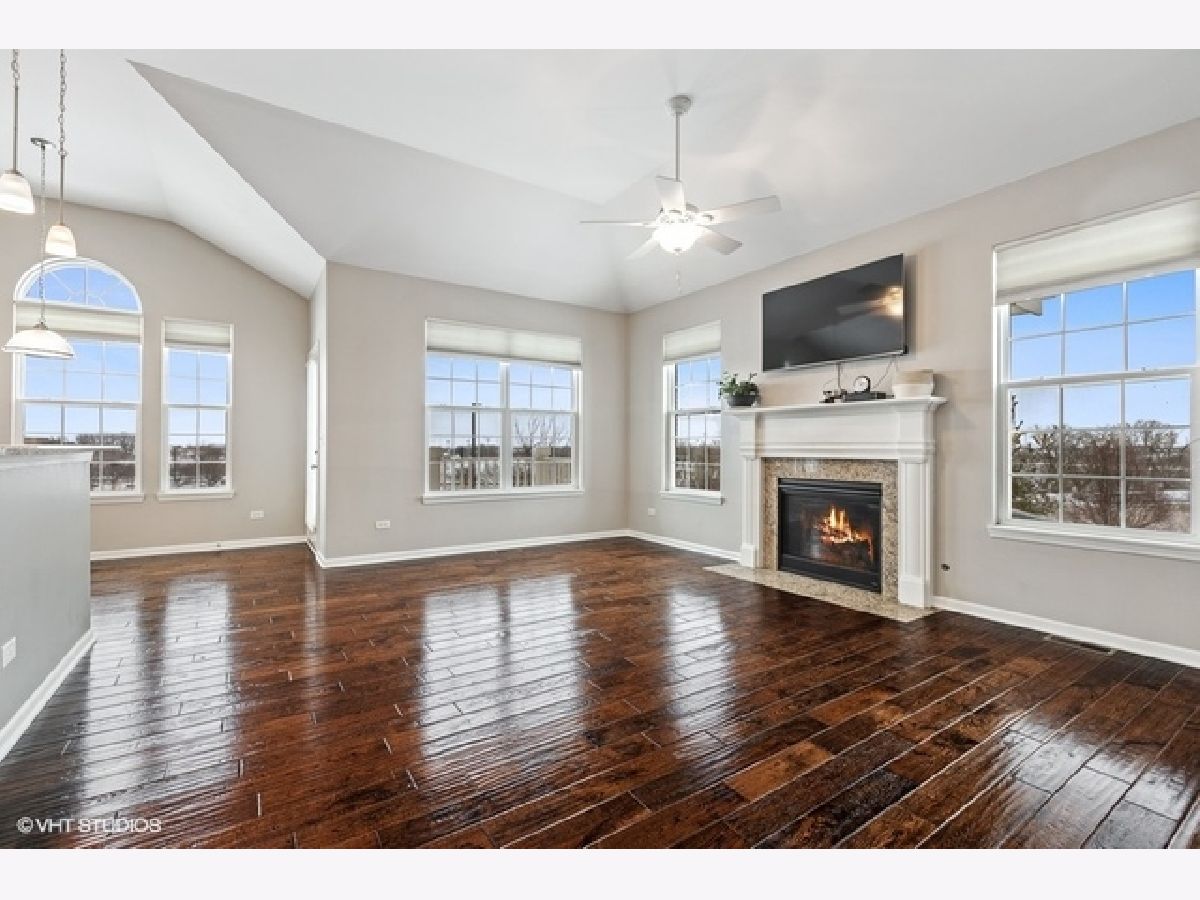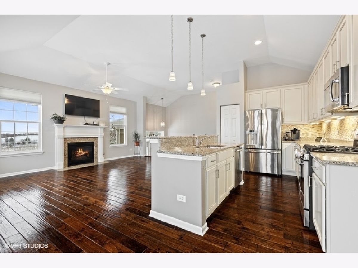 Welcome home to your sought after raised ranch end unit in Sheffield Square. Featuring 3 bedrooms, 3 full baths, and volume ceilings in the family room, kitchen, upper hall & primary bedroom. Hand scraped hardwood floors in living room & kitchen. 42' maple cabinetry, granite counters with island seating, and stainless appliances. Luxurious primary bedroom with walk-in closet, double sinks & spa-inspired bath. You will love the finished lower level complete with bedroom, family room, laundry & full bath. 2 car attached garage features custom built-in cabinetry, epoxy sealed showroom floor, tv incl surround sound, and custom pull down screen for entertaining. Enjoy your evenings on the balcony with beautiful views of parks, ponds, and greenery. Easy access to shopping, dining, Lake Sedgewick, Sportsplex, & Centennial Aquatic Center. Best of all, walk the beautiful grounds to Metra for just a 45 minute ride into the Loop.