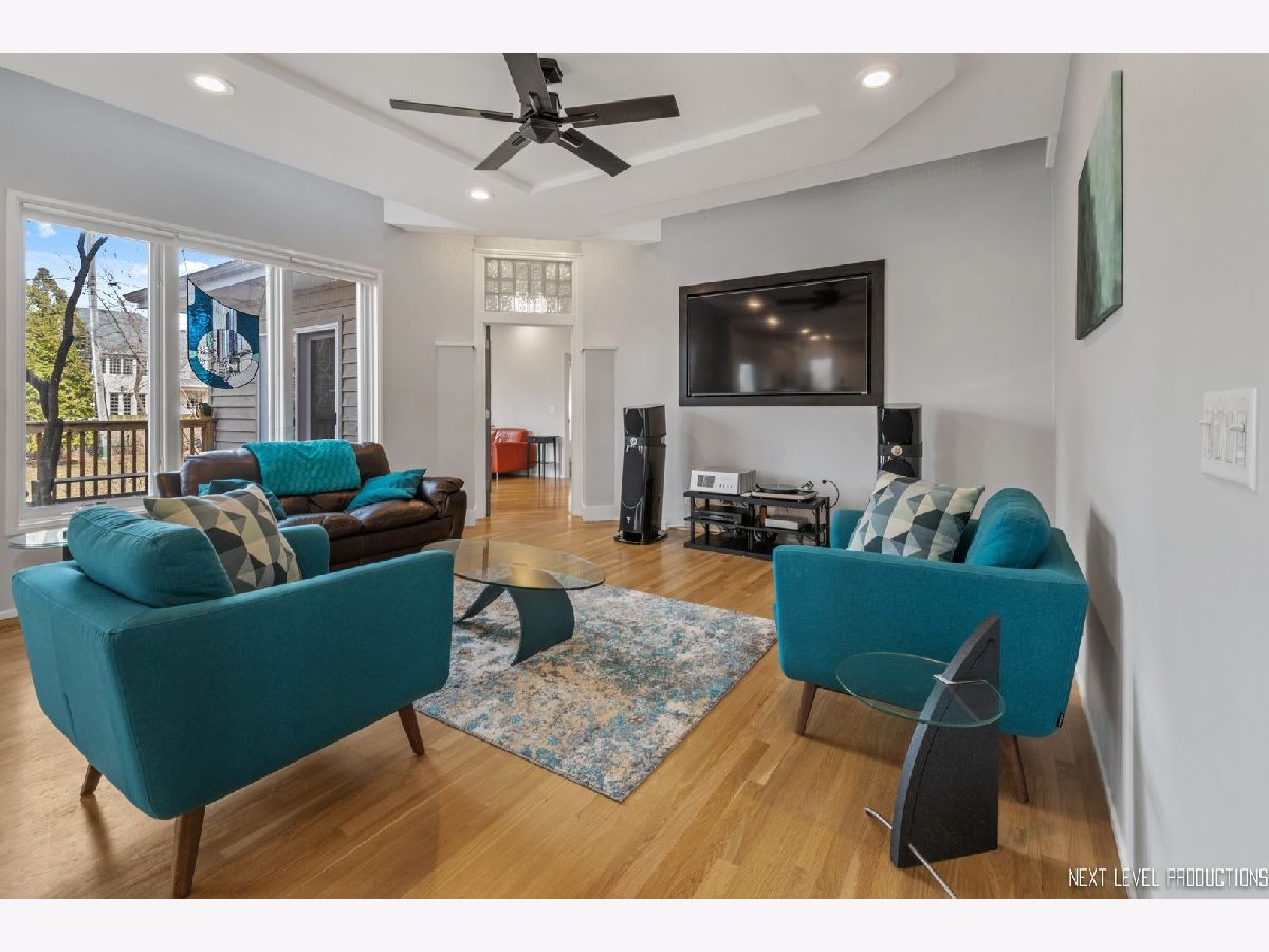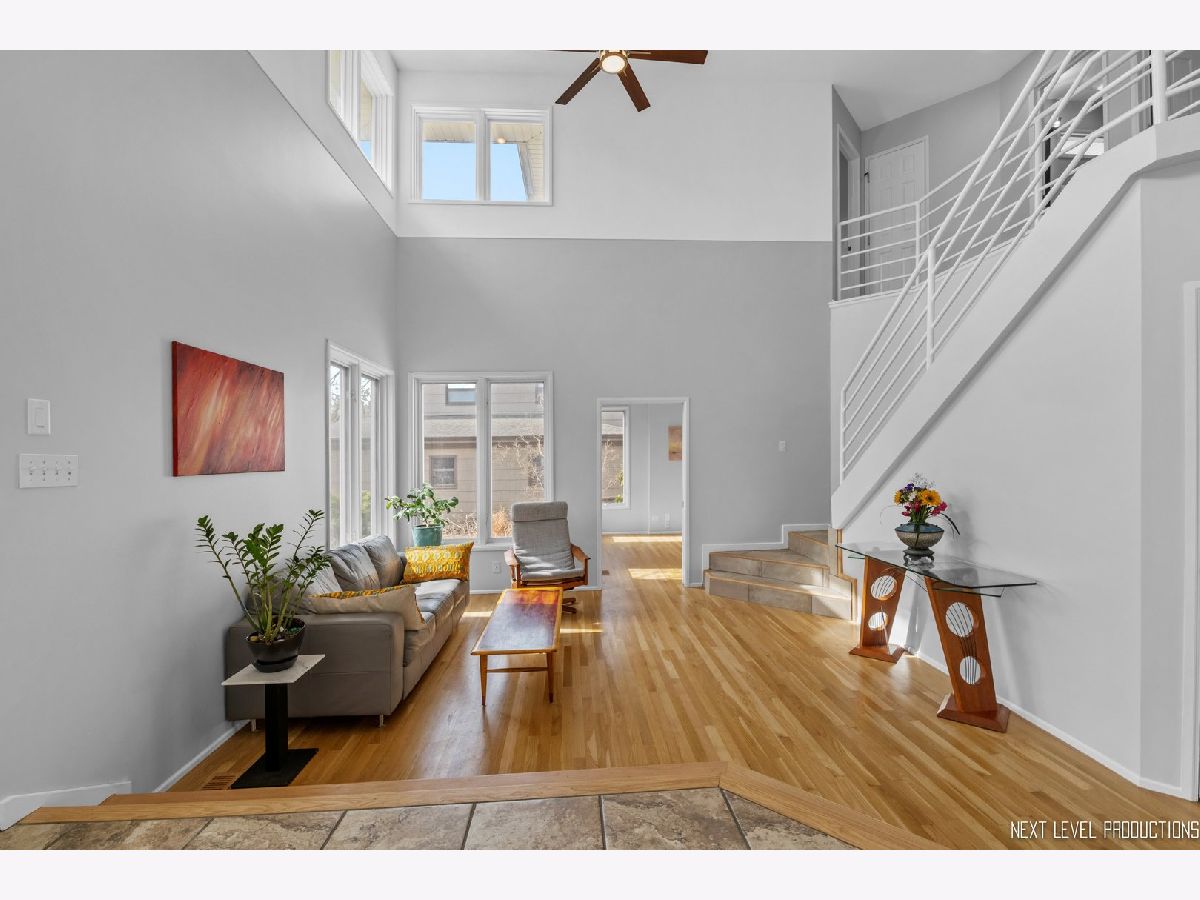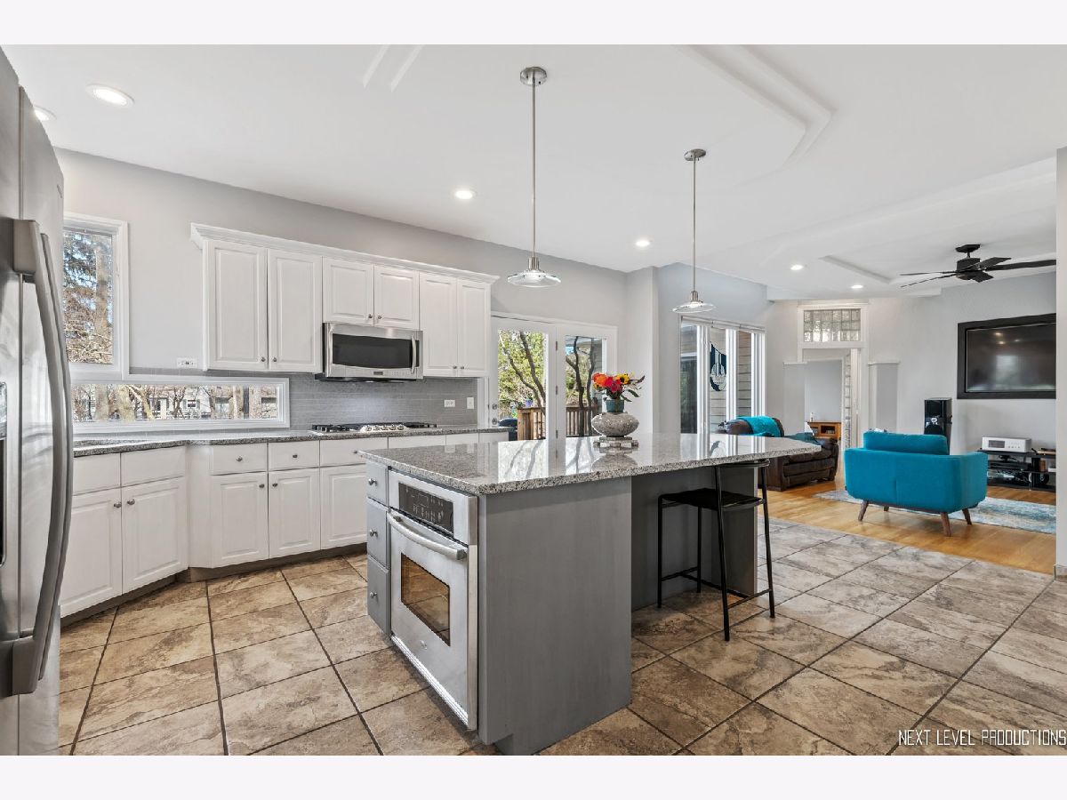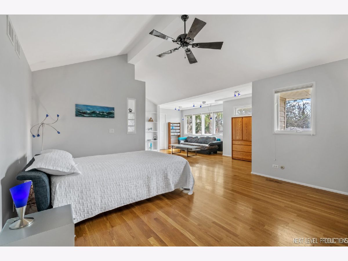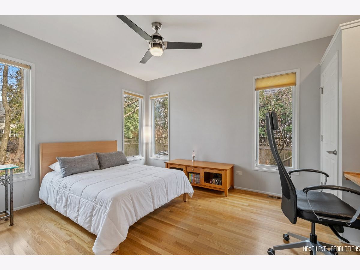 This stunning custom designed contemporary home on a large .38 lot in the heart of Naperville is perfect for multi-generational living with a seamlessly integrated suite added in 2016. The soaring two story entrance and living room are filled with natural light that accentuates the modern staircase leading to the open concept second floor. The kitchen has a large island/breakfast bar with new granite counters through out that complement the beautiful new tile backsplash. The stainless steel appliances including a new cook top and new high end refrigerator are accented by new recessed LED lighting. The kitchen opens into the family room with its custom ceiling and large windows overlooking the deck. Upstairs the large Master bedroom has a sitting area, two walk-in closets, updated bath with separate soaking tub, walk-in shower, and two custom designed soft close vanities. There is a beautiful loft next to the master that can be used for office/den or sitting room featuring floor to ceiling windows with a view to the naturally landscaped backyard. Two more large bedrooms and an updated hall bath provide plenty of living space on the second floor. The in-law suite on the first floor offers a separate wheelchair compliant entrance with outdoor ramp and railing, its own kitchen, full bath with walk-in fully tiled shower, bedroom and a sitting area that opens to the family room on the main floor. The kitchen in the suite features custom soft close cabinets, with two large lazy Susan cabinets, in counter trash bins and a large walk-in pantry. This space has its own ac/heat and sump pump. A great space for in-laws, guests, private home office, in-home learning, or entertaining. There is also plenty of room for entertaining in your formal dining room and large kitchen that opens onto your deck, connecting your outdoor space with the in-law suite so everyone can enjoy the idyllic, fully fenced private backyard with its park like landscaping including witch hazel trees and native plants that bloom year round. The front yard was professionally landscaped in Nov. 2020 and the wood on the outside of the house is freshly stained. The home is newly painted through out with new carpeting in the downstairs rec room and exercise room. New recessed lighting in the entire home, new contemporary fan in entry, new hanging light and track lighting in dining room. Recently refinished wood floors through out the downstairs. Close to downtown Naperville, schools and parks. Dist 203 schools.