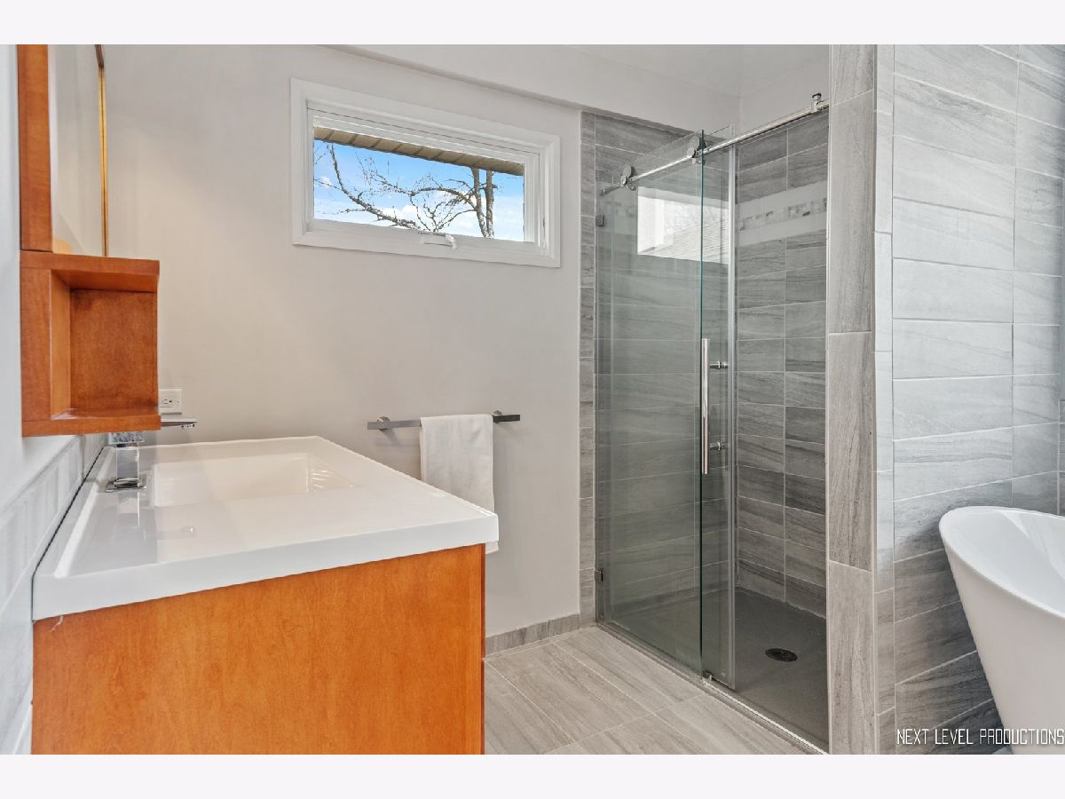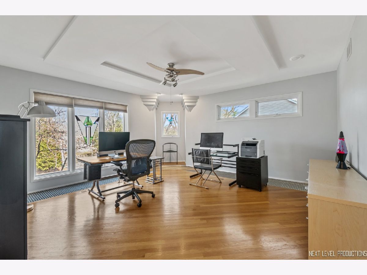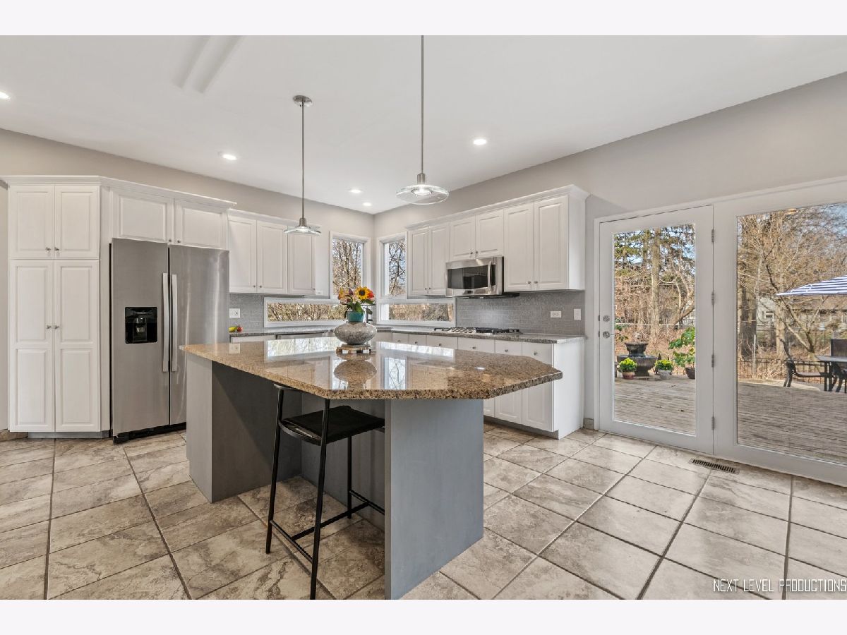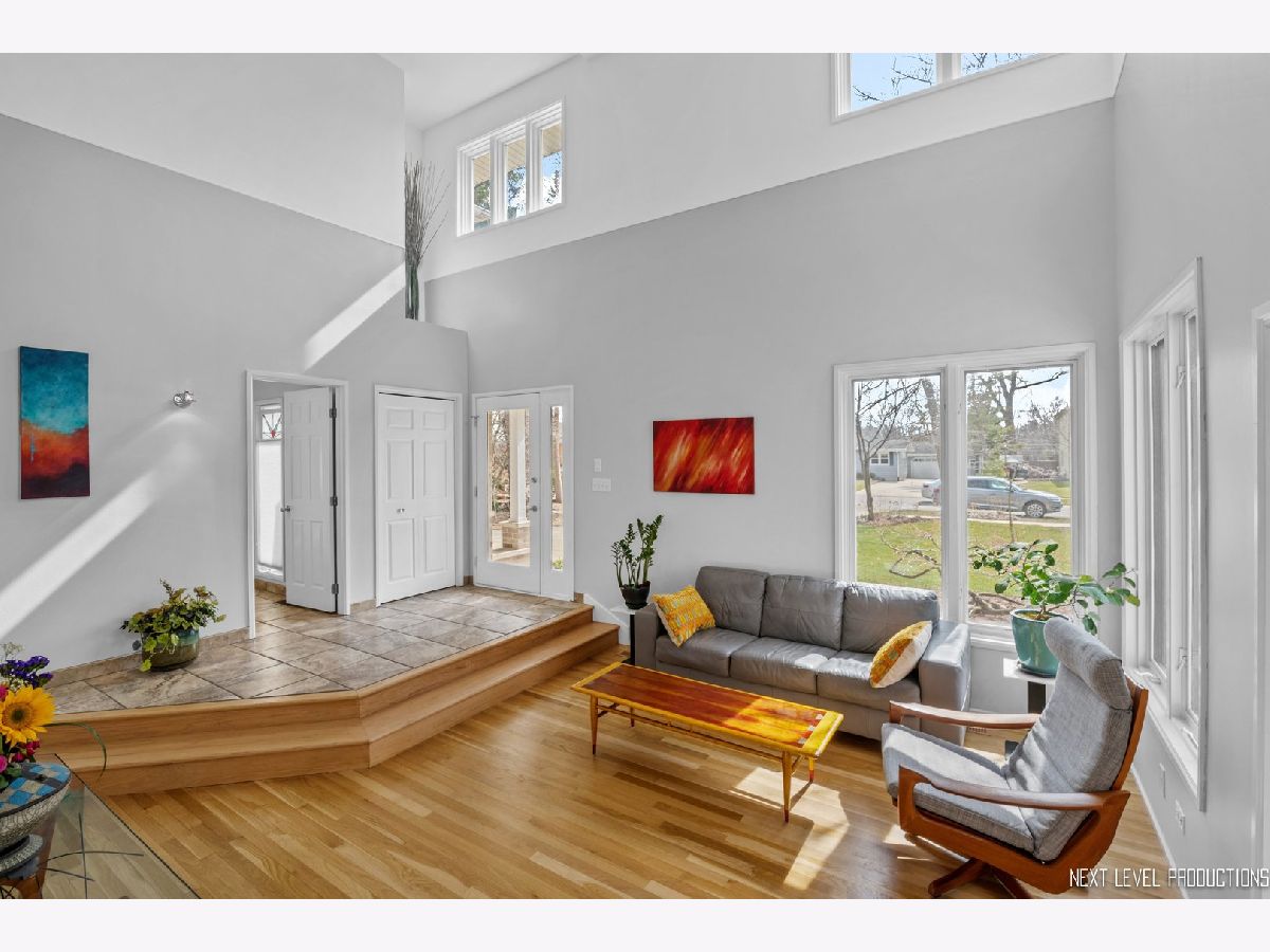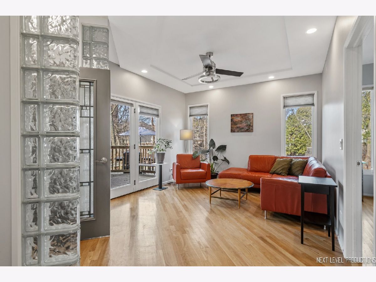 This stunning custom designed contemporary home on a large .38 lot in the heart of Naperville is perfect for multi-generational living with a seamlessly integrated suite added in 2016. The soaring two story entrance and living room are filled with natural light that accentuates the modern staircase leading to the open concept second floor. The kitchen has a large island/breakfast bar with new granite counters through out that complement the beautiful new tile backsplash. The stainless steel appliances including a new cook top and new high end refrigerator are accented by new recessed LED lighting. The kitchen opens into the family room with its custom ceiling and large windows overlooking the deck. Upstairs the large Master bedroom has a sitting area, two walk-in closets, updated bath with separate soaking tub, walk-in shower, and two custom designed soft close vanities. There is a beautiful loft next to the master that can be used for office/den or sitting room featuring floor to ceiling windows with a view to the naturally landscaped backyard. Two more large bedrooms and an updated hall bath provide plenty of living space on the second floor. The in-law suite on the first floor offers a separate wheelchair compliant entrance with outdoor ramp and railing, its own kitchen, full bath with walk-in fully tiled shower, bedroom and a sitting area that opens to the family room on the main floor. The kitchen in the suite features custom soft close cabinets, with two large lazy Susan cabinets, in counter trash bins and a large walk-in pantry. This space has its own ac/heat and sump pump. A great space for in-laws, guests, private home office, in-home learning, or entertaining. There is also plenty of room for entertaining in your formal dining room and large kitchen that opens onto your deck, connecting your outdoor space with the in-law suite so everyone can enjoy the idyllic, fully fenced private backyard with its park like landscaping including witch hazel trees and native plants that bloom year round. The front yard was professionally landscaped in Nov. 2020 and the wood on the outside of the house is freshly stained. The home is newly painted through out with new carpeting in the downstairs rec room and exercise room. New recessed lighting in the entire home, new contemporary fan in entry, new hanging light and track lighting in dining room. Recently refinished wood floors through out the downstairs. Close to downtown Naperville, schools and parks. Dist 203 schools.