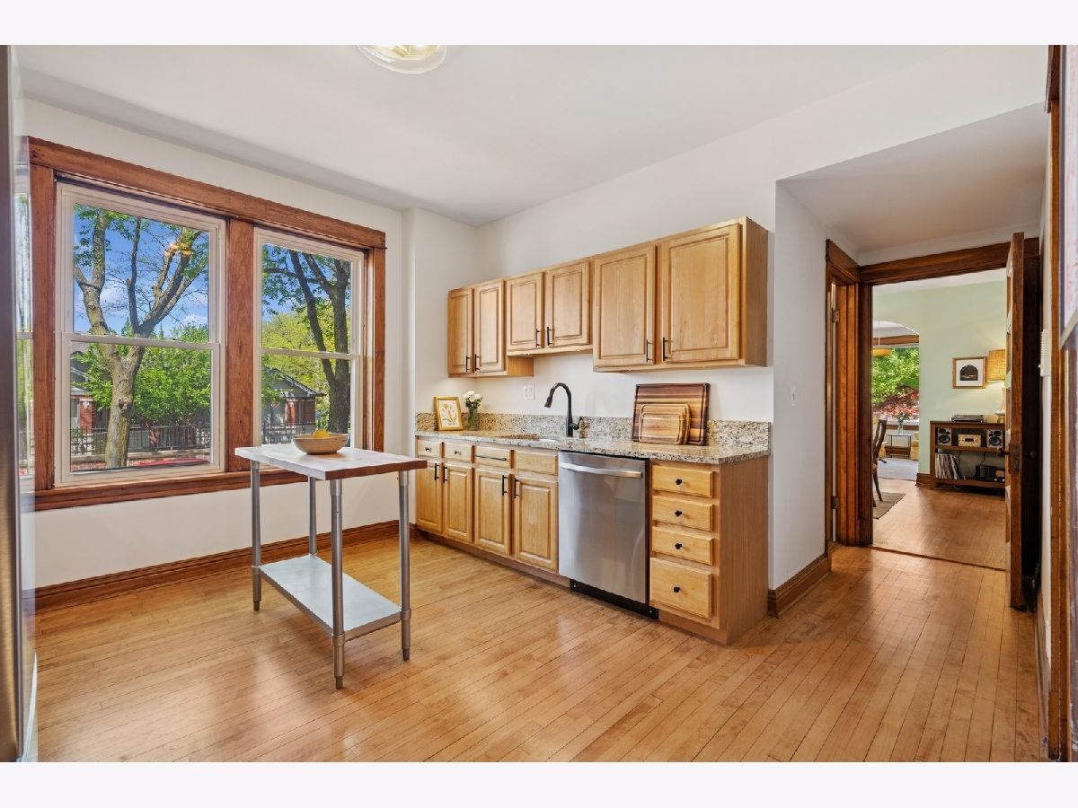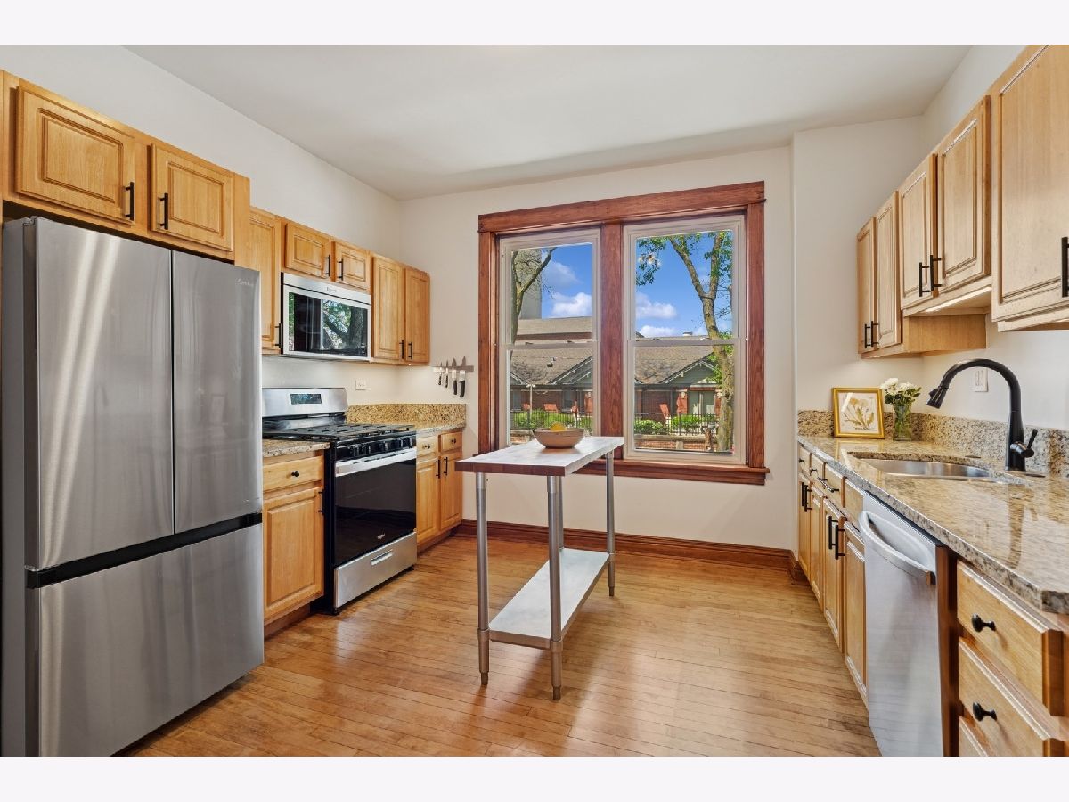 Introducing a residence where timeless charm meets modern comfort. Perfectly positioned on a quiet, tree-lined street in the heart of Ukrainian Village, this beautifully updated 2-bedroom, 1-bath home offers an exceptional lifestyle in one of Chicago's most dynamic neighborhoods. Impeccably presented with fresh, contemporary paint and sunlit interiors, the spacious floor plan is anchored by an elegant living and dining area, enhanced by custom-built-ins, ideal for sophisticated entertaining and cozy nights at home. Rich hardwood floors flow throughout, adding warmth and character to every space. The generous kitchen is thoughtfully appointed with granite countertops, ample cabinetry, new stainless steel kitchen appliances (2024), and an inviting layout. Two well-proportioned bedrooms feature bright windows that bathe the rooms in south-facing natural light. The stylishly updated bathroom boasts modern cabinetry and a soaking tub, creating a serene, welcoming space. Rarely found in the city, the private, appointed patio offers a secluded outdoor retreat-perfect for al fresco dining, morning coffee, or relaxing with friends in front of the fire-pit. A large storage area is off the back door for bikes and other items. Additional highlights include in-unit washer/dryer, abundant storage, central heat/AC, and easy street parking. Located just moments from acclaimed restaurants, eclectic boutiques, and vibrant Division Street and Chicago Avenue nightlife, this home is the perfect blend of elegance, convenience, and understated urban luxury.