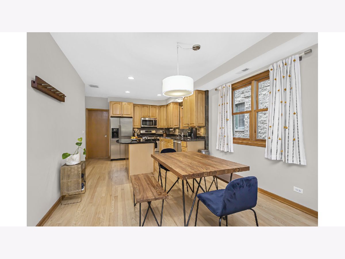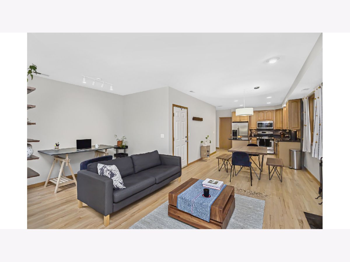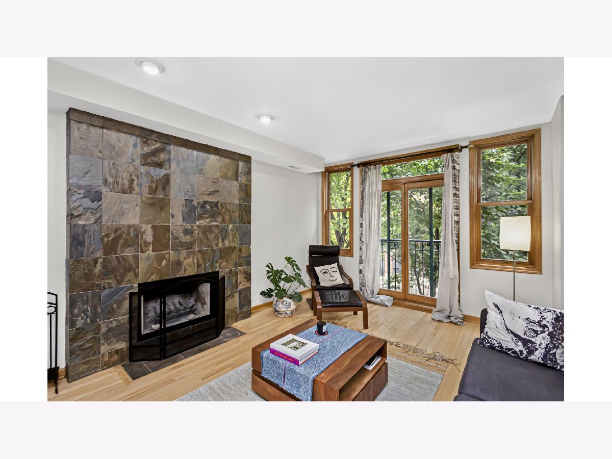 **Very Motivated Sellers - $5,000 Closing Cost Credit is still being offered to the buyers to buy the rate down or use the credit as they choose.** Fantastic opportunity to own an extremely well maintained (2 bed / 2 bath Condo) on this Beautifully Tree Lined street of Marshfield Ave. The Condo is just steps to Division and the Blue Line in Wicker Park/ East Village! As you enter the Condo you will notice the Pristine Maple Hardwood floors throughout. The Kitchen has Raised panel Maple cabinetry, Beautiful Ubatuba Granite Counter Tops with an Island with space enough for 3 barstools that's complimented with an All Stainless Steel Appliance package. Please pay attention to the Stylish Floor to ceiling slate fireplace surround and the nice little Work Nook/Den behind that space. The Master Ensuite is larger than most at 16'x12' and has New carpeting, A New Vanity with Quartz counters along with a doorway to your own private deck... (( The deck is also accessible from the side hallway so guests are not traipsing through your Master Bedroom. )) Some noteworthy new updates are as follows: Phillips Hue lighting mostly throughout the condo, The Condo was Freshly Painted in August 2023, Hardwood floors just refinished August 2023. Brand New Carpeting in both bedrooms August 2023, Brand new Vanities in both bathrooms with Quartz counter tops August 2023 and a Newer "Nest" Thermostat and Smoke/Fire detector. (IN UNIT WASHER & DRYER 2020). ((PLEASE NOTE AGAIN: The Condo has a Large Deck accessible from the Exterior Hallway & The Master bedroom)). Lastly you have your own private storage unit along with (1) detached garage parking space included. FYI: (The Washer & Dryer, Furnace, AC and Humidifier are ALL from 2020). TONS OF ENTERTAINMENT IN THE WICKER PARK/ EAST VILLAGE AREA! There's many Parks & Recreation nearby and all within walking distance too! Close proximity to 90/94 or 290. Walk to Blue Line, Bus lines are within a block or two, Super close Division's shopping Nightlife and dining... **Motivated Sellers - $5,000 Closing Cost Credit is still being offered to buyers to buy the rate down or use the credit as they choose.**