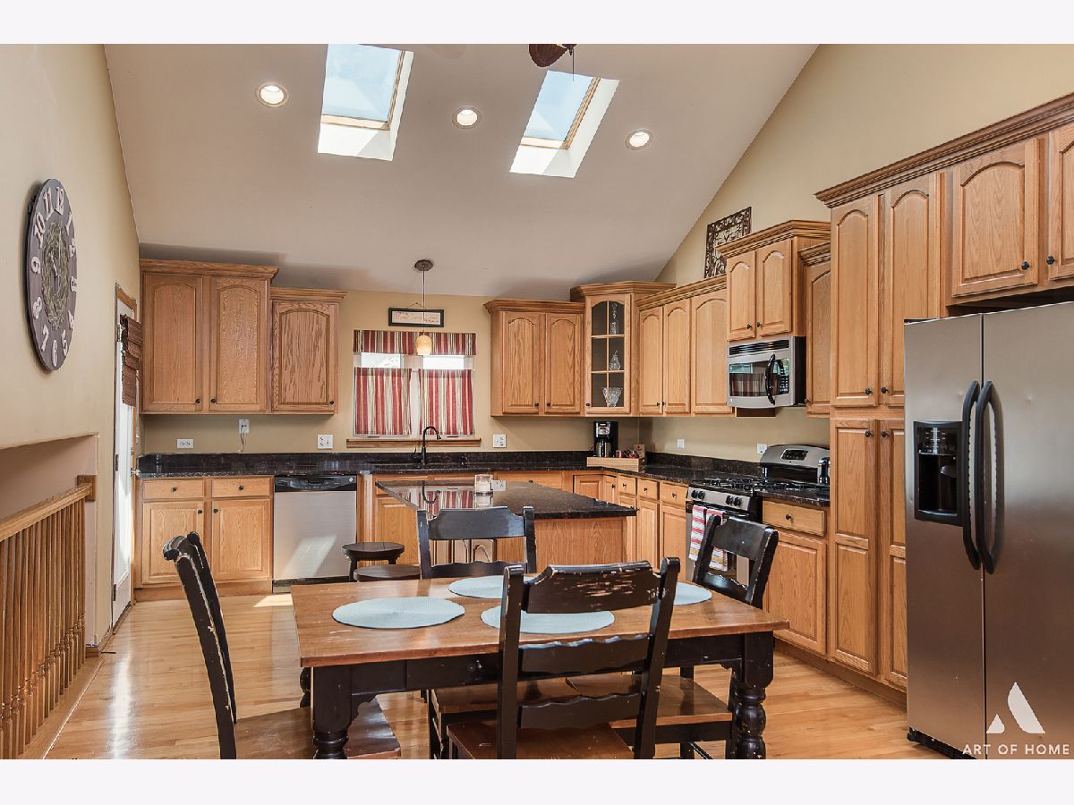 FHA/VA loans welcome. One owner, well maintained & exceptionally cared for 4 bed 3 bath newer split quad level located in Chicago Ridge-Worth Schools. Pride of ownership w/nothing to do but move in. Natural tones, cathedral & raised ceilings and timeless woodwork make this home very elegant. Entertain in this open layout concept home in which living, dining & kitchen are located on main level while majority of bedrooms are located on upper level. Eat in kitchen is equipped w/solid wood cabinets, stylish granite countertops (lots of counter space) , SS appliances, recessed lighting & skylight bringing in natural light. Enough of room for a breakfast table space also! Lower level features family room with easy to maintain gas fireplace, decorative accent wall, recessed lighting & one more bedroom & bath, making for an extra bedroom, good related living arrangement if needed or a terrific office/guest bedroom space. All bedrooms are a good size w/spacious closets. Master en suite w/full bath with double sink, granite counters and glass shower door surrounding detailed tiled shower enclosure. Other bathrooms feature soaking tub, tiled shower with a glass door, solid wood cabinets & granite counter tops. Attached 2 car garage w/additional driveway parking space. Fully fenced in backyard w/side patio conveniently leading to kitchen area. Buyers can finish basement as they please or ultilize it as additional storage. Minutes from Metra Station, Highway Access, Restaurants & Shopping.