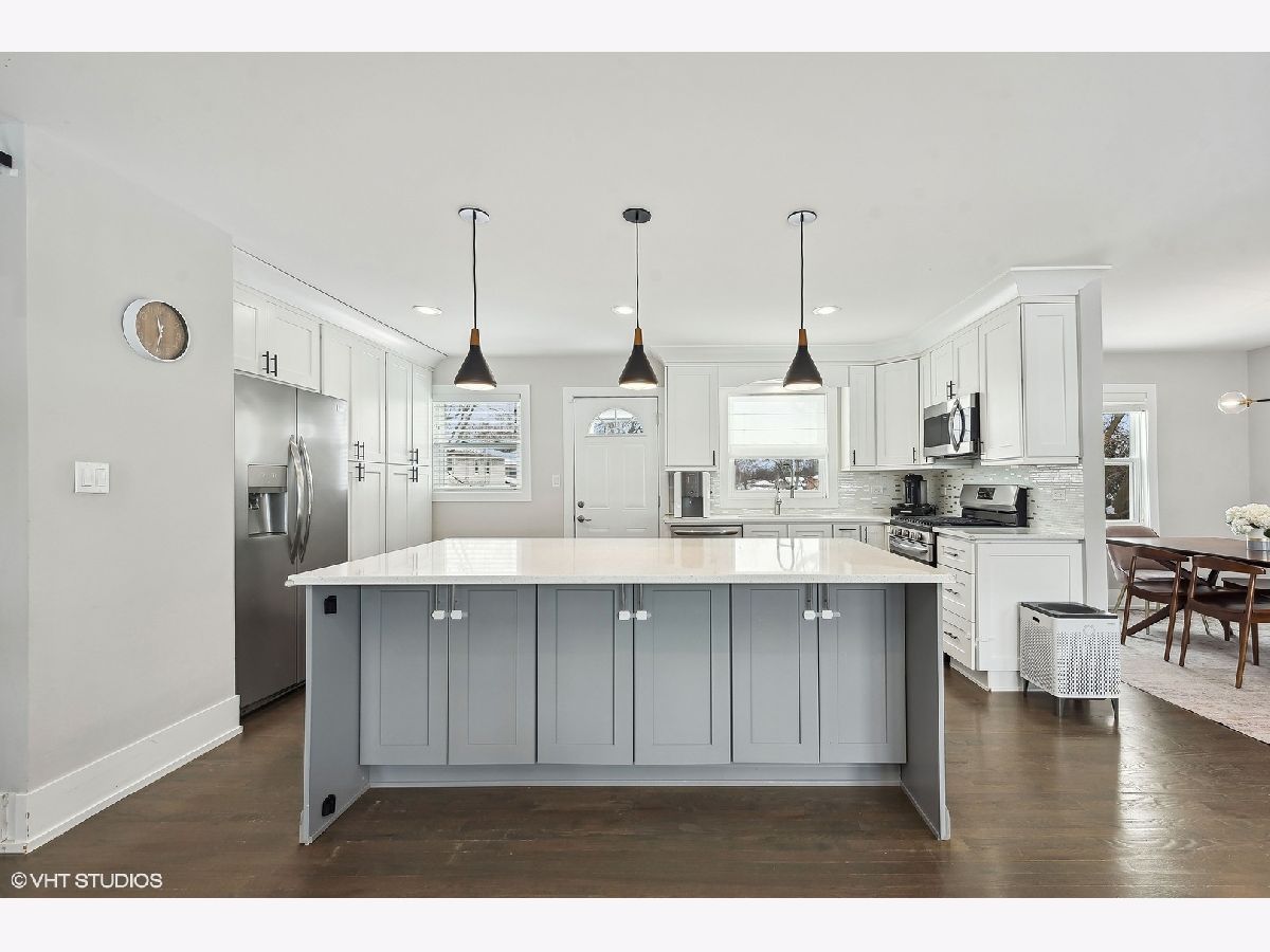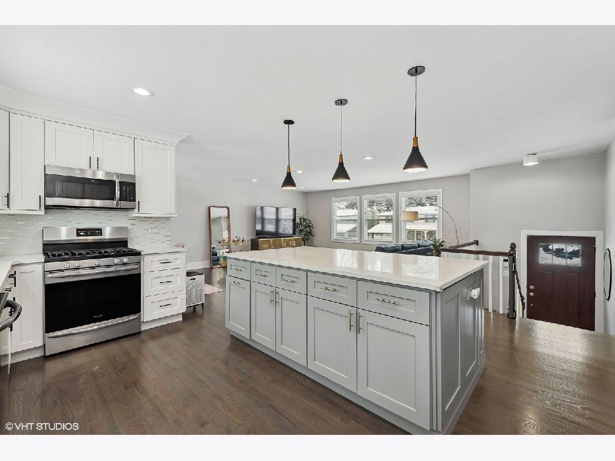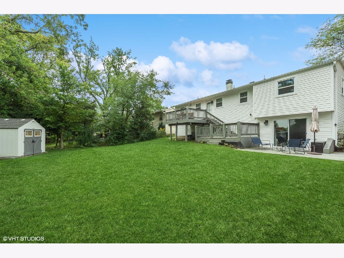 Gorgeous move-in ready 4 bedroom, 2 bathroom home with walkout basement located in desirable Cambridge of Buffalo Grove boasts updates galore! Exterior upgrades completed within the last few years include new roof, siding, windows, doors, lighting, stained deck, regraded backyard, & landscaping. The open concept main level with stunning hardwood floors is a showstopper and great for entertaining! You will enjoy cooking in the gorgeous renovated kitchen which offers white shaker cabinets accented with black hardware and crown molding, contrasting island with storage on both sides and seating, pendant lighting, sleek quartz countertops, tile backsplash, & stainless steel appliances. The beautiful dining room features a modern chandelier and flows into the inviting living room with a wall of windows and recessed lights. A sliding barn door separates the living area from the bedroom area for privacy. Completing the main level are two spacious bedrooms and the primary bedroom with a luxurious updated ensuite. The highlights of the ensuite are a double vanity with quartz countertops, porcelain tile floors, and bathtub with arabesque tile surround and niches. Head downstairs you will find the 4th bedroom and renovated full bathroom featuring a shower with subway tile and glass frameless shower door. Down the hall is the large recreation room, perfect for relaxing, watching a movie, or playing! Rounding out the lower level is the refreshed laundry room with cabinets, quartz countertop, sink, and front load washer and dryer. The multi-tiered deck is great for outdoor entertaining and dining, and overlooks the serene backyard with fun playset. Water heater, appliances, and HVAC ~ 5 YEARS. Conveniently located near schools, parks, retail, restaurants, and transportation. Check out the 3D tour and make your appointment today! Welcome home!