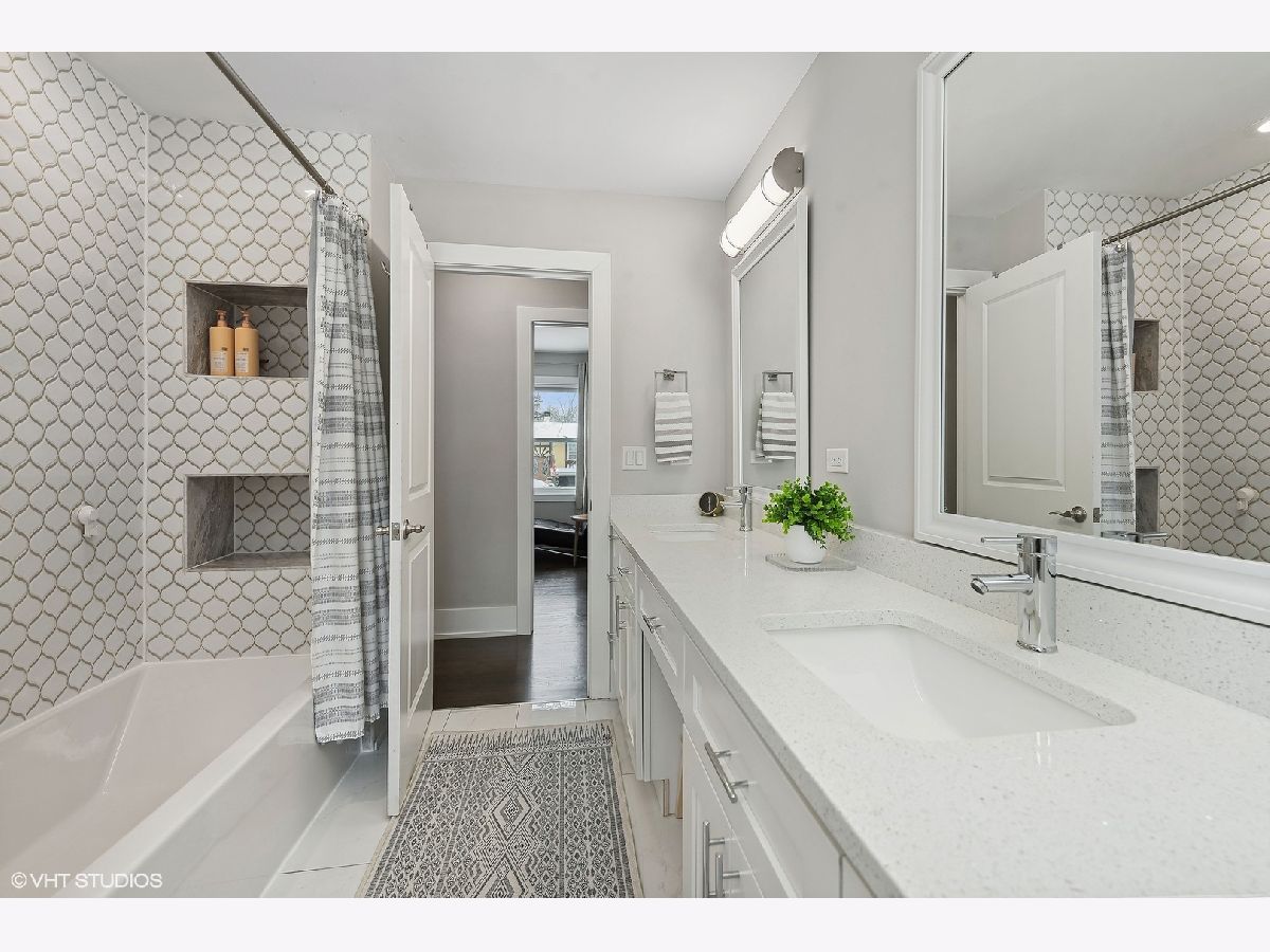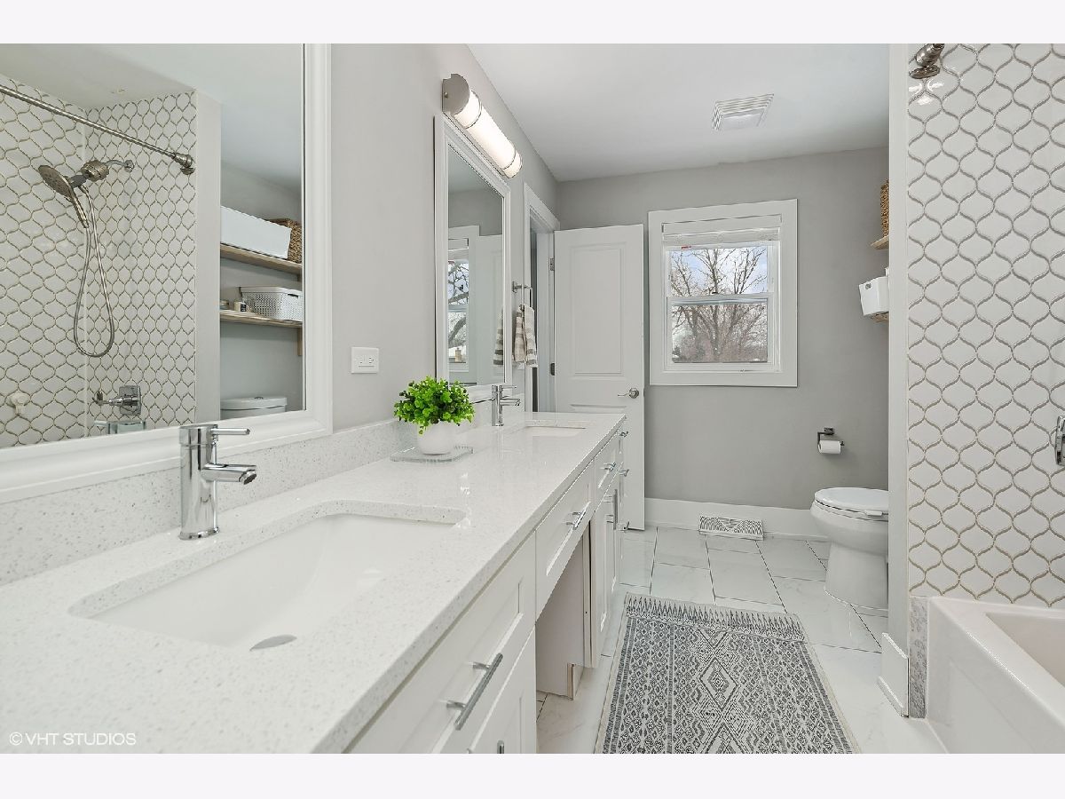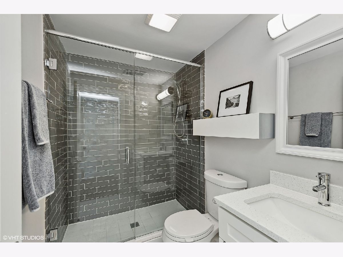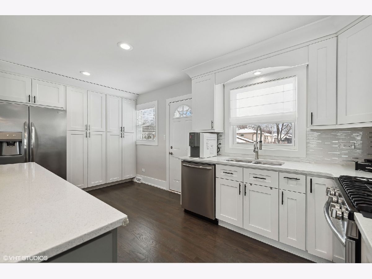 Gorgeous move-in ready 4 bedroom, 2 bathroom home with walkout basement located in desirable Cambridge of Buffalo Grove boasts updates galore! Exterior upgrades completed within the last few years include new roof, siding, windows, doors, lighting, stained deck, regraded backyard, & landscaping. The open concept main level with stunning hardwood floors is a showstopper and great for entertaining! You will enjoy cooking in the gorgeous renovated kitchen which offers white shaker cabinets accented with black hardware and crown molding, contrasting island with storage on both sides and seating, pendant lighting, sleek quartz countertops, tile backsplash, & stainless steel appliances. The beautiful dining room features a modern chandelier and flows into the inviting living room with a wall of windows and recessed lights. A sliding barn door separates the living area from the bedroom area for privacy. Completing the main level are two spacious bedrooms and the primary bedroom with a luxurious updated ensuite. The highlights of the ensuite are a double vanity with quartz countertops, porcelain tile floors, and bathtub with arabesque tile surround and niches. Head downstairs you will find the 4th bedroom and renovated full bathroom featuring a shower with subway tile and glass frameless shower door. Down the hall is the large recreation room, perfect for relaxing, watching a movie, or playing! Rounding out the lower level is the refreshed laundry room with cabinets, quartz countertop, sink, and front load washer and dryer. The multi-tiered deck is great for outdoor entertaining and dining, and overlooks the serene backyard with fun playset. Water heater, appliances, and HVAC ~ 5 YEARS. Conveniently located near schools, parks, retail, restaurants, and transportation. Check out the 3D tour and make your appointment today! Welcome home!