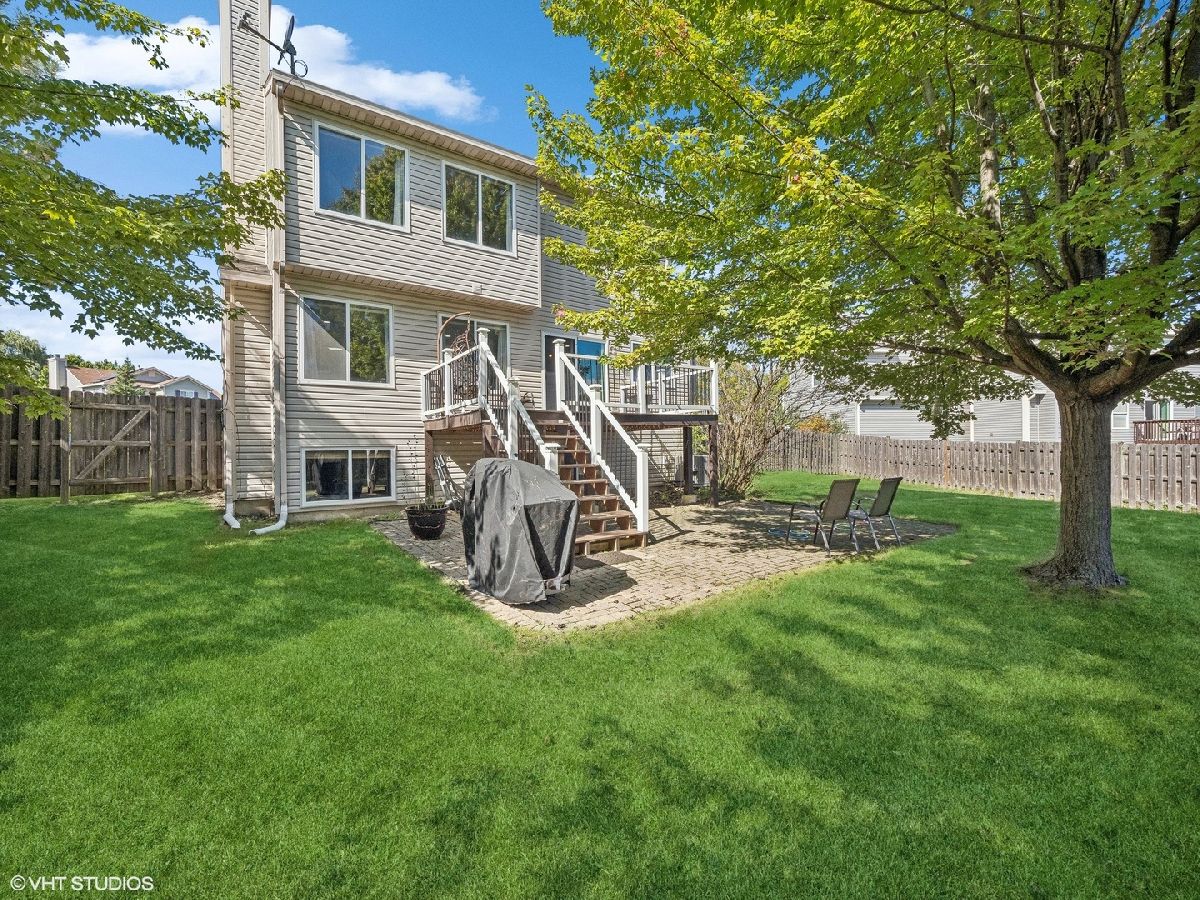 Welcome to 1059 Wrens Gate in Mundelein! This stunning two-story home is located in the highly desirable Longmeadow subdivision, offering the perfect blend of elegance and modern living. As you step inside, you'll be greeted by a grand foyer with vaulted ceilings, creating a spacious and inviting atmosphere. The home boasts three generously sized bedrooms, including a luxurious master suite complete with walk-in closets and an updated en-suite bathroom. With two additional full bathrooms and a convenient powder room, this home is designed for comfort and functionality. The kitchen features gorgeous quartz countertops, stainless steel appliances , and a bright eat-in area perfect for casual dining. Adjacent to the kitchen is a formal dining room with plenty of natural light, ideal for hosting dinner parties. The living room offers a cozy fireplace, built-in storage, and double French doors leading to a versatile office or den space. The fenced-in backyard, complete with a patio, provides a private oasis for outdoor entertaining. The fully finished basement is lot of extra space, home theater for your entertainment needs. Recent upgrades include , new HVAC system (2021), smart garage door (2017), new water heater (2016), and a beautifully renovated kitchen with quartz countertops (2021) New deck (2023) New roof and siding (2011) Located close to parks, shopping, dining, the Metra, and major highways, this home is a must-see for anyone seeking charm, comfort, and convenience in Mundelein!
