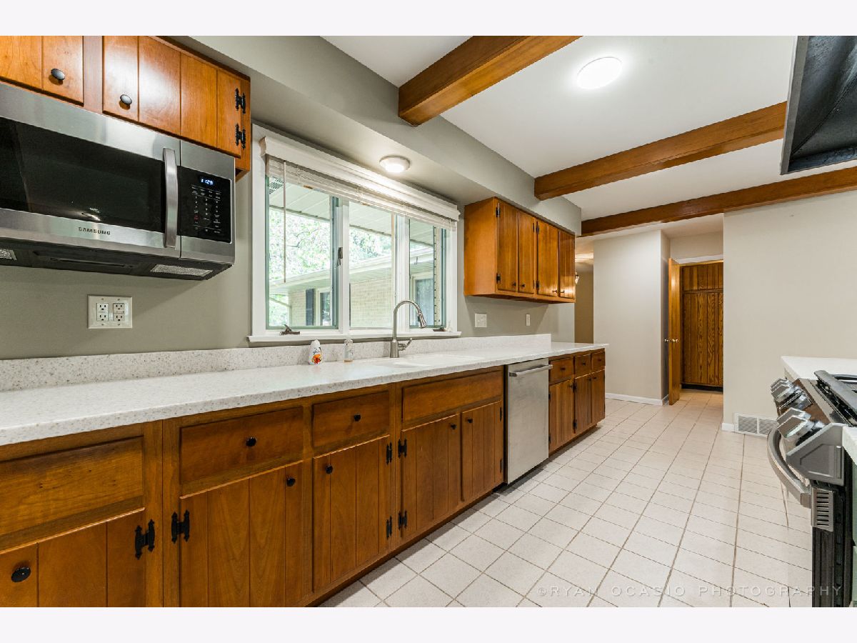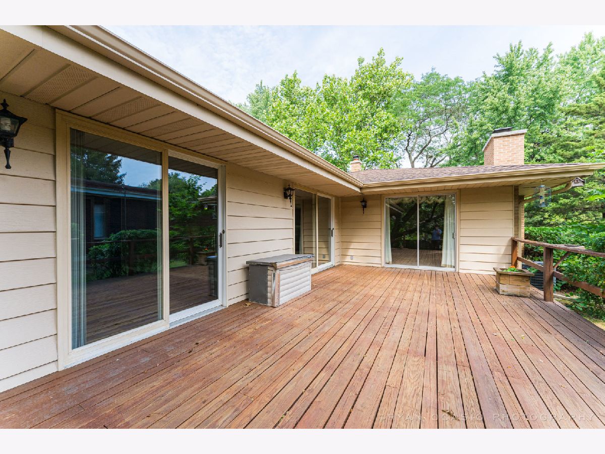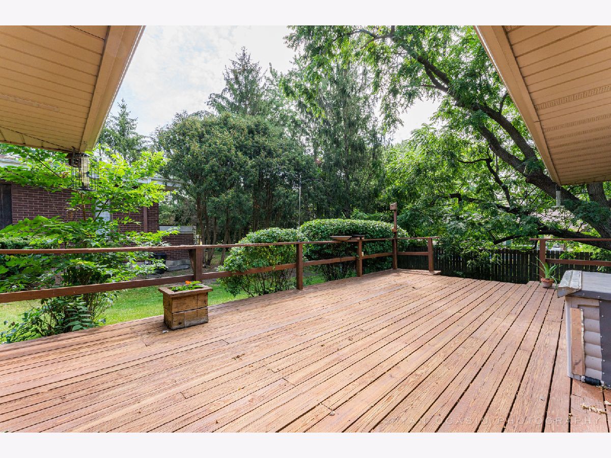 Lovely 4 bedroom 2.5 bath all brick ranch home situated on beautiful lot with mature trees. Home features updated kitchen with stainless steel appliances, new island with cooktop stove with new updated went, many cabinets in long spacious new countertop, a kitchen fireplace that open on to screened porch. The second fireplace is in the family room. The newly updated master bedroom and attached bathroom are at one end of the home separated from the other 3 bedroom with hardwood floors and another full bath. The large dining room/sitting area opens on to a large deck great for entertaining. Full unfinished very dry basement with two back up sump pump system and 2 car attached garage with workbench.