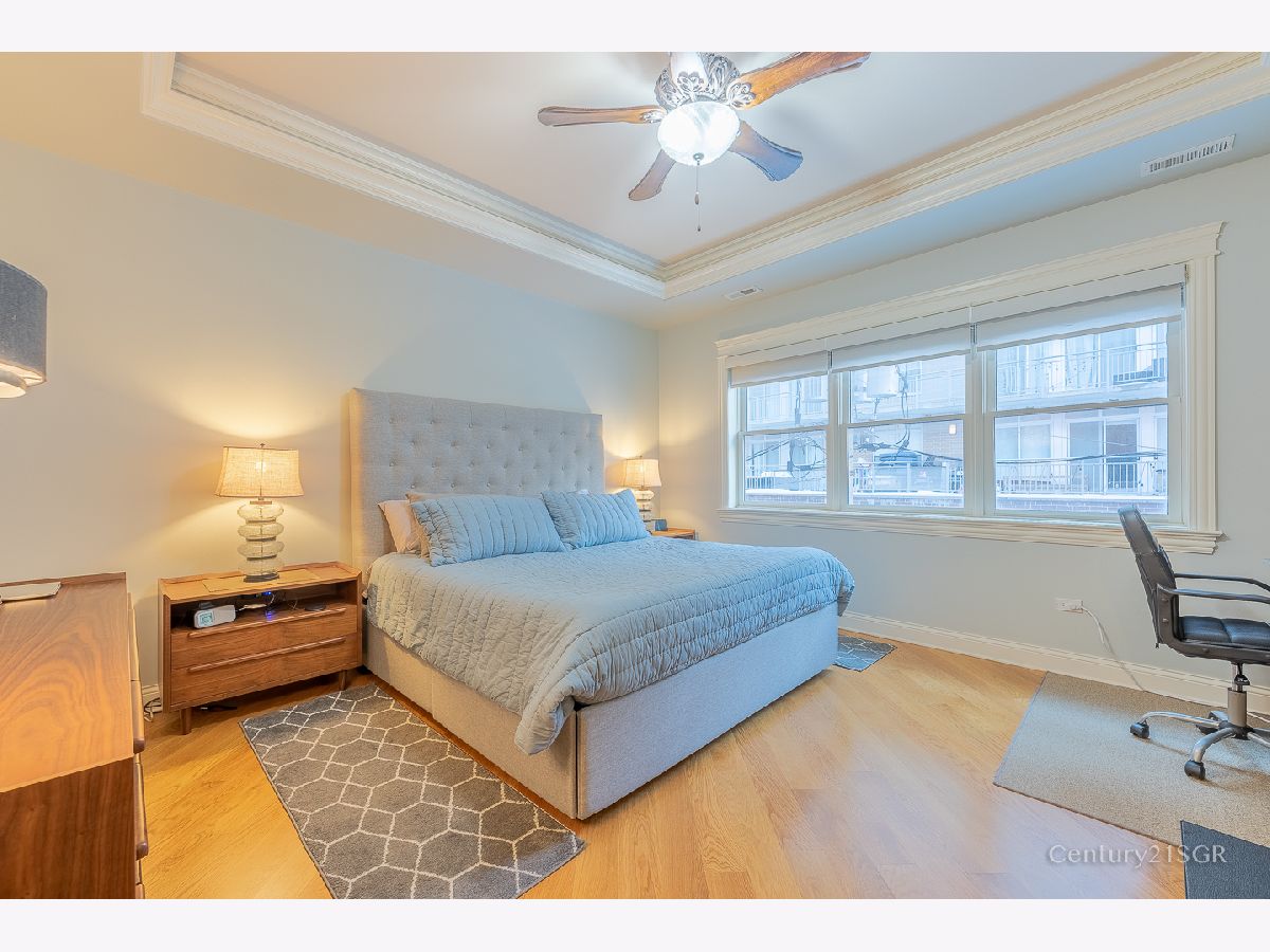 Absolutely pristine 3 bed/2 bath condo overlooking Mary Bartelme Park with east facing skyline views. Exceptionally maintained and appointed with recently refinished wide plank hardwood floors throughout, fireplace, recessed lighting, large balcony, and crown moldings. Chef's kitchen with Viking, GE Monogram, Bosch, 54 in. cabinets, granite countertops, above/under cabinet lighting, and pot filler. Luxurious master suite with tray ceiling, large windows, huge walk-in closet, dual vanity, separate shower/tub, body sprays, frameless glass doors, and radiant heated marble floors. In ceiling speakers with NuVo stereo system and indoor parking space included. Mary Bartelme Park at your doorstep and just a few steps to Madison Row, Mariano's, Whole Foods, Starbucks, Soho House, Greektown, Loop, and the Fulton Market District. Skinner West school district. Highly desirable 2nd floor unit in a boutique 8 unit walk-up building.