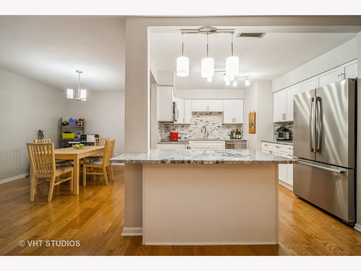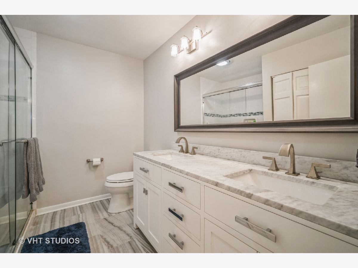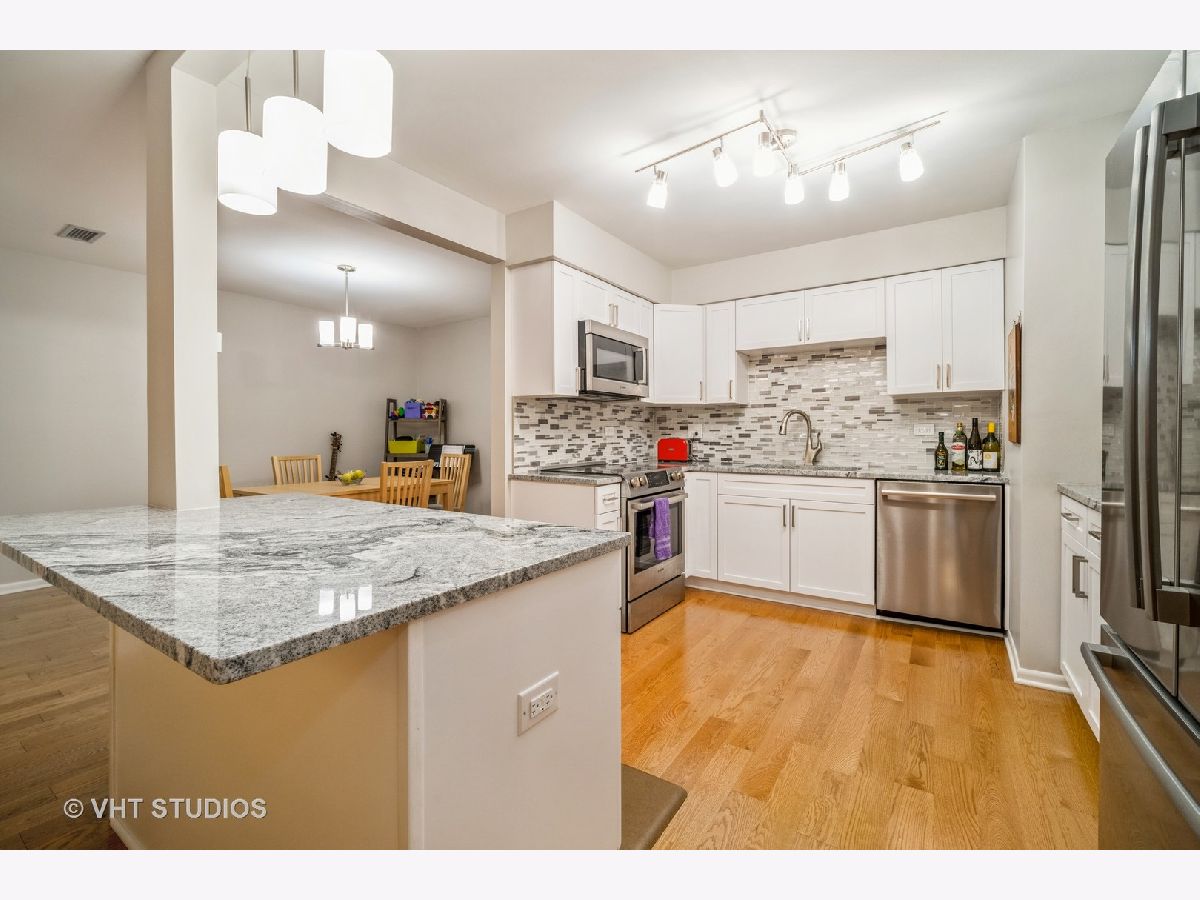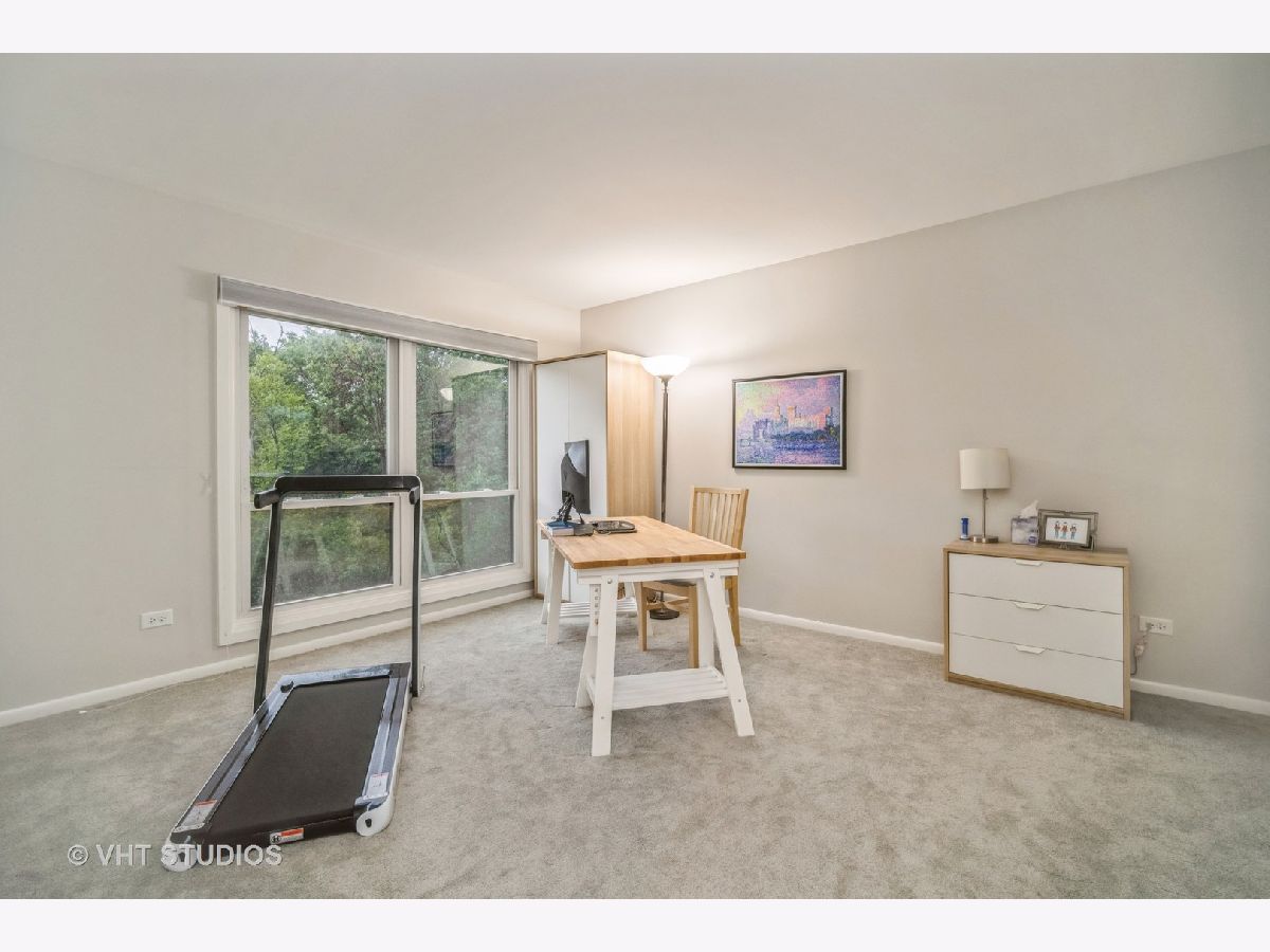 It's like living in a tree-house! Third floor, 2 bedroom, 2 bath corner unit with North and East exposures facing the forest preserve. Open floor plan. Beautifully renovated throughout in 2019. Kitchen includes new S/S appliances and granite counters opening to living and dining rooms with new flooring. Large primary bedroom with two closets and en-suite bath. Both bathrooms have double sink vanities and new ceramic tile flooring. Gas fireplace surrounded by floor to ceiling brick. In-unit laundry room. New AC 2021. TWO parking spaces in the heated garage. Additional storage on 3rd floor right outside of the unit. Outdoor pool. Walk to restaurants, shops and train station in downtown Northbrook. Easy access to 94 and 294.