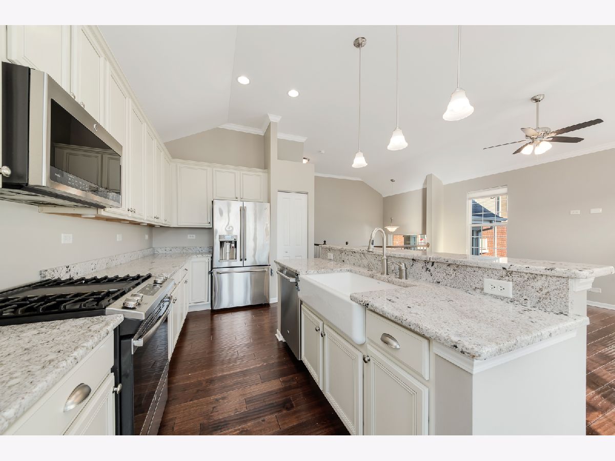 Located in the Sheffield Square neighborhood, this beautiful two-story end unit townhome spared no expense with upgrades! Features 3 bedrooms, all with walk-in closets and 3 full bathrooms, luxury master suite with soaker tub and separate walk-in shower with tile to the ceiling, master bedroom with volume ceiling. Beautiful hardwood flooring with an open floor plan. Kitchen features a large working space with granite countertops, 42" soft close cabinets with crown molding and soft close cabinet drawers, all stainless steel appliances, counter depth fridge, designer backsplash, and walk-in pantry. Full basement with full bathroom. All within walking distance to the Metra Train Station, Centennial Park & the Aquatic Center. Don't forget how close the property is to shopping, schools & restaurants.