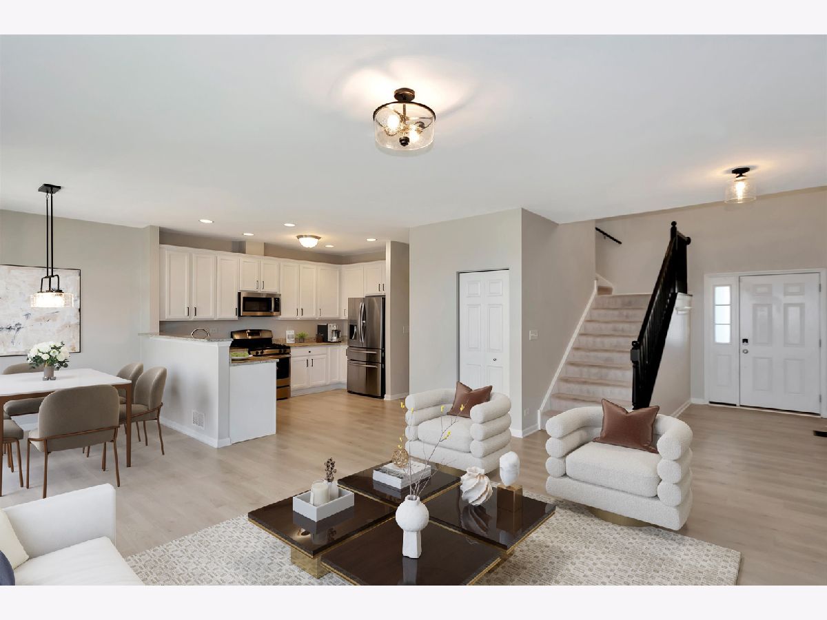 Welcome to Sheffield Square in Orland Park! This stunning townhome offers 3 bedrooms, 2.5 bathrooms, attached 2 car garage complete with 220 charging for your EV and tons of potential in the full unfinished basement. Built in 2016, this home has been lovingly maintained and recently updated with modern touches. The inviting main level is home to living room, dining room, kitchen, powder room and laundry. You'll immediately notice the updated flooring ('23), refreshed kitchen cabinets ('23) and light fixtures ('22), stainless steel appliances, and granite counter tops over an open concept floor plan. Head upstairs to find 3 generous sized bedrooms. The primary suite has a tray ceiling, huge walk-in closet and ensuite bath complete with dual vanity, soaker tub and separate stand-up shower. Many of the major appliances have been updated recently including dishwasher '21, washing machine '22, Air Conditioner '23 and microwave '24 leaving you with peace of mind. Located in the heart of Orland Park, this townhome is nestled in highly regarded school districts 135 and 230. Surrounded by Centennial Park, Crystal Tree Country Club and just steps from shopping, dining, entertainment and the 153rd St Metra station for a quick city commute.