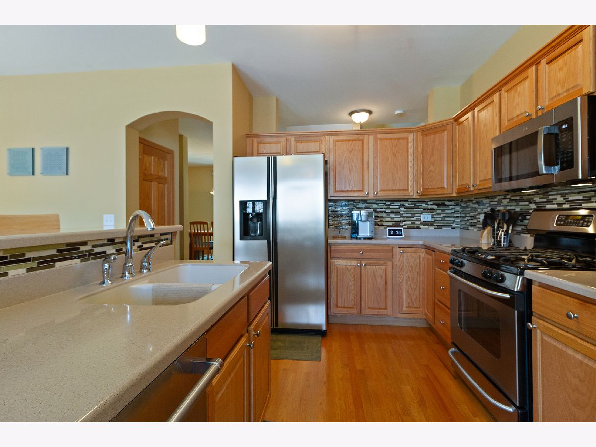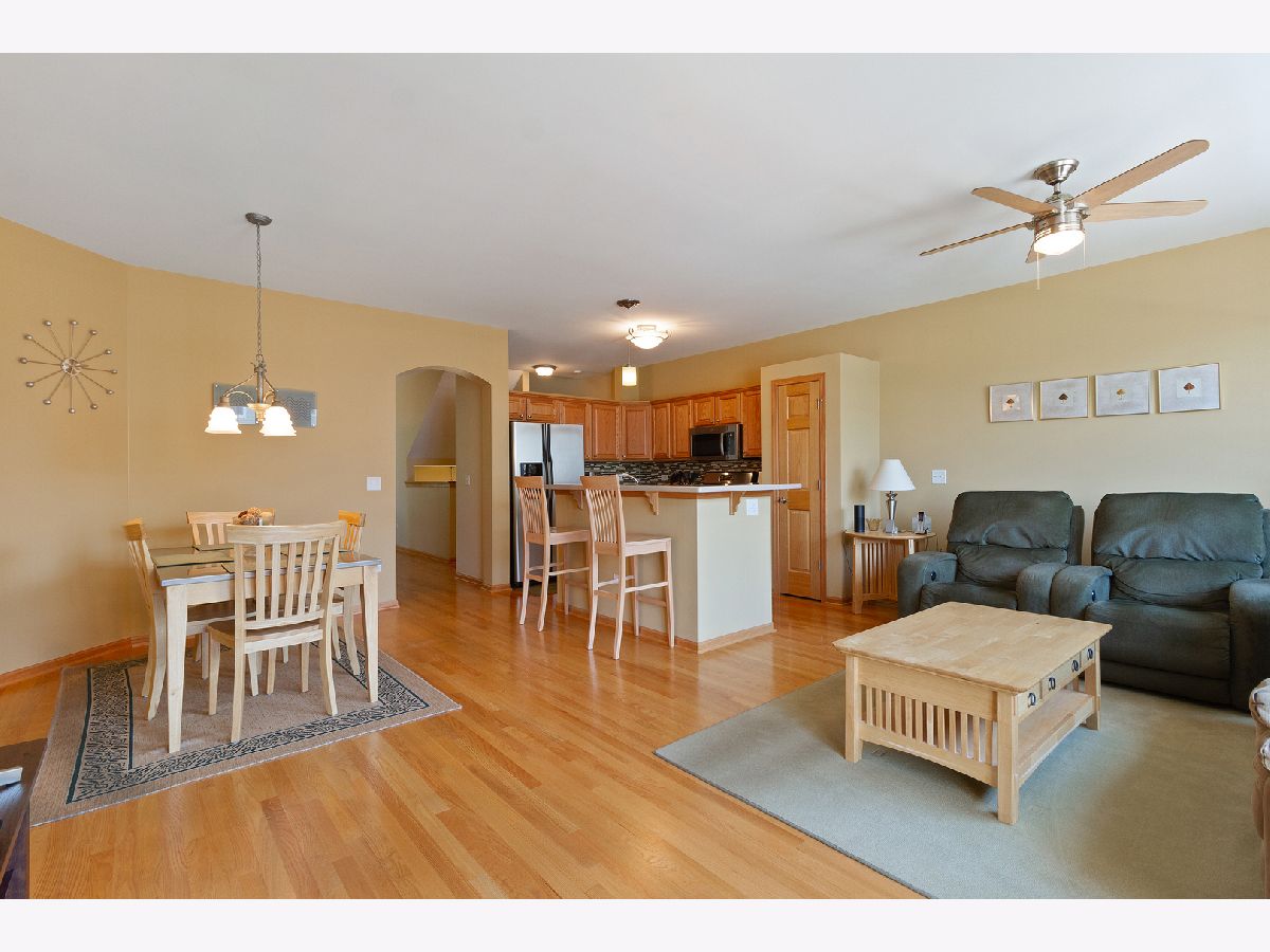 Absolutely impeccable & sleek 3BR/2.1BA townhome w/perfect pond view in Orland Park's Colette Highlands. This original-owner-home simply shines with neatness & taste! Start w/all-hardwood floors & 9ft ceiling main level: 20ft eat-in kitchen w/pub-height island breakfast bar, stainless steel appliances, Corian counters, pendant lighting & stunning glass tile backsplash. Kitchen leads to 20ft family room with sliding doors to 17ft maintenance-free balcony for BBQ dining. Arched entryway brings you to an elegant formal dining room. 2nd floor boasts the 3 bedrooms: a vaulted master suite with walk-in closet, jacuzzi tub & separate shower & 2 additional bedrooms, all 3 with bi-directional shades. Walkout lower level offers the utility/laundry room as well as the office/bonus room w/English windows looking out to the pond. 2.5-car attached garage. The 6-panel hardwood doors throughout & newer Ecobee smart thermostat add to this phenomenal unit! 1-minute walk to park and minutes away from Orland's shopping & restaurants. Great townhome ready to go!
