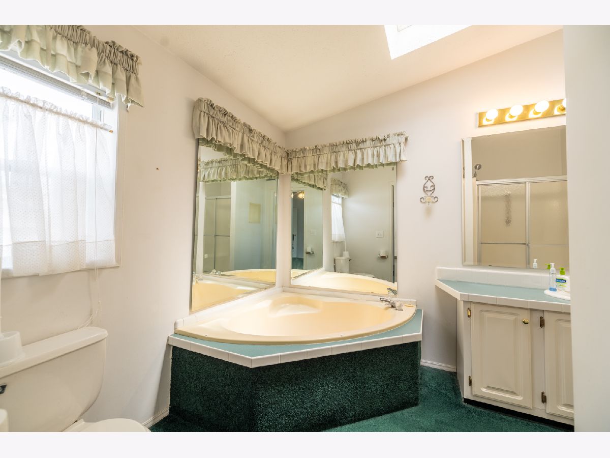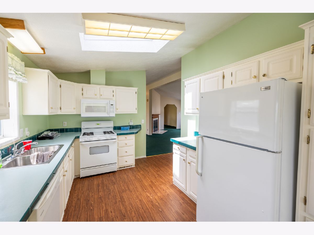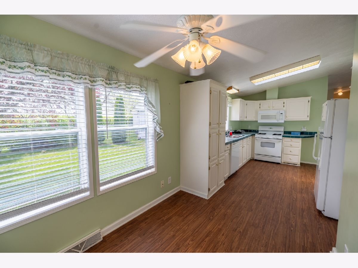 Discover serene living in the coveted Oak Ridge community of Manteno. This charming 2-bedroom, 2-bathroom home boasts a spacious 2.5-car garage and an inviting open floor plan. Relax by the fireplace in the expansive living room, which flows seamlessly into a sunlit dining area, perfect for entertaining. The kitchen dazzles with solid surface countertops, pristine white cabinetry, and includes all appliances for your convenience. Skylights in the eat-in kitchen area add a touch of elegance, while the large laundry room comes equipped with washer and dryer. Benefit from the versatility of a bonus room, ideal for an office, additional sitting area, or a potential third bedroom. Retreat to the generous master bedroom with an en suite bath. Freshly cleaned carpets add to the move-in readiness of this well-maintained home. Embrace comfort and style - schedule your private showing and make this delightful house your new home today!