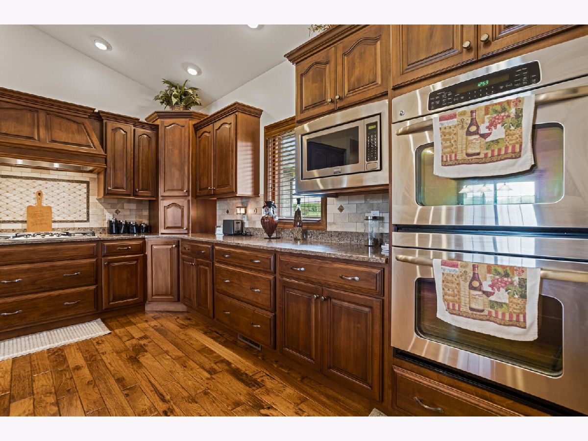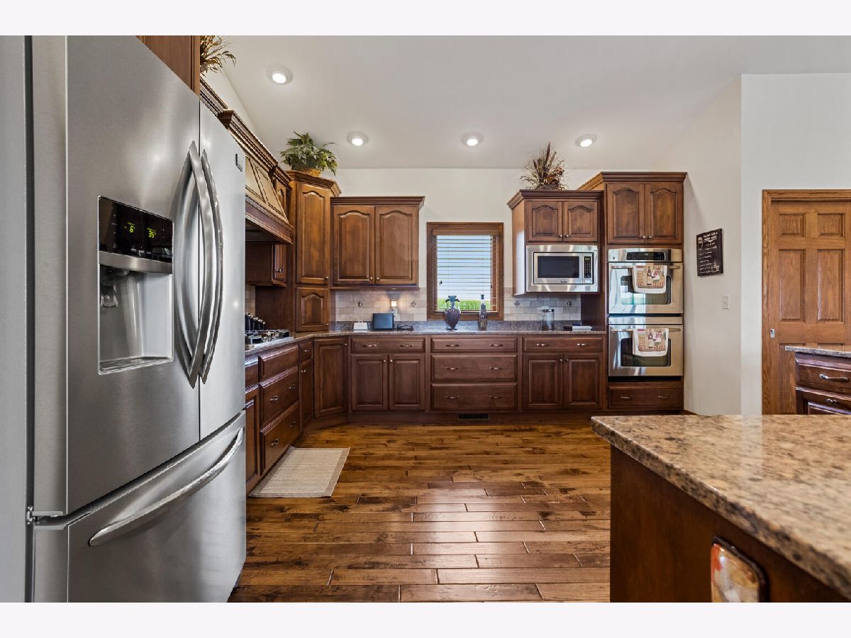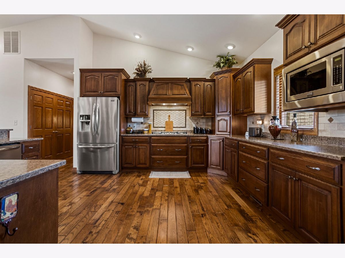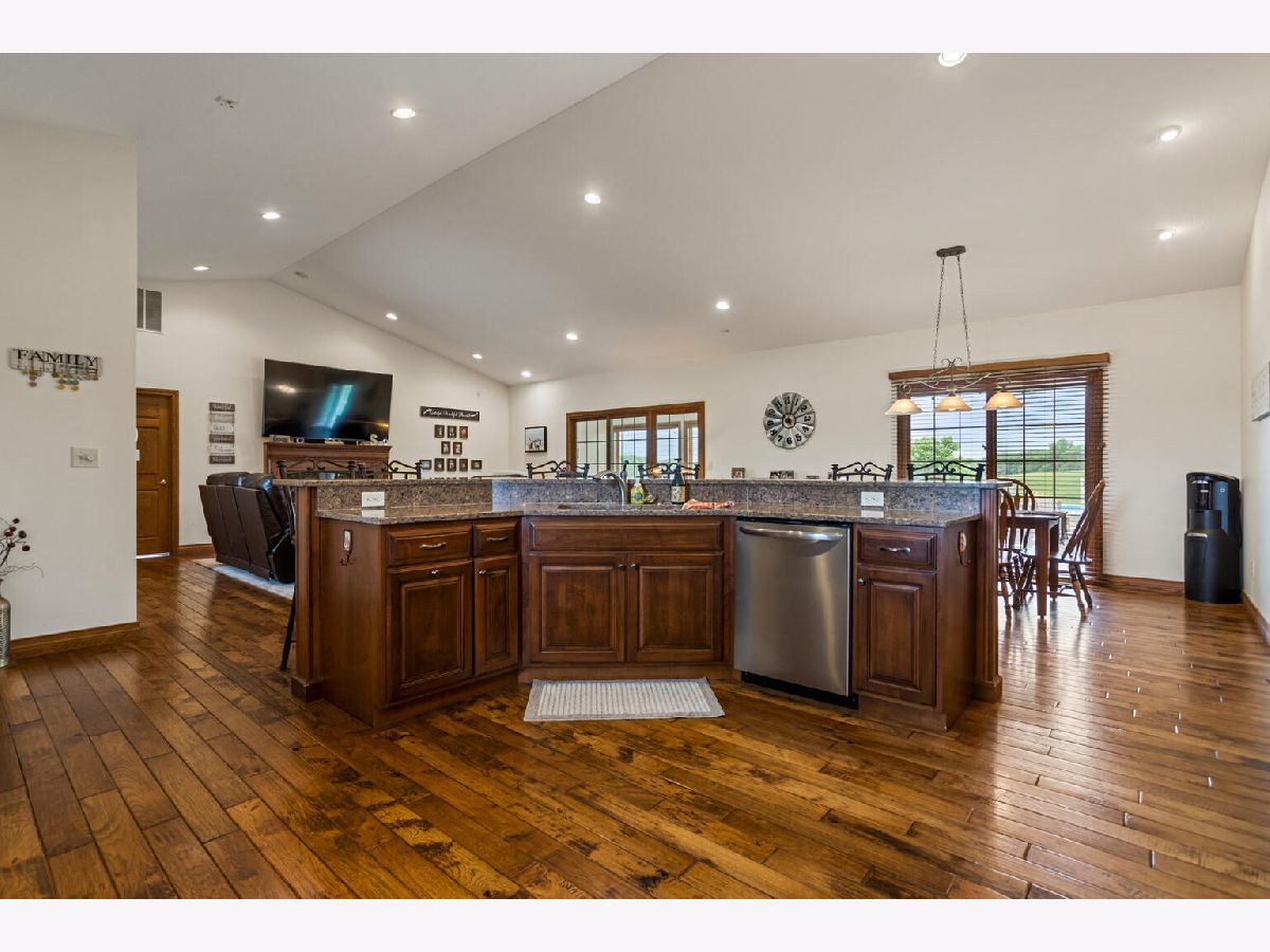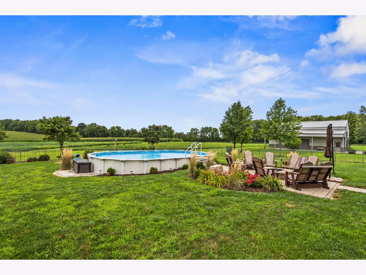 Amazing home in a quiet rural setting. This pristine home sits on 3.59 Acres with a large 45x 60 out building. This is a custom built home with a main level primary en-suite with soak tub and separate shower and double sinks, gorgeous hickory hardwood floors, hidden pocket doors and an abundance of storage. All Season Room with Southern Exposure & Covered Porch. Gas Log Fireplace & The finished basement with 9' ceilings offers 2 additional bedrooms, full bath, family room and huge storage area. The private lane is double thickness for extra durability with farm equipment. This home has an upscale kitchen, custom Amish cabinetry by Miller Holzwerk Cabinets. and tons of upgrades and throughout. Primary bathroom has heated floors, the home has a 17KW Generac Automatic Generator, Geothermal heating, upgraded Marvin Windows with Magnetic Screens. Professionally landscaped yard is amazing! There is a portion of the backyard that is fenced with a covered porch and new pavers added around the pool.