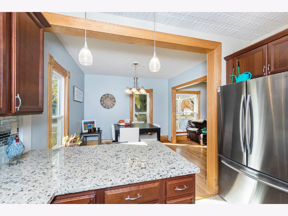WOW! Completely updated 1.5 story home on corner lot! Just move in to this two-bedroom, 1.5-bathroom, charmer. The kitchen includes granite countertops, solid wood cabinets, glass tile backsplash and stainless appliances! The open concept with the dining area and living room is very attractive. More to like with a 15' x 16' family room with fireplace. The natural wood trim and hardwood flooring has been restored. The upper level has two bedrooms, walk-in closet and a full bathroom with a separate tub/shower and double sink. There is a full basement that includes a laundry room, exercise room and plenty of space for storage. The outside space is as nice as the indoor space with a wraparound front porch, attached garage and partially fenced, corner lot. Don't miss your chance to view this 'Classic' older home!