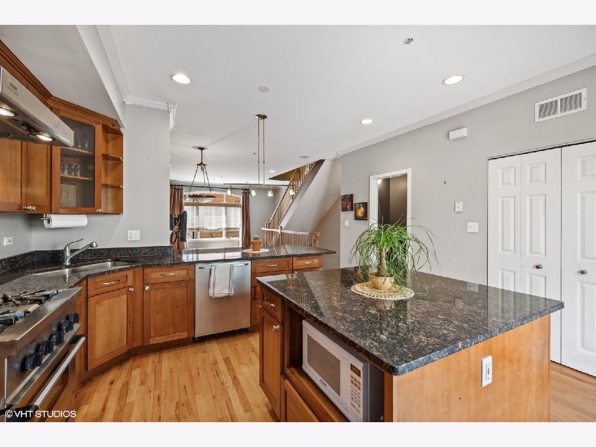 Located in the heart of beautiful downtown Oak Park this fabulous three-bedroom newer-construction townhome boasts high ceilings, pristine wood floors, and plenty of space and spaces to spread out! Enter from your own courtyard into the ground level with mud-area and the bright family room also perfect as an office or extra bedroom if needed. The second level main living space has a large living area dining room combo. The large cook's kitchen features granite countertops, a large island + an eat-at breakfast bar, high-end stainless appliances, and private balcony. Don't miss this level's large laundry closet! The third level has the grand primary suite with en suite bath with soaking tub and separate shower. This level also features another large bedroom and the main hall full bath. The top level is a fantastic bedroom/office/entertaining space with vaulted ceilings, a half bath, and the huge roof-top deck large enough for a hot-tub and outdoor living space. Two-car attached garage. Loads of storage! Step out your front door and in minutes be at some of the area's finest dining, fantastic schools, shops, lush parks, the Green Line, Metra and so much more!