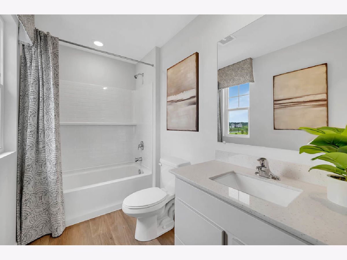 Find yourself at 107 Fieldcrest Ave in Hampshire, Illinois, a beautiful new home in our Prairie Ridge community. This homesite includes a fully sodded yard. This Haven plan offers over 1,500 square feet of living space with 3 bedrooms and 2.5 baths. Enjoy this bright open concept home with our living, dining room, and kitchen allowing you the perfect space for entertaining friends and family. Your kitchen features designer white cabinetry with quartz countertops and pantry. Walking upstairs enjoy your private get away with your large primary bedroom on its own side of the top floor with a deluxe bathroom containing a raised dual quartz vanity and walk in closet. Enjoy the convenience of a top floor walk in laundry room and all secondary bedrooms upstairs with a full second bath and linen closet. Impressive innovate ERV furnace system and tankless water heater round out the amazing features this home has to offer! All Chicago homes include our America's Smart Home Technology, featuring a smart video doorbell, smart Honeywell thermostat, Amazon Echo Pop, smart door lock, Deako smart light switches and more. Photos are of similar home and model home. Actual home built may vary.
