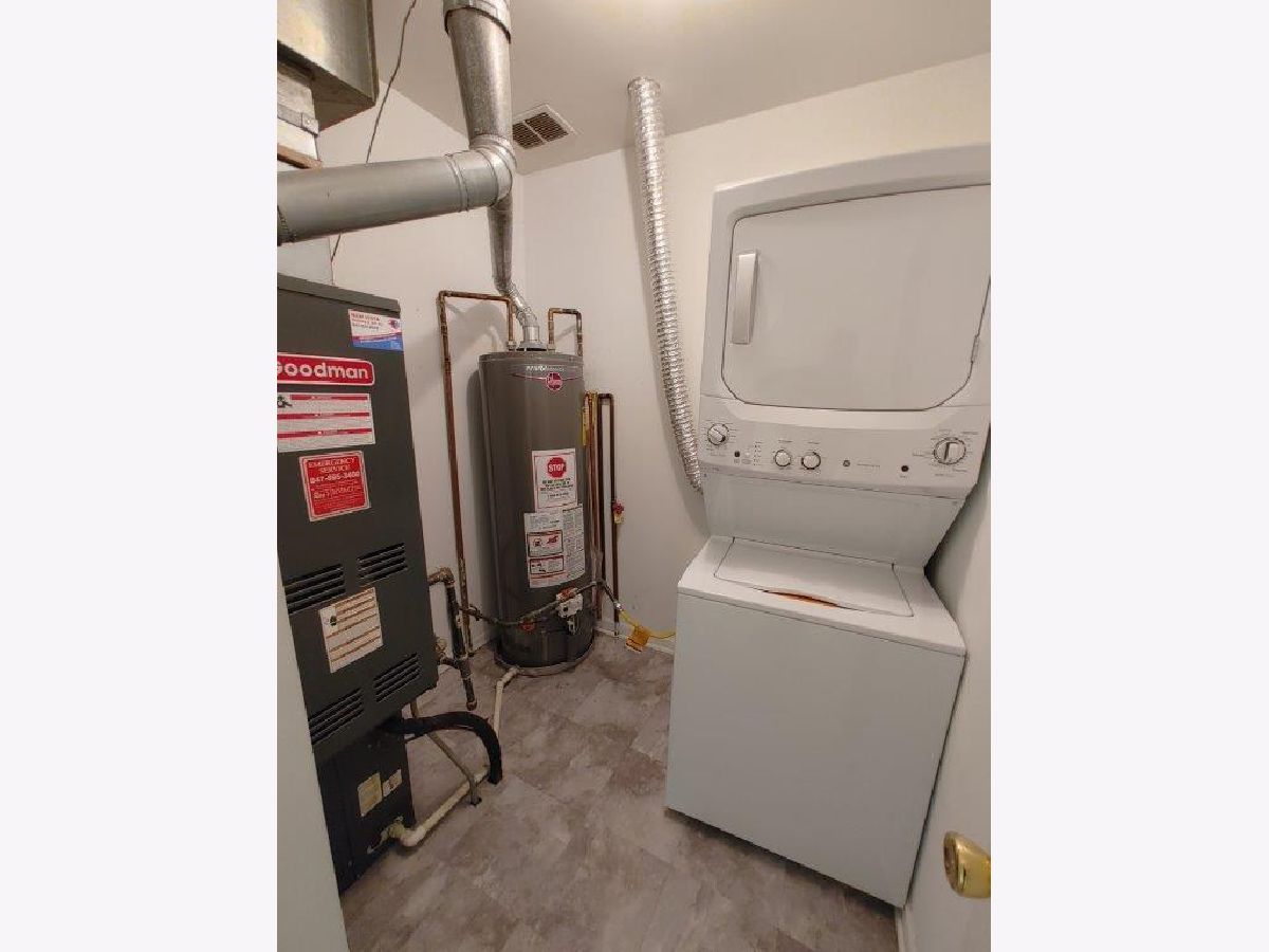 Charming 2-bedroom, 1-bath penthouse quad unit with a private entrance. This end unit features an kitchen with stainless steel appliances and laminate wood floors, as well as a modernized bathroom with newer flooring and vanity. Master bedroom features a spacious walk-in closet, and the unit includes an in-unit washer and dryer. Additional amenities include an attached one-car garage and convenient access to the outdoor pool. Newer Washer dryer. Located near park and bike paths, and within the boundaries of top-rated schools: Michael Collins Elementary, Robert Frost Junior High, and District 211 JB Conant High School. Investor-friendly.