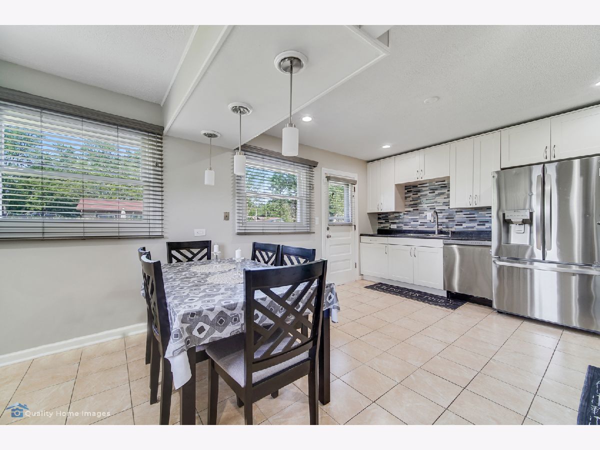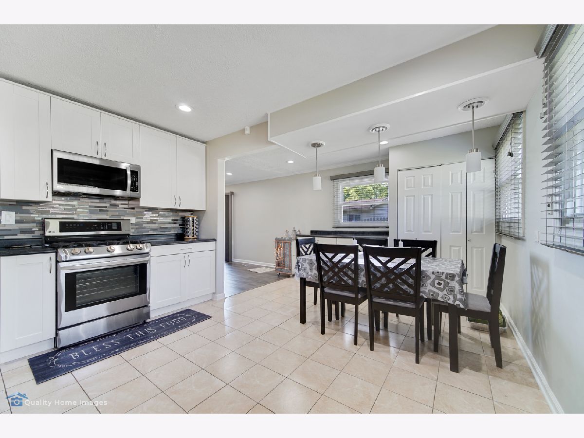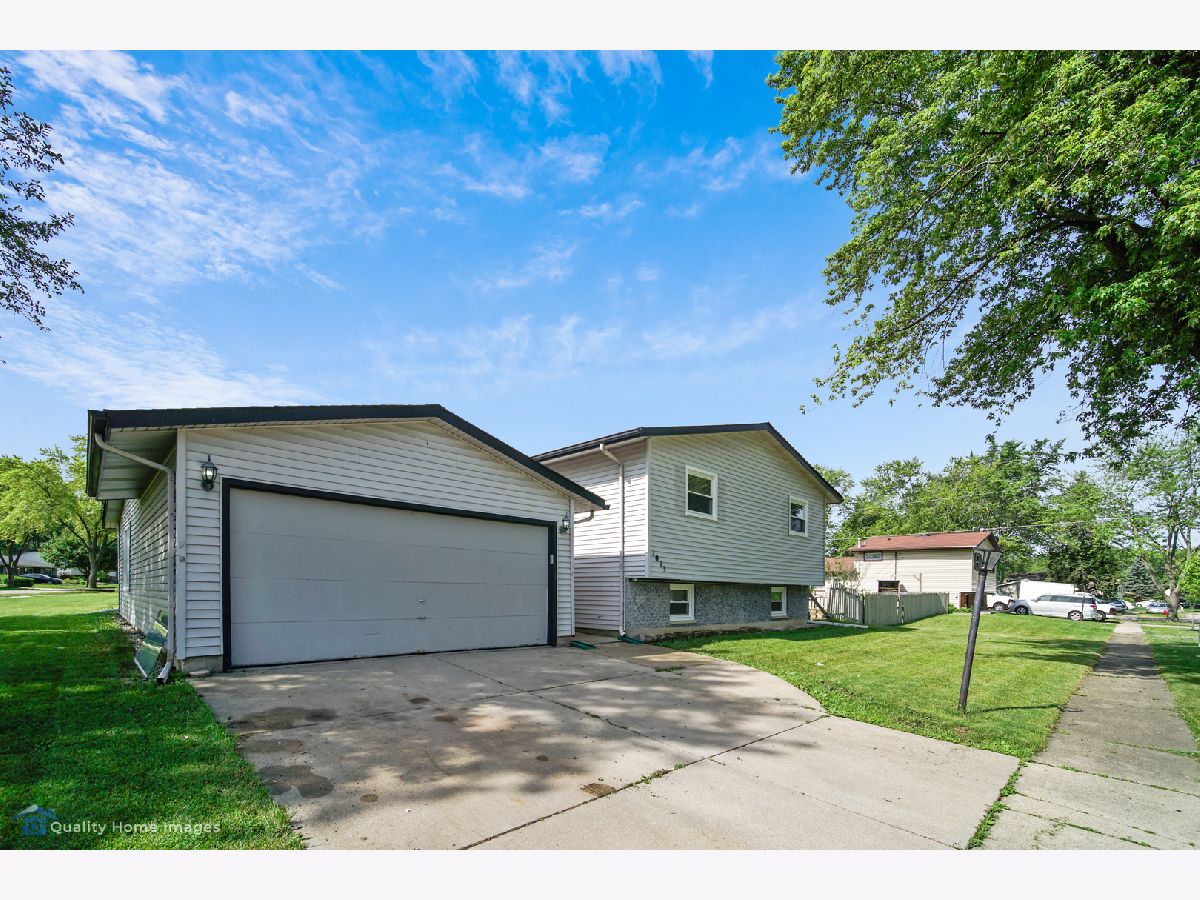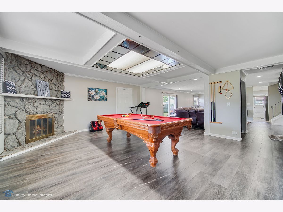 For all of our safety and health: agents and buyers must wear masks in the house! No Exceptions! 3 Bedrooms 2 baths Split level style home on large, corner lot! garage converted to family room and 2 car garage added in front so this home is larger than others in the area. Many extras...wood burning fireplace in family room conveyed"ASIS", upgraded modern kitchen with SS appliances,glass tiles .Vinyl flooring through out the home.Eat-in kitchen, remodeled baths, lower level rec room has ceramic tiles, large fenced yard with patio. basement refrigerator and pool table stays.School dist. 54 & 211.