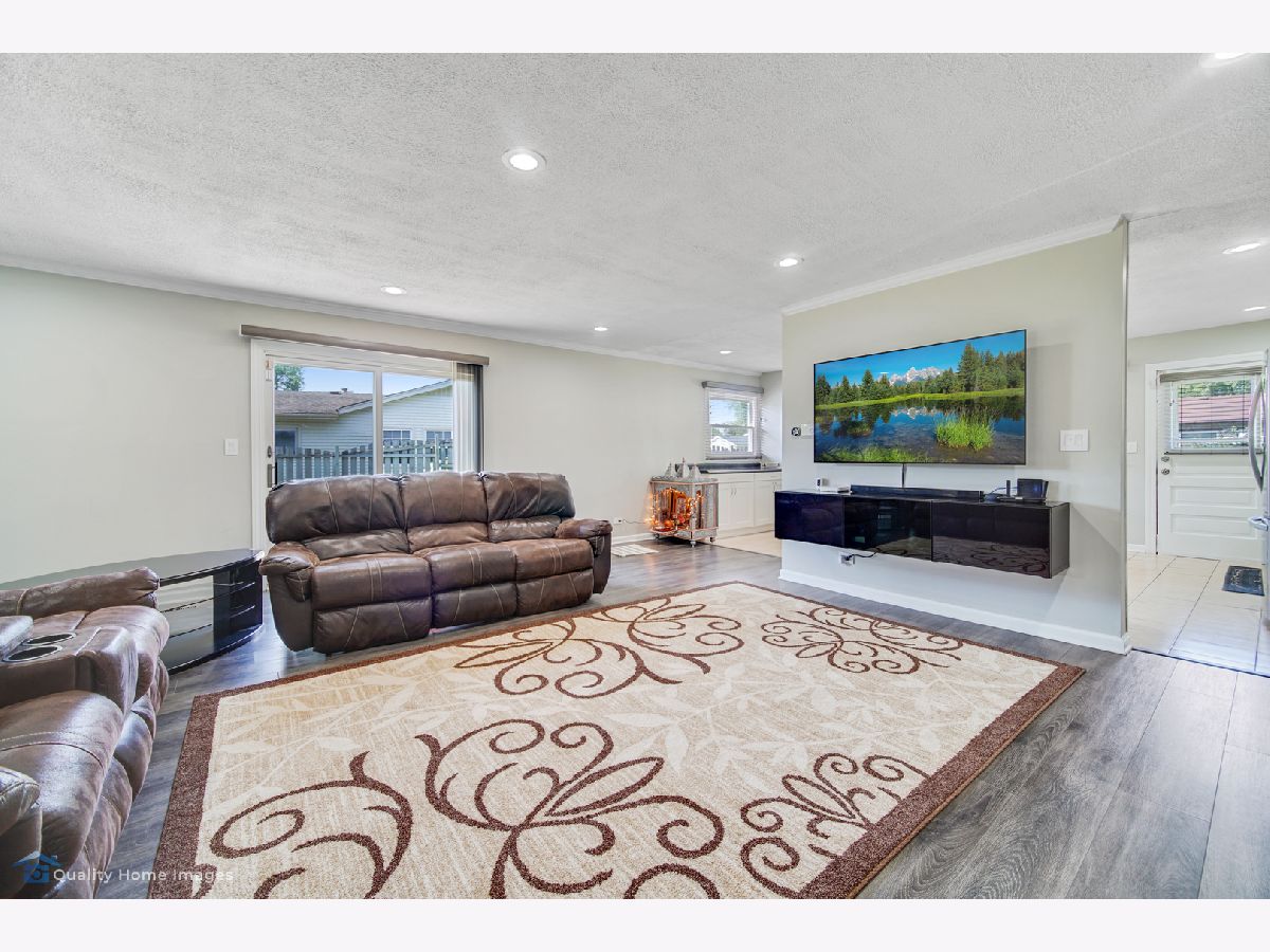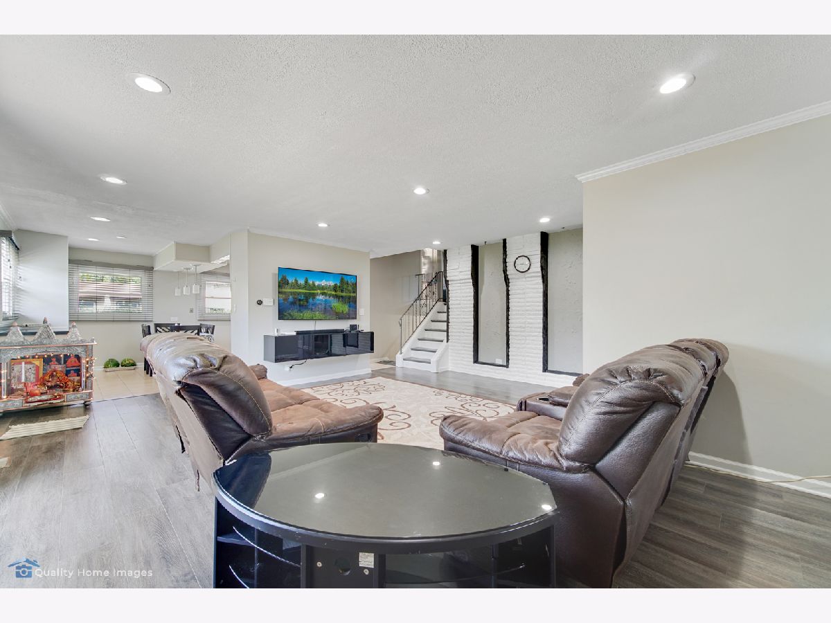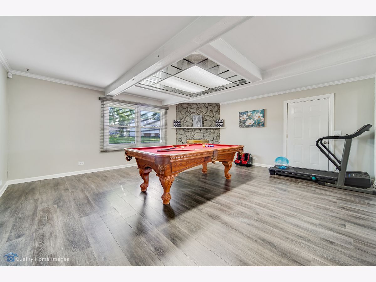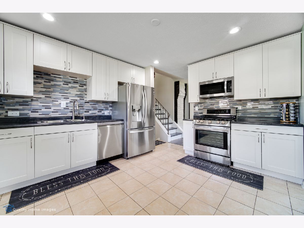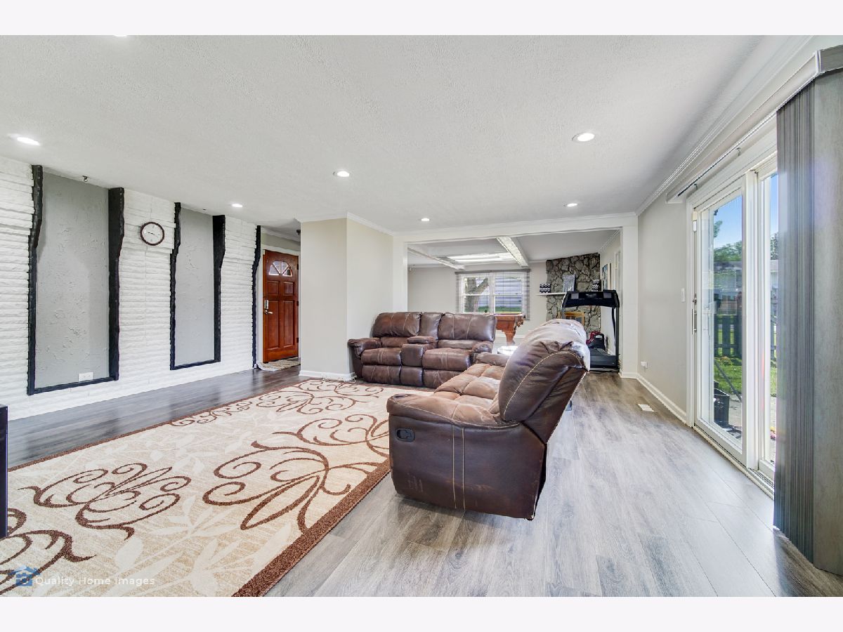 For all of our safety and health: agents and buyers must wear masks in the house! No Exceptions! 3 Bedrooms 2 baths Split level style home on large, corner lot! garage converted to family room and 2 car garage added in front so this home is larger than others in the area. Many extras...wood burning fireplace in family room conveyed"ASIS", upgraded modern kitchen with SS appliances,glass tiles .Vinyl flooring through out the home.Eat-in kitchen, remodeled baths, lower level rec room has ceramic tiles, large fenced yard with patio. basement refrigerator and pool table stays.School dist. 54 & 211.