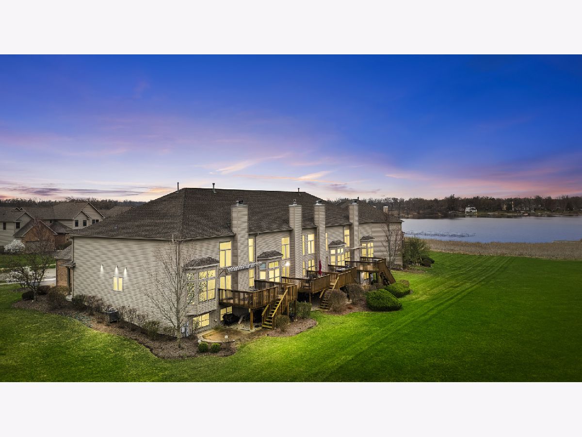 Beautiful Chain'O'Lakes waterview townhome in the lovely neighborhood of Woodland Ridge with picturesque sunset views of Lake Marie and amazing nature and wildlife. This home features an open floor plan with dining and great room having volume ceilings, hardwood floors and floor-to-ceiling fireplace all overlooking the lake. The sliding door leads to the outdoor deck where you can relax and enjoy the water views or entertain guests. The kitchen has white cabinets, tile backsplash, large pantry, breakfast bar and Kinetico reverse osmosis water filtration system. Off the kitchen area is the laundry room with work tub, half bath and office/den. In the first-floor primary bedroom is a tray ceiling, large windows with a view of the lake, along with a luxury bath featuring a Kohler jetted tub, double sinks, glass walk-in shower, walk-in closet and separate room for commode. The second floor has a spacious loft with a view of Lake Marie, 2nd bedroom with sunrise views and walk-in-closet, 3rd bedroom/2nd office, storage closet and a full bathroom with shower/tub. The English basement includes a finished family room, Library/play area, room for 4th bedroom with walk-in-closet and full bathroom with shower and a large storage/workshop. NEW WINDOWS MARVIN 2023, NEW DRIVEWAY 2024, ROOF 2019, AC AND FURNACE 2019, VINYL PLANK FLOORING IN PRIMARY 2024 NEW WATER FILTER 2024, NEW DECK IN SUMMER 2025, NEW PIERS INSTALLED 2024. Too many updates to list! Boat slip available for purchase.