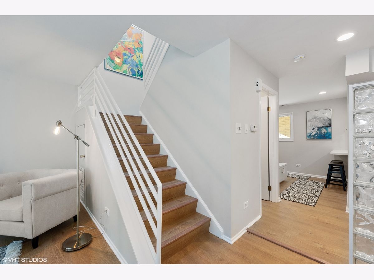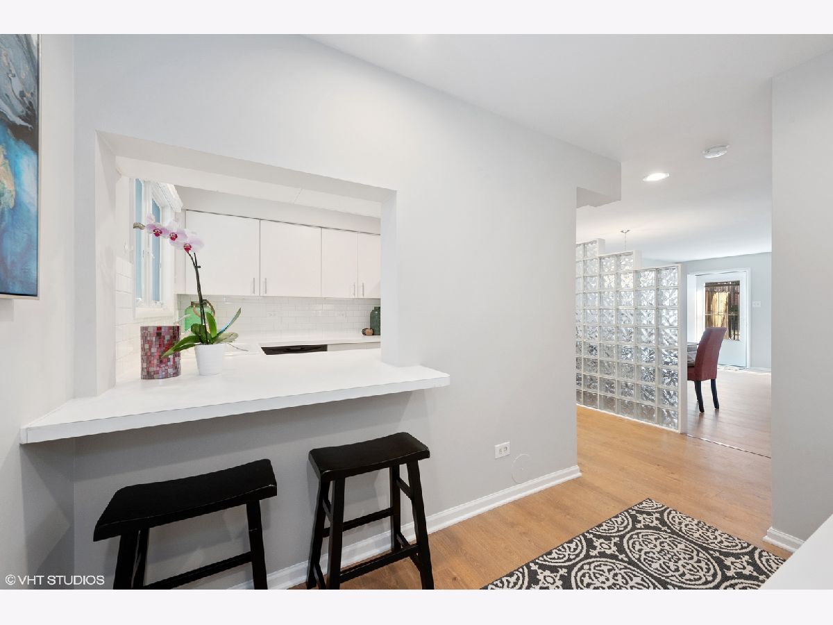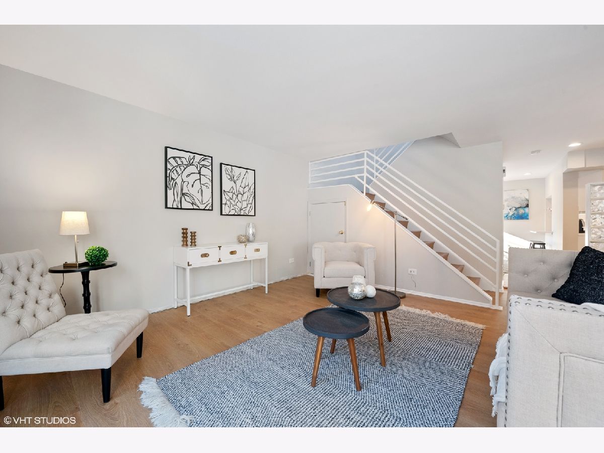 Originally a 4 bedroom townhome this corner 3BR, 2 & 1/2 bath home is filled with light, space and beauty. Enter the home to a hallway complete with built-in bench and counter to the kitchen. The kitchen is complete with white cabinetry, subway tile backsplash, and ss appliances. The kitchen is separated from the living area by a beautiful glass block wall allowing for light and function. The large living and dining area sets the stage for ideal indoor entertaining, and has easy access to the large 230 SF, fenced in terrace, which in turn is an ideal space for outdoor entertaining. A powder room completes the first floor for added convenience. The open staircase with painted metal railings, is illuminated by light spilling in from the skylight above the landing. Added storage was created beneath the stairway and is accessible through a cleverly placed door. The 2nd floor includes 3 bedrooms, 2 baths, useable hallway and laundry. The reworking of the floor plan upstairs, resulted in a huge main bedroom suite, resulting in extra closets, abundance of light and private bath. The bedroom spans the width of the east side of the floor. The other 2 large bedrooms include ample closet space and room for good sized beds. The home exudes a sense of freshness with its newly laid laminate floors, and beautifully painted walls gracing the entire space. A parking spot is included and is steps from the front door. Guest parking available for 3 vehicles. Surrounded by several parks and greenery, hard to believe it's in the city. Within the South Loop School District. Walk to lake, loop, restaurants and nightlife. Easy access to CTA and major expressways. Enjoy this beautiful home in the South Loop.