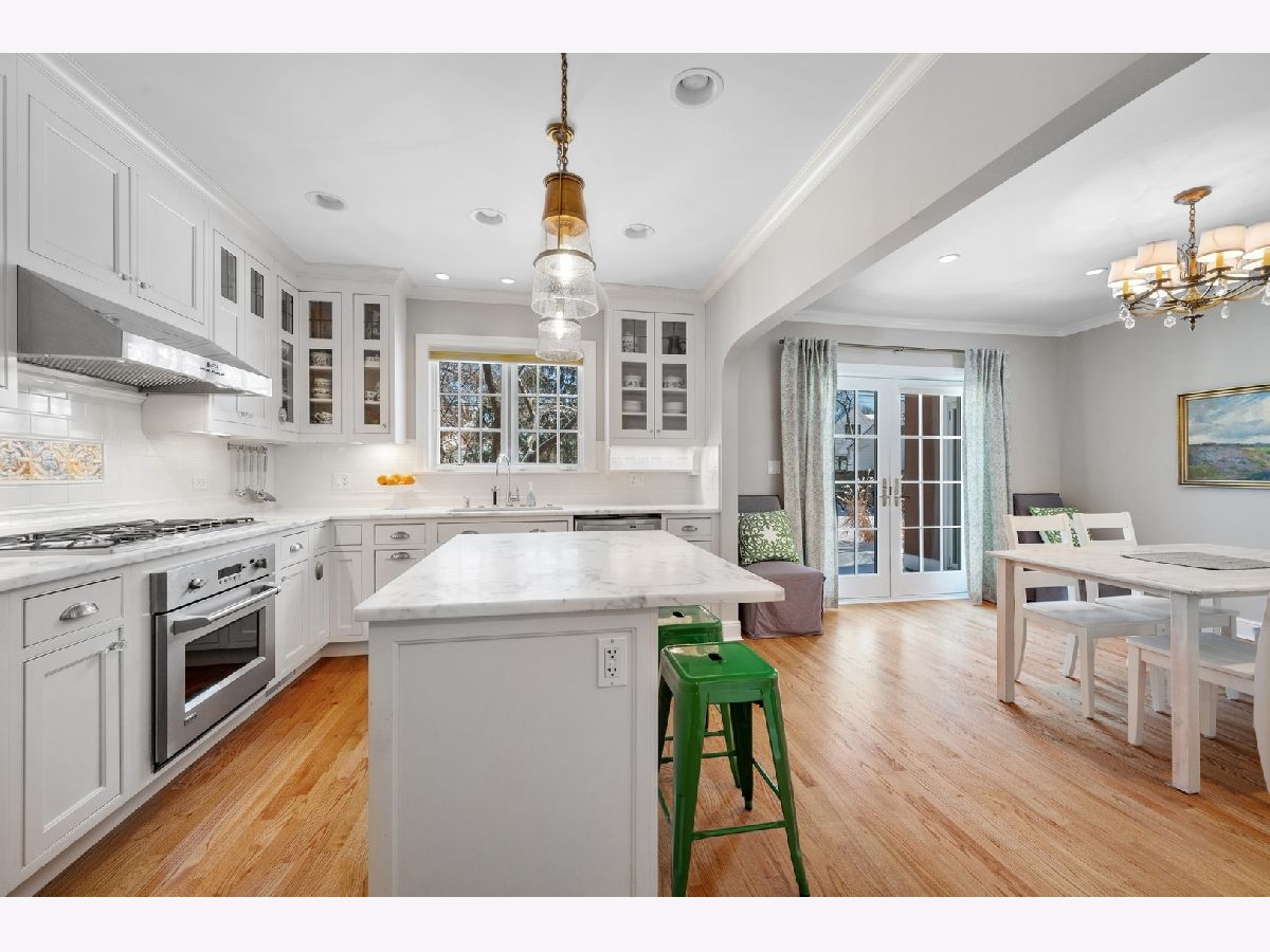 This move in ready, stunning, sun filled home has been expanded, extensively renovated, and meticulously maintained. The gorgeous high-end KITCHEN has an Island with a breakfast bar and pendant lights. Beautiful white Carrara marble counters throughout the kitchen and subway tile backsplash with lovely accent tiles. Kitchen features stainless steel appliances, and top quality, Shaker style, white cabinets with soft glide drawers, slide out cabinet drawers, and display cabinets. Newer casement windows above SS sinks overlooking the backyard. The kitchen fully opens to the gracious DINING ROOM which has crown molding, crystal chandelier, and French doors to the patio. The spacious FAMILY ROOM addition has crown molding, floor to ceiling custom built-in bookshelves on one wall, and built-in cabinets and seating area on the other. The large LIVING ROOM features crown molding, recessed lights, bay window, and a wood burning fireplace with mantel. Throughout the home are hardwood floors and many newer windows. The FIRST FLOOR has arched doorways and charming tiled powder room. The SECOND FLOOR has 4 large bedrooms, all of which have MinkaAire ceiling fans, tons of updated closet space, and a laundry off the hallway with a Duet washer and dryer. The PRIMARY BEDROOM has a SW exposure, large walk-in closet with extensive Elfa system, recessed lighting, and a private bath with marble tiled floors and walls. The SECOND BEDROOM has its own bath with Ann Sacks marble tiled floors and walls, French doors to a deck, and recessed lighting. The waterproofed BASEMENT has a large rec room for family activities and a 2nd laundry area. OUTSIDE the home are a brick paver patio, brick paver front walk, newly landscaped front yard, and beautifully landscaped, private backyard for gardening and fun family activities. This exceptional home is ideally LOCATED on a quiet tree-lined street within easy walking distance to the train, town and McKenzie school; is near at least 6 parks; and is on an active, super friendly, block.