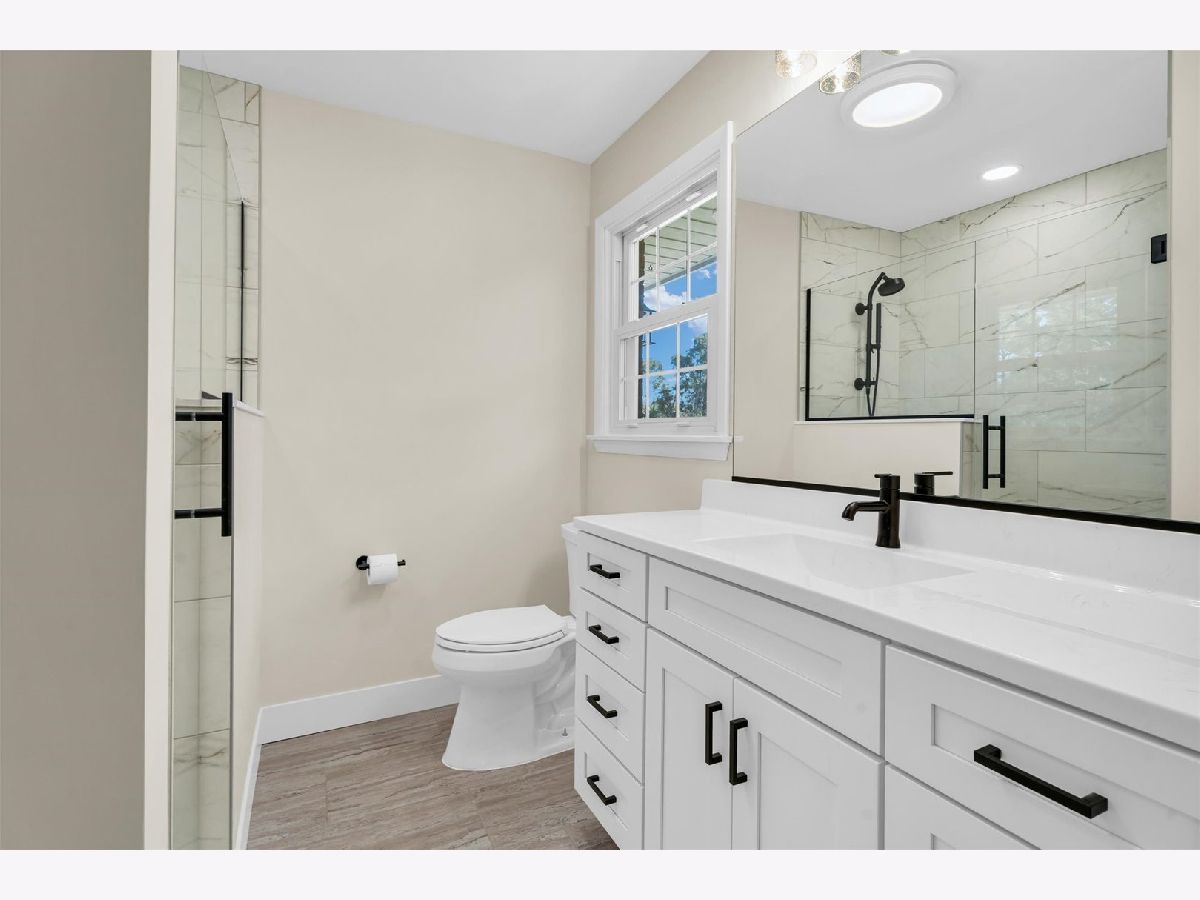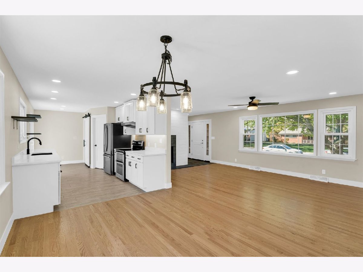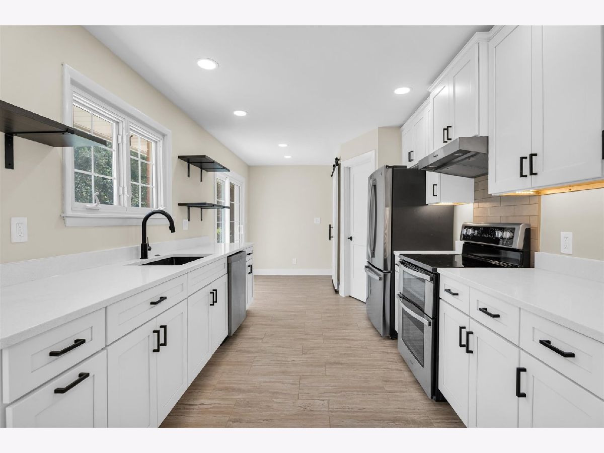 Welcome to this beautifully remodeled 3-bedroom, 2-bathroom 2-car garage home, perfectly situated on a large, oversized corner lot with nearly 1,600 sq. ft. of thoughtfully designed living space. Step into the kitchen, featuring brand-new stainless-steel appliances, soft-close cabinets with under-cabinet lighting, granite countertops, open shelving, and a walk-in pantry complete with counter space, shelving, and outlets-ideal for all your cooking appliance storage needs. The dining area flows into the inviting living room, where a gas log fireplace with a shiplap surround serves as the focal point. Hardwood flooring runs throughout the living spaces and bedrooms, enhancing the warmth and charm of the home. Each of the three bedrooms are generously sized while the guest bathroom has been updated with a new vanity, fixtures, and a modern tub surround. The primary suite features a large closet with built-in shelving and a stylish barn door leading to the ensuite bathroom, which has been upgraded with a tiled step-in shower, new vanity, fixtures, and an additional linen closet for convenience. The basement provides extra living space, complete with a cozy fireplace and a dedicated laundry room. Outside, enjoy the expansive patio that overlooks the large backyard and the Border Magic landscape edging around the front and sides of the house. Recent updates include new gutters installed this month, a new furnace from January of this year, fresh shutters, and upgraded window wells. With easy access to the interstate, local restaurants, luxurious Urbana Country Club and downtown Urbana, this is one you won't want to miss! You get the benefit of nearly new construction and a gorgeous, spacious landscaped lot in a spectacular established neighborhood.