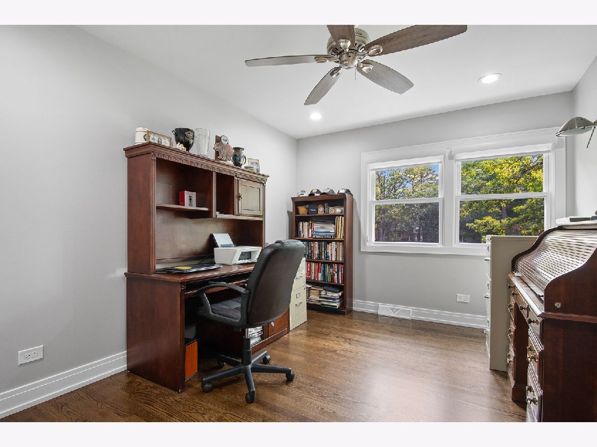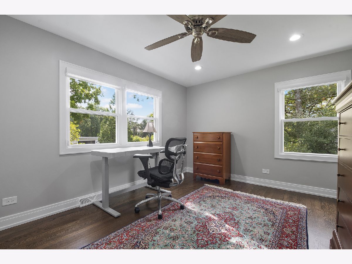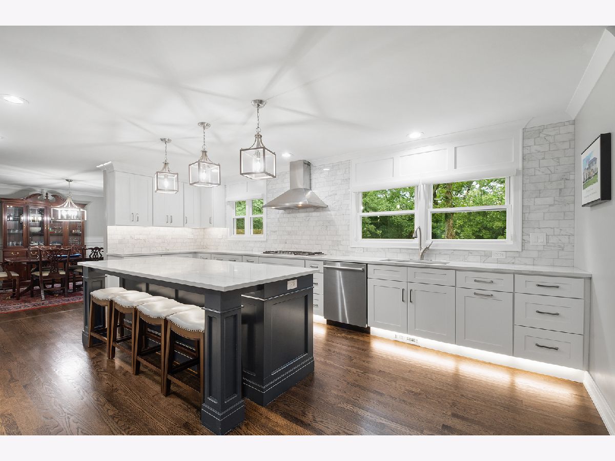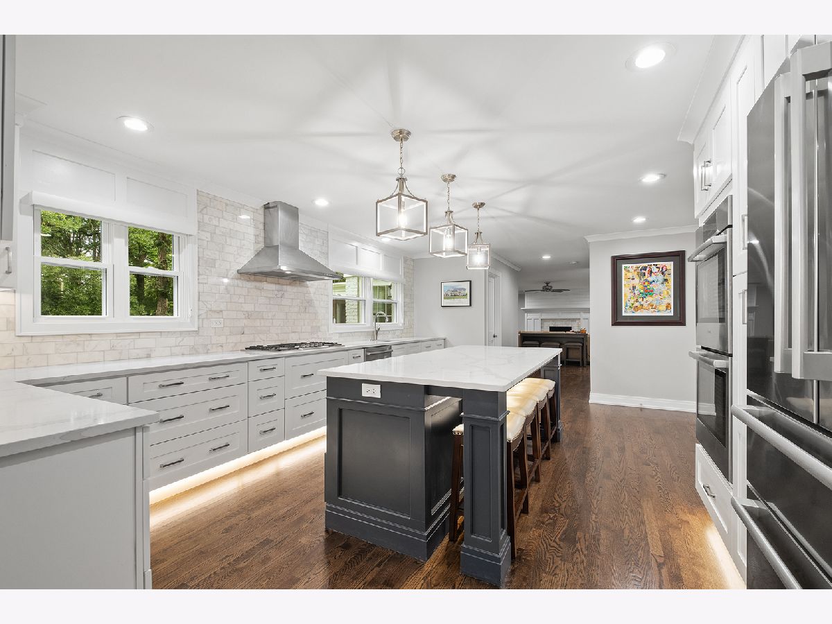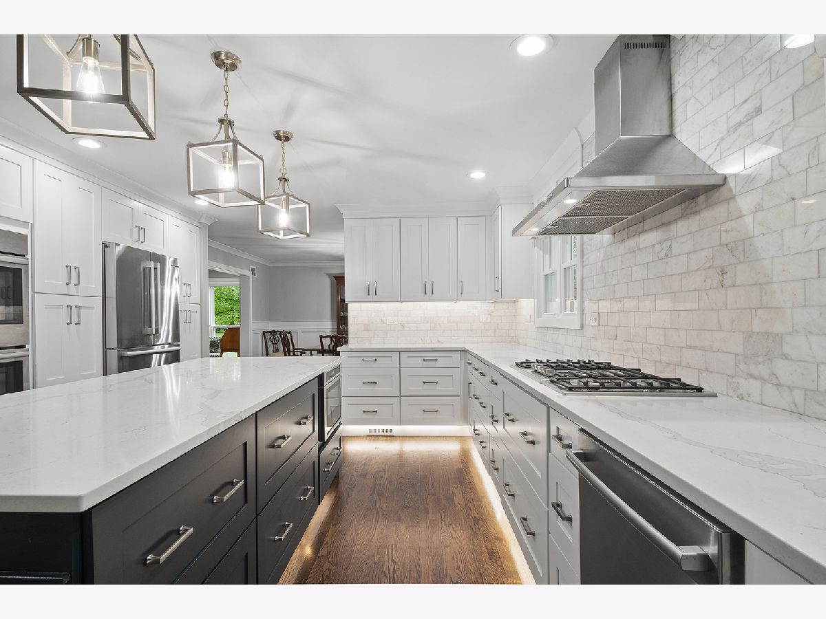 Beautifully renovated Whispering Oaks 5-bedroom colonial with rare 3-car attached garage! Exceptional, like-new construction with luxurious finishes. Enter to find quality oak hardwood flooring on the 1st and 2nd levels. There is a stunning new kitchen, 3.1 renovated bathrooms, and a newly finished basement (with full bath). The gracious foyer, living room, dining room, and kitchen have an open circular flow, ideal for entertaining. The new chef's kitchen comes to life with an abundance of handcrafted cabinetry, quartz countertops, professional-grade Bosch appliances, and an oversized island with seating. The spacious family room has a wood-burning fireplace with rich millwork, and opens to a three-season screened porch. Upstairs there are 5 bedrooms, each with hardwood flooring and generous closets. The expansive primary suite has a walk-in closet with custom closet system, and spa-like en suite bathroom with double vanity and walk-in shower. The laundry room is conveniently located on the main level. Enter the light and bright basement with finished rec room, full bath and generous storage. Additional renovations include replacement of windows, doors, roof, new LP siding, sewer line, plumbing fixtures, electrical (including recessed fixtures w/Lutron lighting switches), and new security system. This east location is convenient to downtown Lake Forest, multiple Metra stations, Lake Michigan, bike trails and expressways. Cherokee Elementary School is only a few blocks away! Whispering Oaks is known for its majestic oaks, half-acre parcels and tree-lined streets. It is a fabulous place to live. Welcome home!