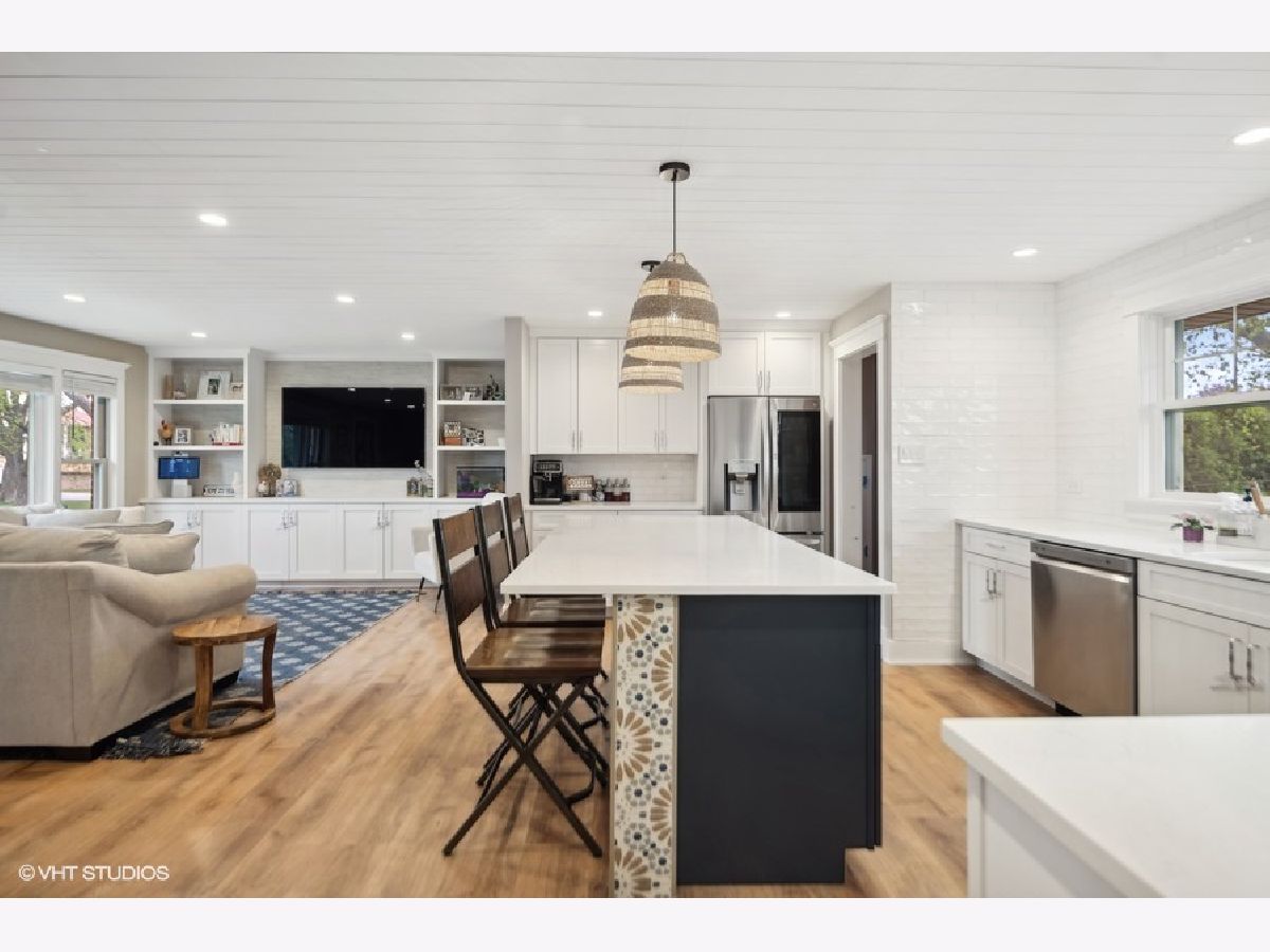 Amazing curb appeal, wide lot, beautiful brick exterior, sweet cedar porch, and lovely alder wood front door welcome you into this Special Home. Step inside to see fabulous flooring through the main level and open-concept living. The large living room has dreamy custom built-ins to display your family heirlooms in style. The high-end kitchen has an expansive island, (seats 5 plus), outstanding quartz counters, gleaming backsplash, stainless appliances, and an unbelievable hand-crafted range hood with Alder trim. Did I mention the convenient pot filler? There is a pantry too! All trim on the main level is custom-crafted. The first-floor bath has been redone with beautiful tile and customized shelving for addl'. storage. Please notice the wood treatment ceiling and walls. Great light and site lines to the front of the home and the lovely backyard. The finished basement has a 2nd bath, the sweetest playroom, and a great family space with room for all. Great location and block, walk to the park and train. This home is monitored. See the list of upgrades under the addl'. features tab.