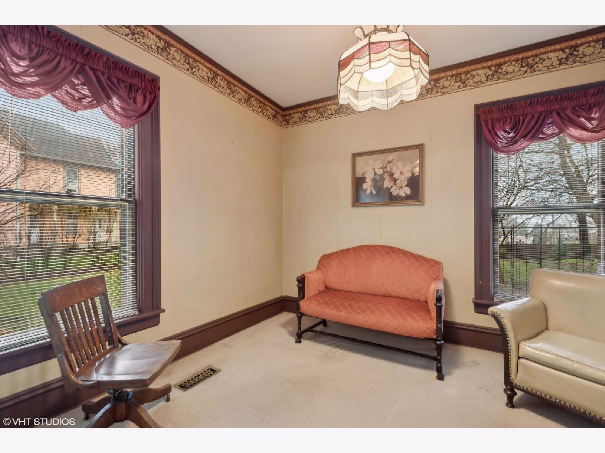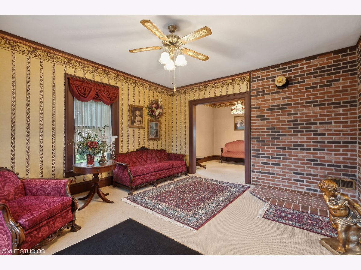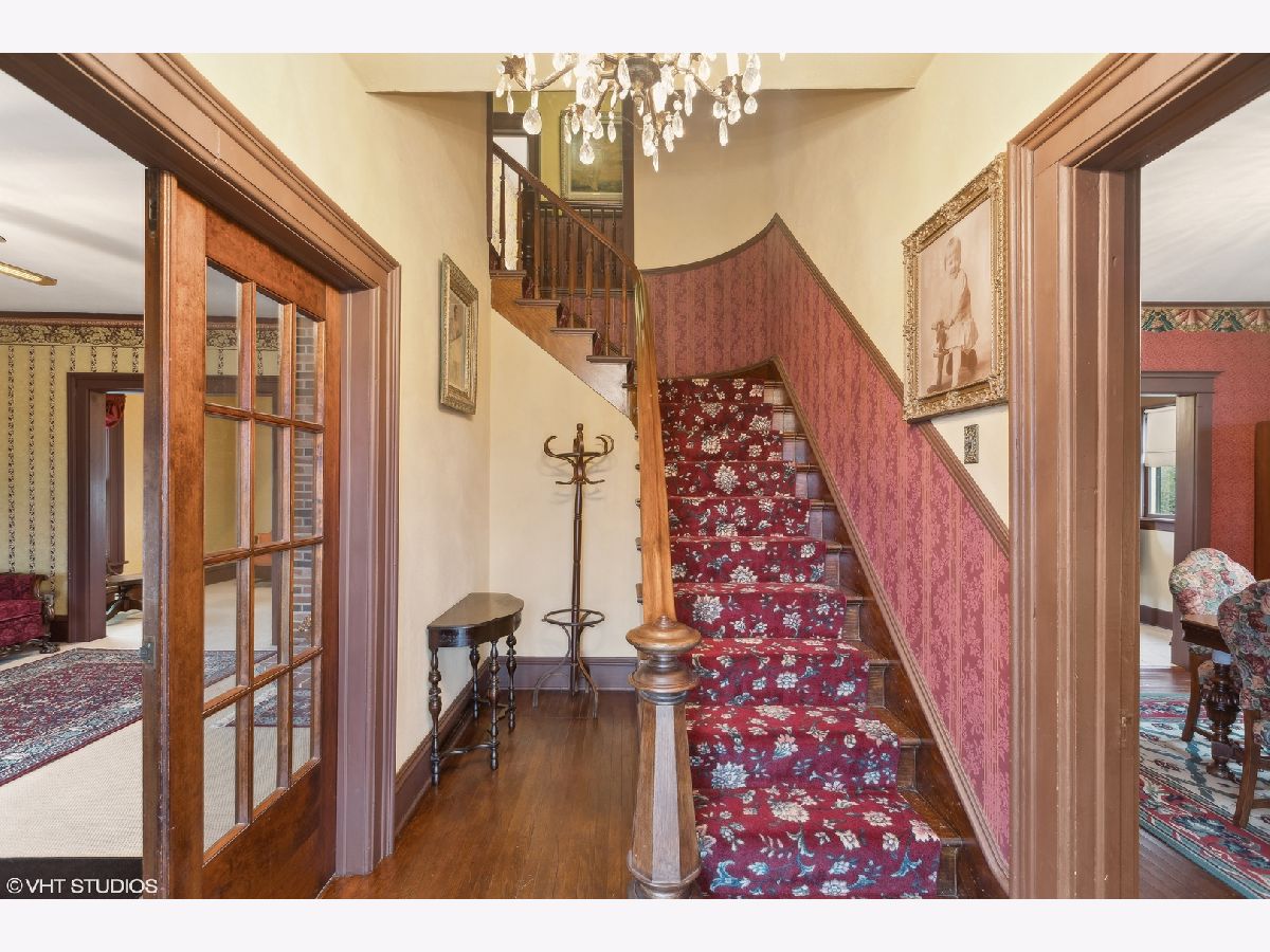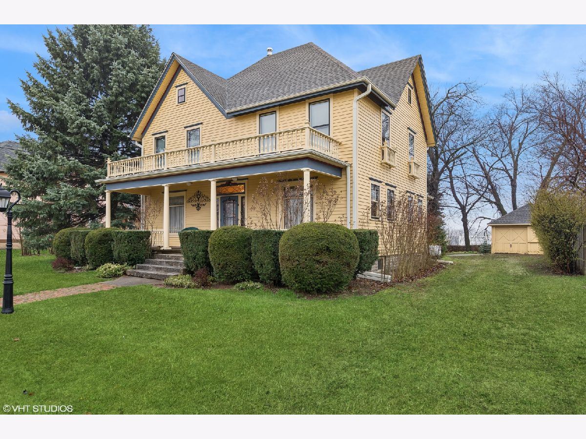 Looking for that amazing home that offers all of the charm of yesteryear? Norman Rockwell would definitely approve of this classic historic home in the heart of Huntley. Located on the only original brick paver street remaining in town. This beauty qualifies for historic landmark status, if you wish. Notice the antique gas light from the 1900's as you make your way up the brick paver walkway to the 33ft front porch, which is the perfect place to enjoy a morning cup of coffee or tea. As you enter, you are greeted by the original, oversized walnut banister and curved staircase leading into the living room through French doors. Also connected to the living room is a parlor that could be a private den or sitting room with a powder room. Leaded glass windows enhance the charm in the living room, dining room and foyer. The dining room is elegant, yet, large enough for all the family gatherings. Heading into the updated kitchen, you will find an original, gorgeous built in butler pantry on one whole wall with glass doors and cherry cabinets. Upstairs are four generously sized bedrooms with walk in closets and a remodeled full bathroom. The master bedroom has a built in mahogany bookcase from the Wrigley mansion in Lake Geneva! You will also find a door leading to a walk up attic that is fully floored the full length of the home! This home also features 9.5ft ceilings on the first floor, original oak thin plank hardwood floors throughout the first and second floors, with the original wood crown molding, baseboards doors and trim. Upgrades done to the home: central air, Lenox 90% efficiency gas forced air, 50 gallon water heater, new roof on the house and garage (2021), exterior fully stripped and painted (2021), new storm windows (2021), new oversized gutters and down spouts (2021). All plumbing in home replaced with copper. All copper plumbing to the main as well. The owners have maintained this home to perfection with love and care.