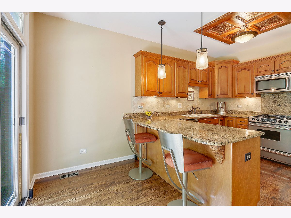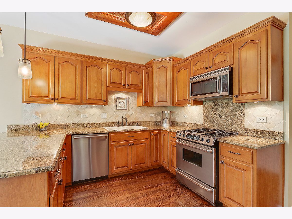 STUNNING END UNIT RANCH boasting numerous upgrades and CUSTOM builder finishes throughout. Nestled on a premium lot that offers a picturesque, private setting overlooking lush, verdant grounds with mature trees for privacy. Welcoming residence that exudes an aura of understated sophistication. Comfortable formal living room with beautiful double sided see through orient fireplace. Spacious dining room or eating area with floor to ceiling stone fireplace with elongated mantel. Lovely kitchen with furniture quality cabinetry, granite counter tops, stainless steel appliances, porcelain sink and gorgeous decorative coffered ceiling appointed with tin tiles. Lovely master suite with gleaming hardwood flooring, soaring ceilings and spacious walk in closet. Beautiful master suite with MARBLE floors and marble shower/tub with custom vanity and wall lighting sconces. Spacious second bedroom on the main level with ample closet space and custom crown molding. Spectacular FULL FINISHED basement with wrought iron staircase, custom stair lighting and tiled risers. Massive family room area or recreation area with beautiful appointed built ins. Unbelievable full bar with slate tile, designer ceiling accented with wainscoting, custom pendant lighting, under cabinet bar lighting and wall scones. Spacious potential third bedroom or office space with adjacent full bathroom with marble floors, whirlpool tub and elegant vanity. AMAZING one of a kind wine cellar that holds over 600+bottles. Professional, hard-wired landscape lighting leads to entrance of property. Highly sought after location and RANCH design, award winning schools, close to expressways, park, walking/bike path, shopping, dining and more. Call for your private showing today.