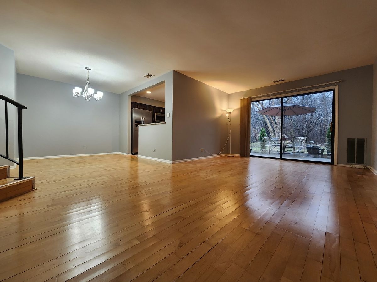 Wow!!! The Beautiful Lake of the Winds subdivision! End Unit! Sunny & Bright. South facing overlooking the Forest. First floor Spacious 3bedrooms 2 bath 1 attached garage. Eat in Kitchen, Breakfast bar, Granite Kitchen counter, Elegant Wood Kitchen cabinet, Back splash. Stainless Steel appliances, Newer furnace. Engineered hardwood flooring thru out. Recessed light fixtures. Enjoy relaxing on your sunny outdoor patio & taking in the serenity of Forest. Entertaining will be a delight in the open concept living area that offers sliding doors to the patio & beautiful view. Kitchen completely remodeled few years ago. Newer Paintings. Walk-in closet. In unit laundry room including LG Washer, New LG Dryer. Attached garage with additional storage space, and 3 outdoor parking spaces behind. 3mins walk to the lake. In-ground pool, club house, Forest Trail to the Lake. Near to the Milwaukee ave, hwy, gourmet restaurants and shopping. Showing starts on this Sat 11am. Hurry This Gem is the right one you are looking for!