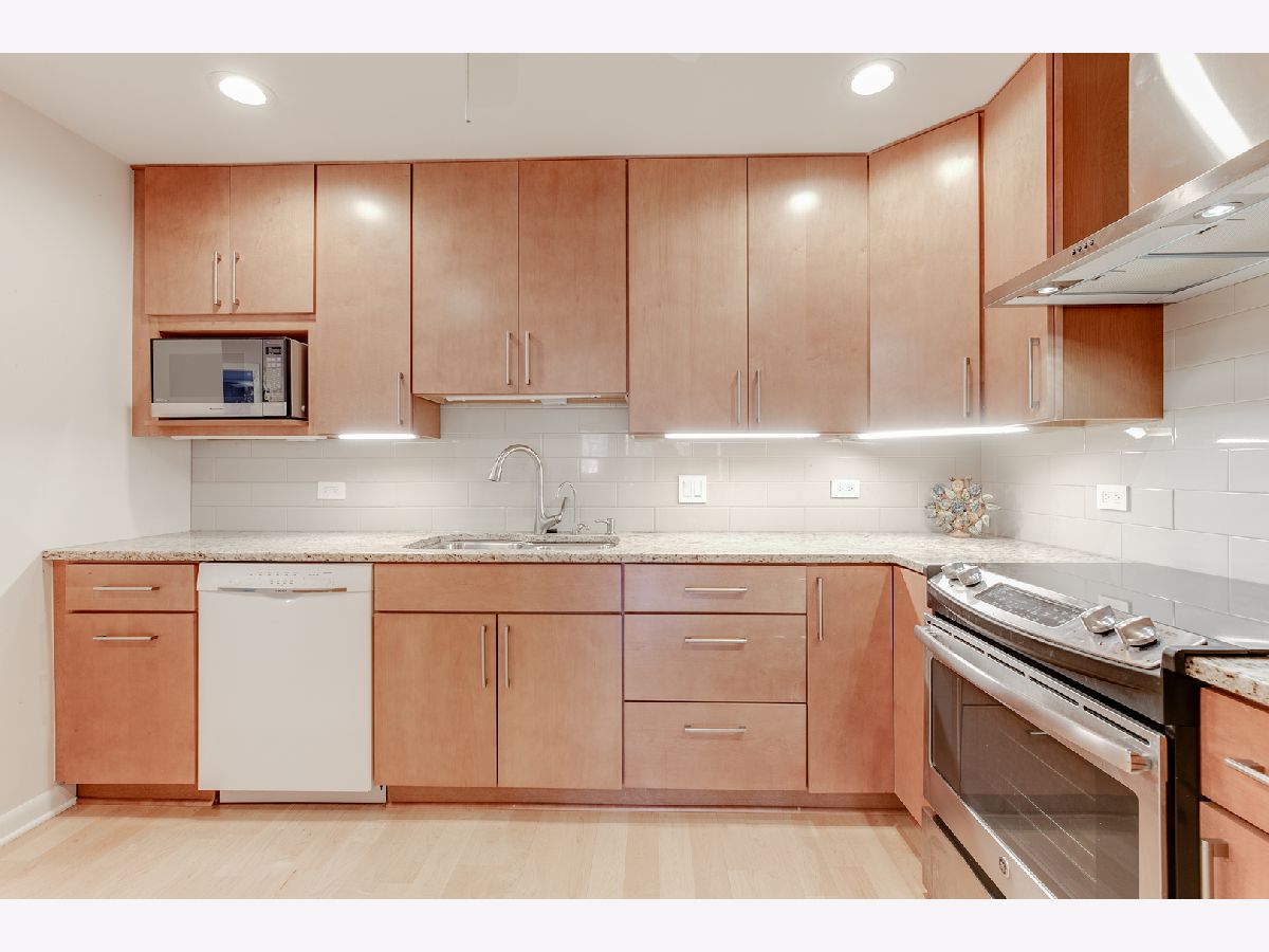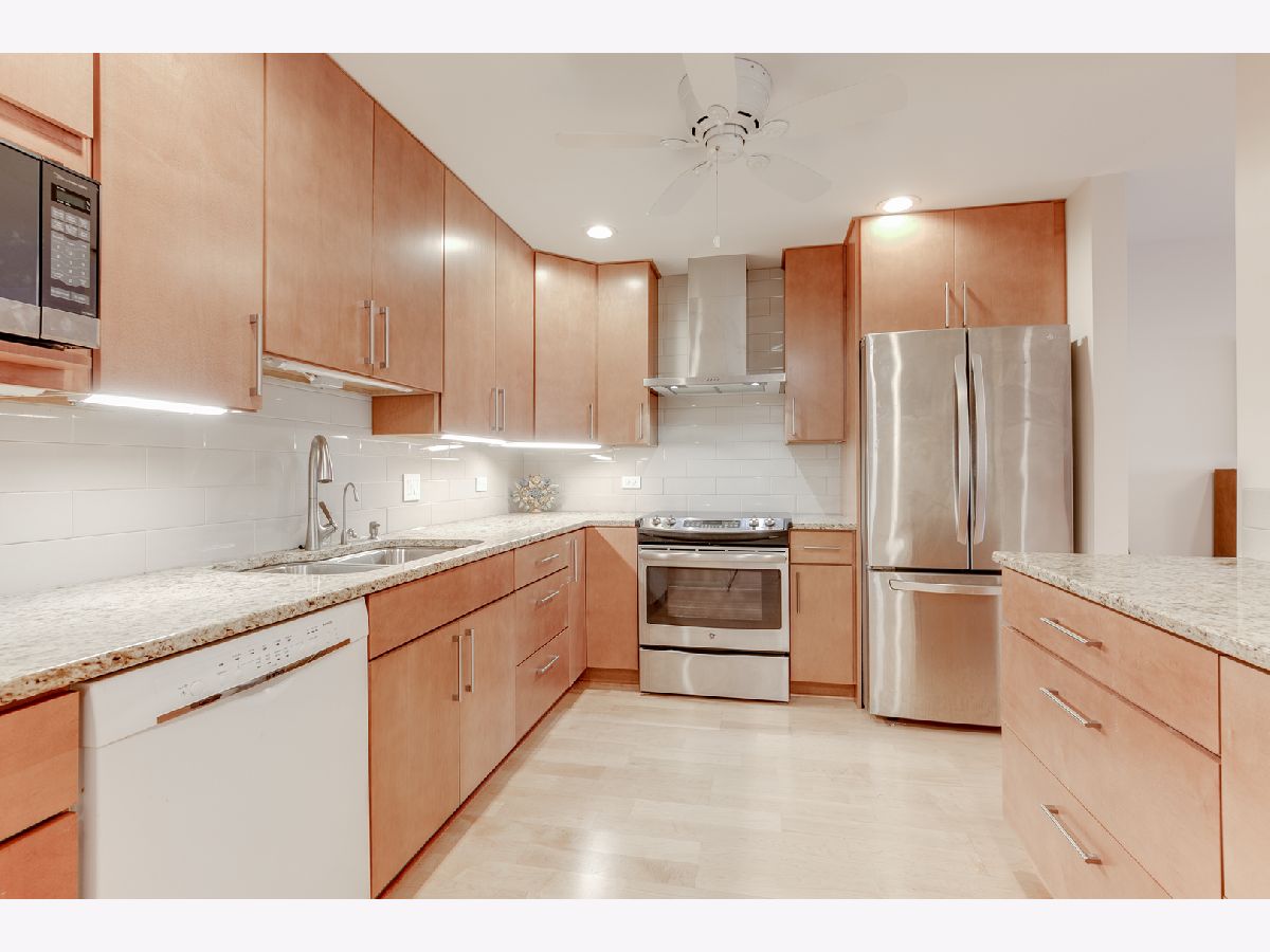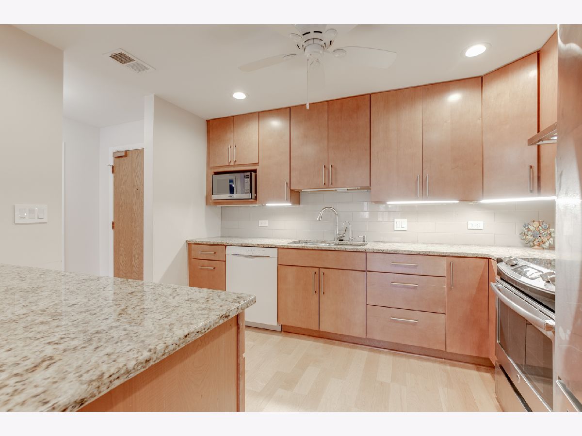 REDONE to perfection first floor unit in prime location. Well maintained building with underground garage (#107), storage, outdoor pool and laundry room in unit. Beautiful maple floors throughout. Recessed lighting. Wide hallways and doors. Formal entry with large coat closet. Modern kitchen with 42' cabinets, granite countertops, newer appliances, under cabinets lighting opens to stunning living room with gas fireplace. Both bedrooms with sliders to balcony. Master bedroom with huge walk-in closet with custom closet organizer and private bath with shower for easy accessibility. Laundry room with full size washer and dryer and extra cabinets. Extra storage room by the parking spot and on the balcony. Monthly assessments include water, sewer, trash, exterior maintenance, outdoor pool. One of a kind. Rare find!