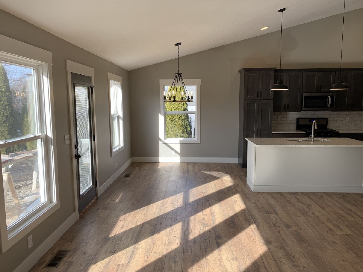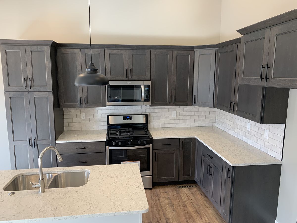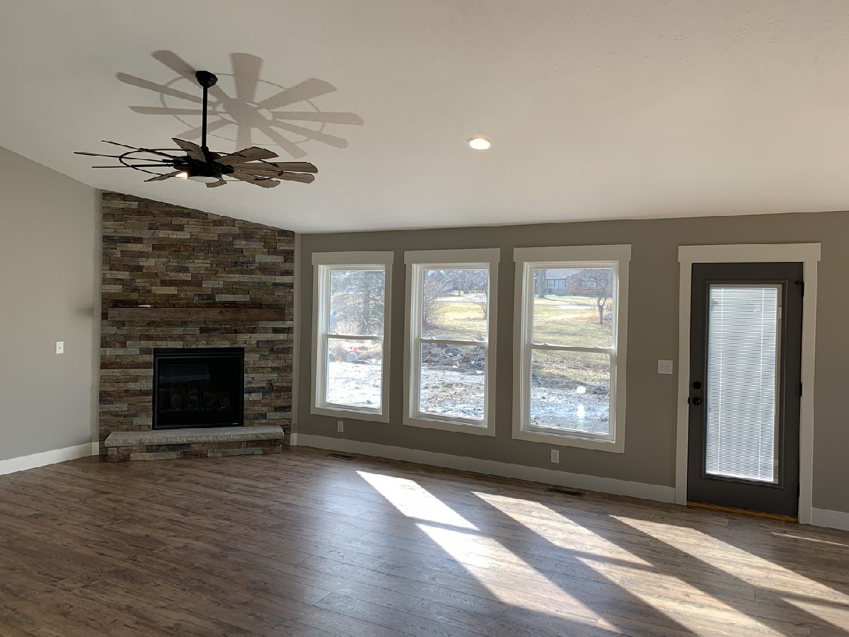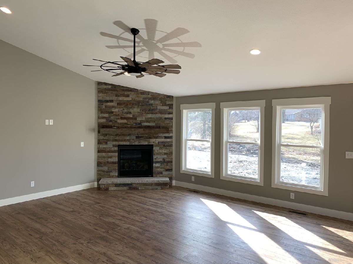 Quality Built Funk Construction - Modern farmhouse style home with hardwood flooring throughout. You will love the flow of this ranch plan that features a beautiful open kitchen with vaulted great room area and split Bedrooms to give plenty of space and privacy for the master suite, which includes: walk in closet with barn door, double bowl vanity, and beautiful tiled shower. Kitchen has upgraded features you will want: soft close cabinets, quartz counter tops, tiled backsplash, SS appliances, large dinning area as well as an island. A stone wall fireplace with concrete hearth is the focal point of the great room. Pella windows, spray foam insulated box sills, and a high efficient HVAC will help save on utilities! Full basement with Egress window and rough-in for full bath allows for room to grow. Brand new EPG School opening in Gridley fall of 2022.