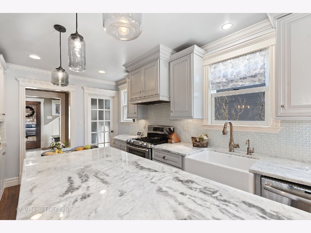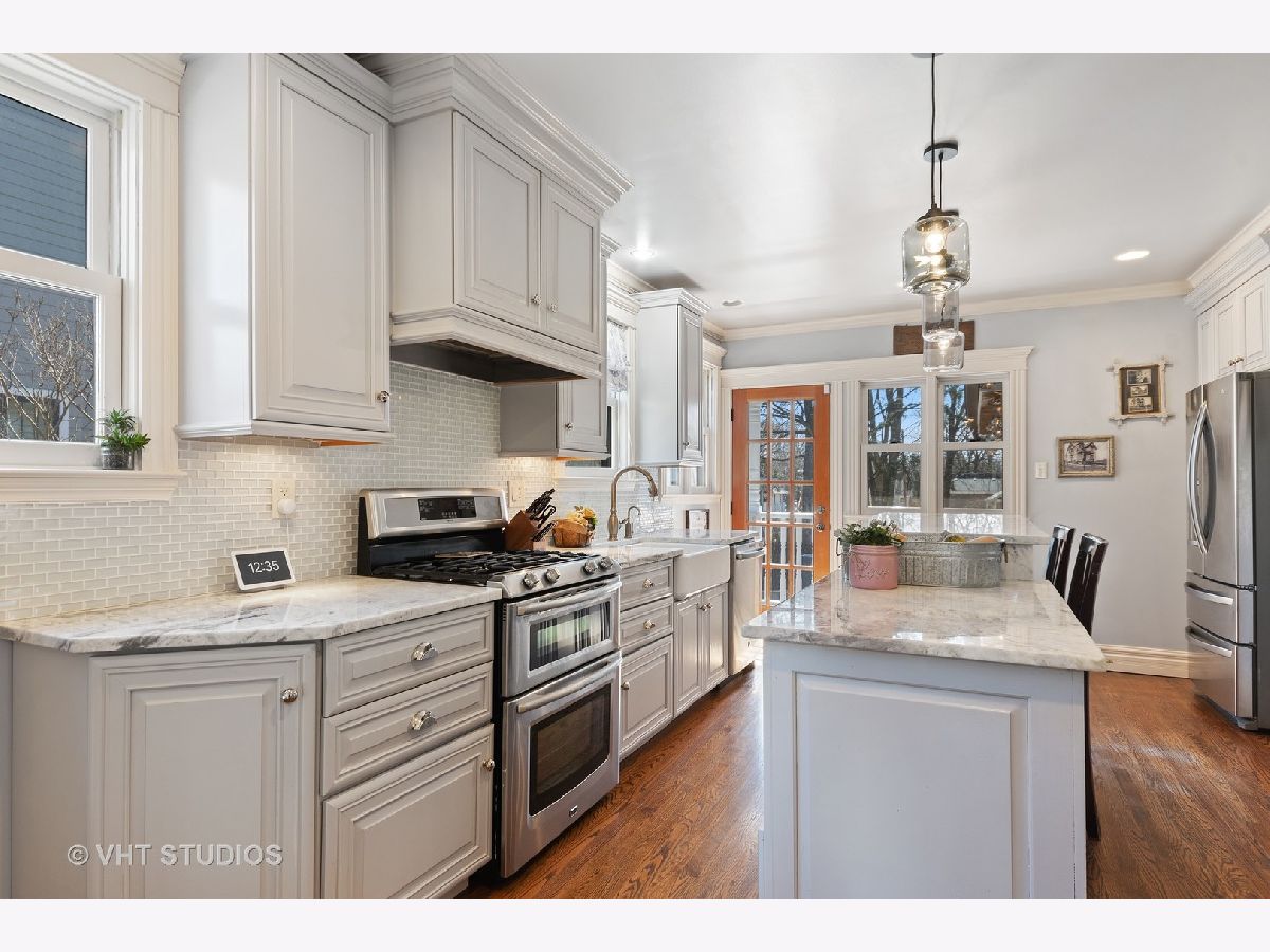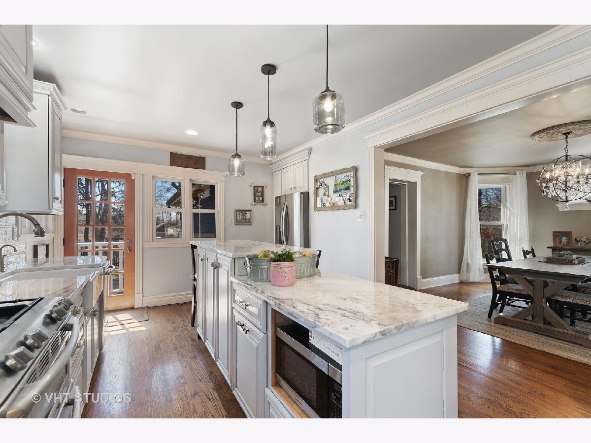 Vintage Beauty within easy walking distance of the Fox River, downtown St. Charles and 1.5 miles to downtown Geneva. Superior quality in this stunning renovation done in 1st class finishes. The spectacular remodeled kitchen has had the Alder cabinets refinished, stainless appliances (new dishwasher), granite counters, subway tile back splash, plus a farmhouse sink was also added. New light fixtures are evident in every room. Great natural light throughout the house & access to the expanded back yard patio & fenced in yard. This easy to enjoy home has a great floor plan that is perfect for entertaining and has several outdoor porches and patios besides the covered front porch. Enjoy a 1st floor Family room with fireplace or as it is currently being used as a master bedroom with a private full bath. 3 good sized bedrooms are on the 2nd floor as is a luxury full bathroom, plus sizable closet space in all the bedrooms. The interior was professionally painted as was the intricate millwork trim detail. The extraordinary trim includes crown molding, wainscot trim & wide casings. Roomy basement with great storage, natural light, & play space. The finished attic game room over the 3+ car heated garage is such a bonus! 8 min walk to Davis Primary School district #303, Richmond Elementary, Thompson Middle School, and St. Charles East High School. A wonderful location for shopping and activities along the Fox River!