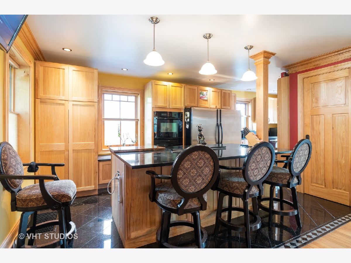 Meticulously updated home in downtown area. Home features a dramatic gourmet kitchen including solid hickory cabinetry and trim, upgraded S/S appliances, granite counters and flooring, with plenty of space for dining and entertaining. Upgraded baths include full baths on both floors. Second floor bath can be converted to steam shower. Home underwent a complete overhaul of its plumbing and electrical system, added newer zoned heating and air conditioning system (5 years) new hot water heater, (3 years), replacement flat roof (1 year), new custom windows throughout home, custom solid doors and hardware, large skylights, replacement gutters and oversized downspouts. Schonbek crystal chandelier and scones, built-in surround-sound system with equipment and TVs are included. Home is equipped with elaborate outside lighting - all with dimming capability. Detached 1.5 car garage, dog run, large private yard and more. You don't want to miss this perfect home.