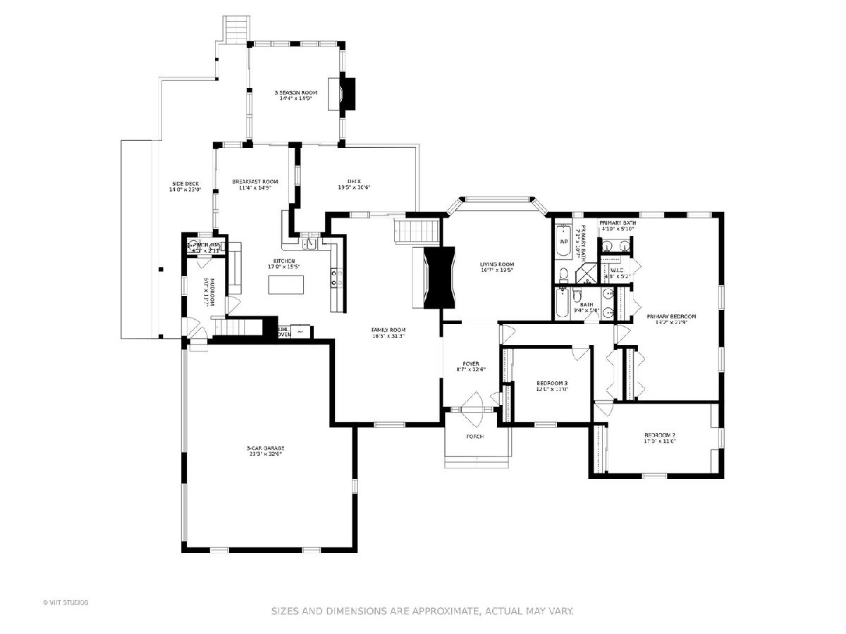 Happiness abounds in this gorgeous hillside ranch in Inverness on over 2 acres. Step into the foyer and notice the gleaming wood floors throughout the main living area. Look straight ahead and catch the stunning views out of the large bay window in the formal living room or sit around the fireplace with guests. The enormous kitchen was designed for both cooking and entertaining. Use the breakfast bar as a buffet area or just a great place to hang out. The dining area is perfect for large seated dinners. The home's family room is open and large with two seating areas: one cozy spot in front of the fireplace and another perfect for TV or playing games. Three large size bedrooms make up the far wing of the main floor. The owner's suite is oversized with three large closets and a private bathroom that includes a separate shower and jacuzzi tub. A mud room and half bath are perfectly located at the rear entrance from the 3 car garage. The three season room has a third fireplace and windows on all sides each bringing the lush landscaped yard inside. The full walkout basement is a bonus for any family and has a front and back entrance from upstairs. The fourth bedroom is in this level with full windows to the back yard. An attached remodeled bath makes this a private retreat for your guests. The small kitchenette is convenient for family and friends while entertaining. The space is large and flexible with a room for a rec room, pool table, eating area, work-out room or home office. And do not forget the large storage room. This home is grand yet warm and cozy. Make an appointment because it has to be seen to appreciate it.