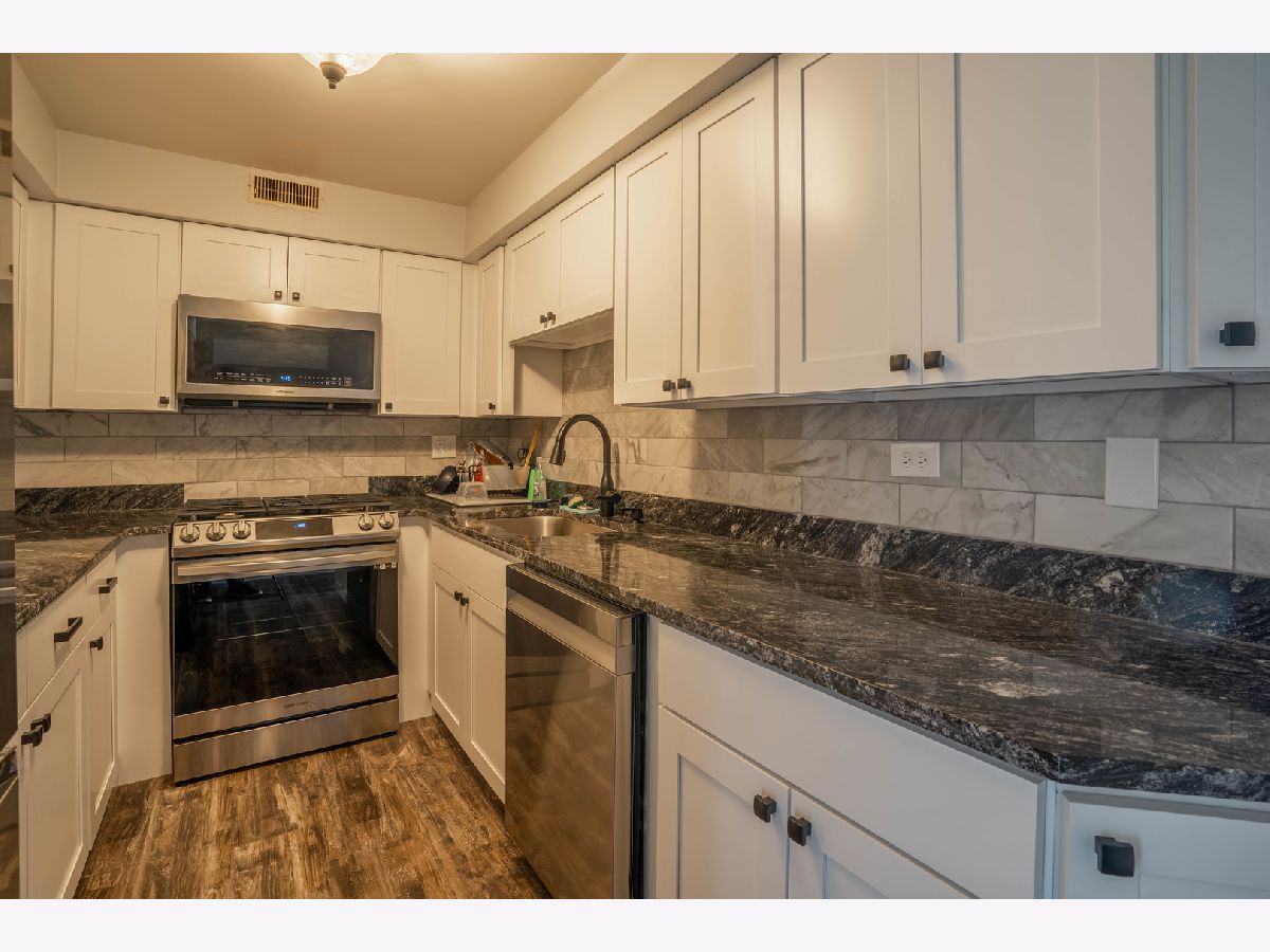Be in the middle of it all! Right across from Richards High School and just blocks away from all the shops, restaurants and parks. A great location for a 1st-floor unit on Central Ave, in Chicago Ridge. Brand new kitchen updated in 2022 with, ss appliances, granite countertops, updated backsplash, new white extra storage cabinets, and new wood laminate floors throughout the kitchen, hall, and living room. Along with the kitchen, other updates include freshly painted kitchen and living areas, along with a new furnace installed in 2021. As well as, a laundry closet with a newer washer/dryer right across from the bathroom. This 2 bed 1 bath condo also comes with a heated 2 car garage attached to the building, a storage locker giving ample storage space, and a lovely balcony right out front. Each unit is allowed 2 parking spots and all spots are assigned, having a 2-car garage attached counts as the allowed 2 spots. All exterior spots belong to other owners. No rentals allowed. **Garage Door does not open, it is being fixed and will be replaced before closing**.
